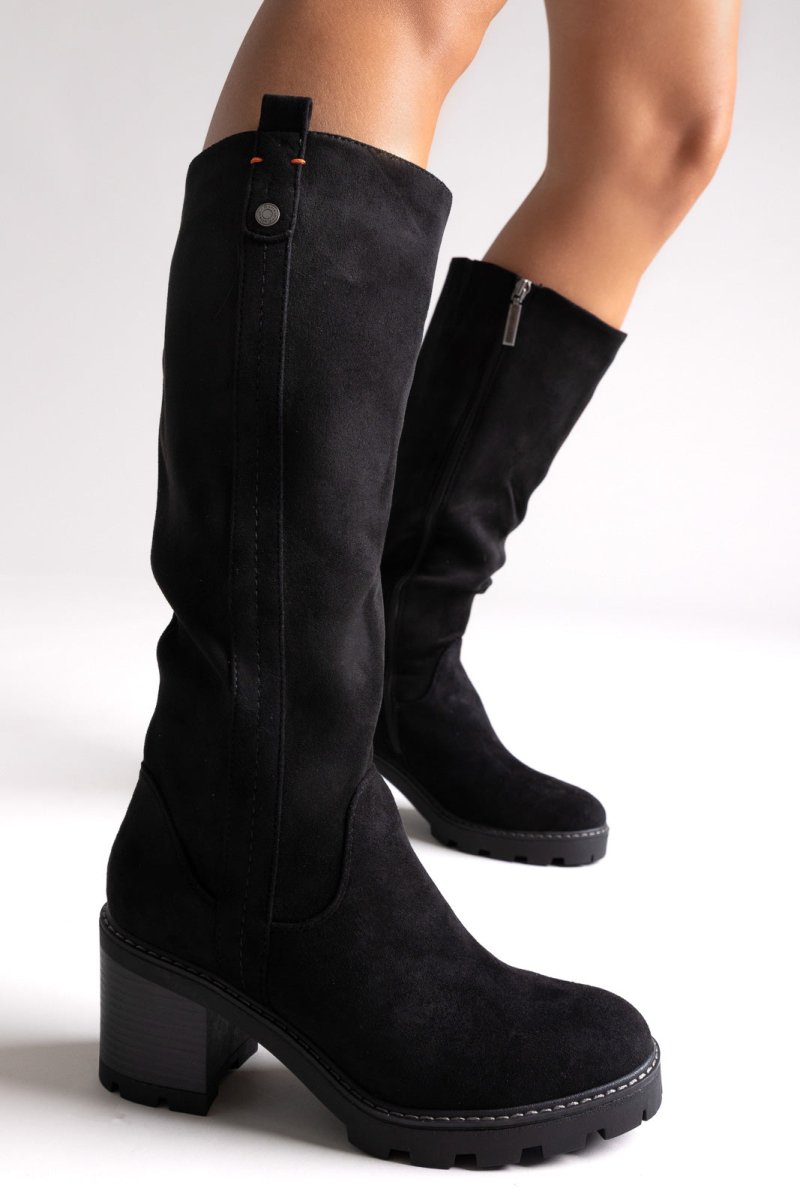 Vegan suede boots with block heel and side zipper. Featuring memory foam insole and comfort biotech. Certified PETA vegan