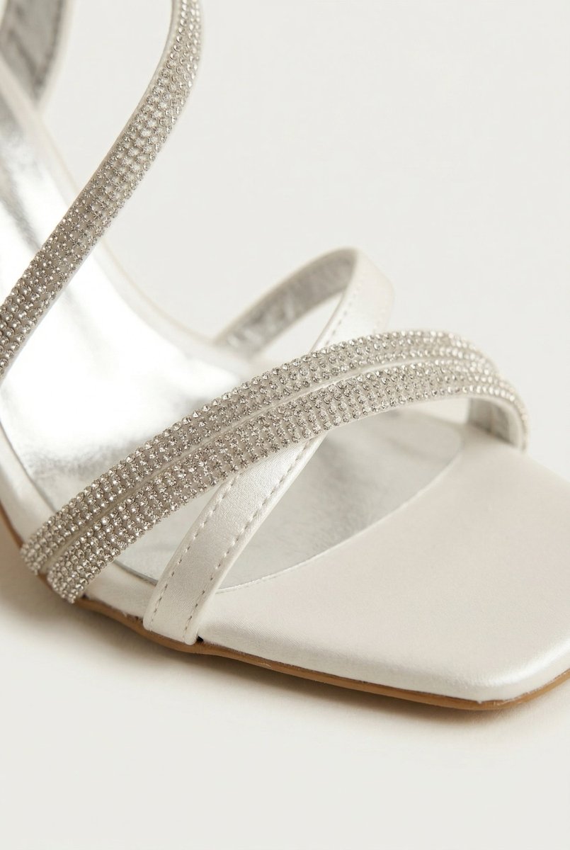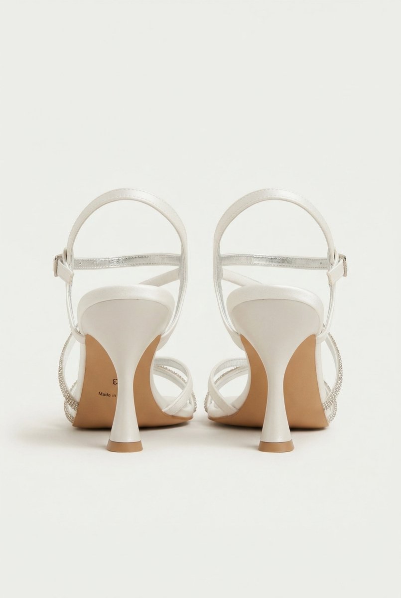 Rhinestone Strap Heeled Sandals - White Pearl