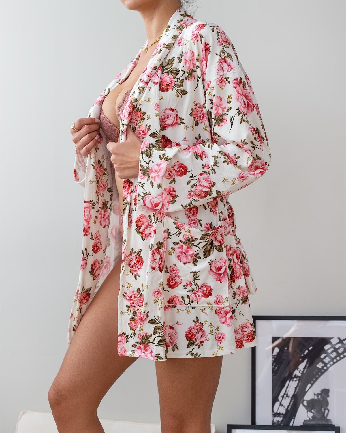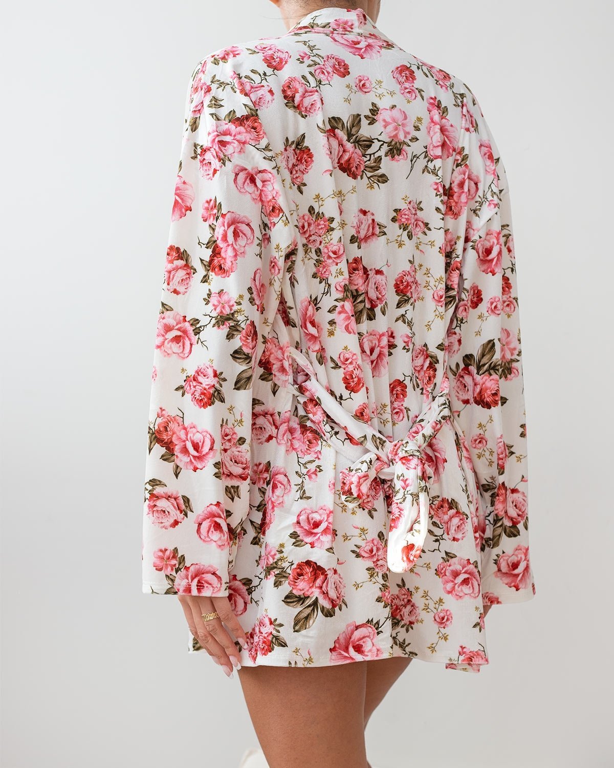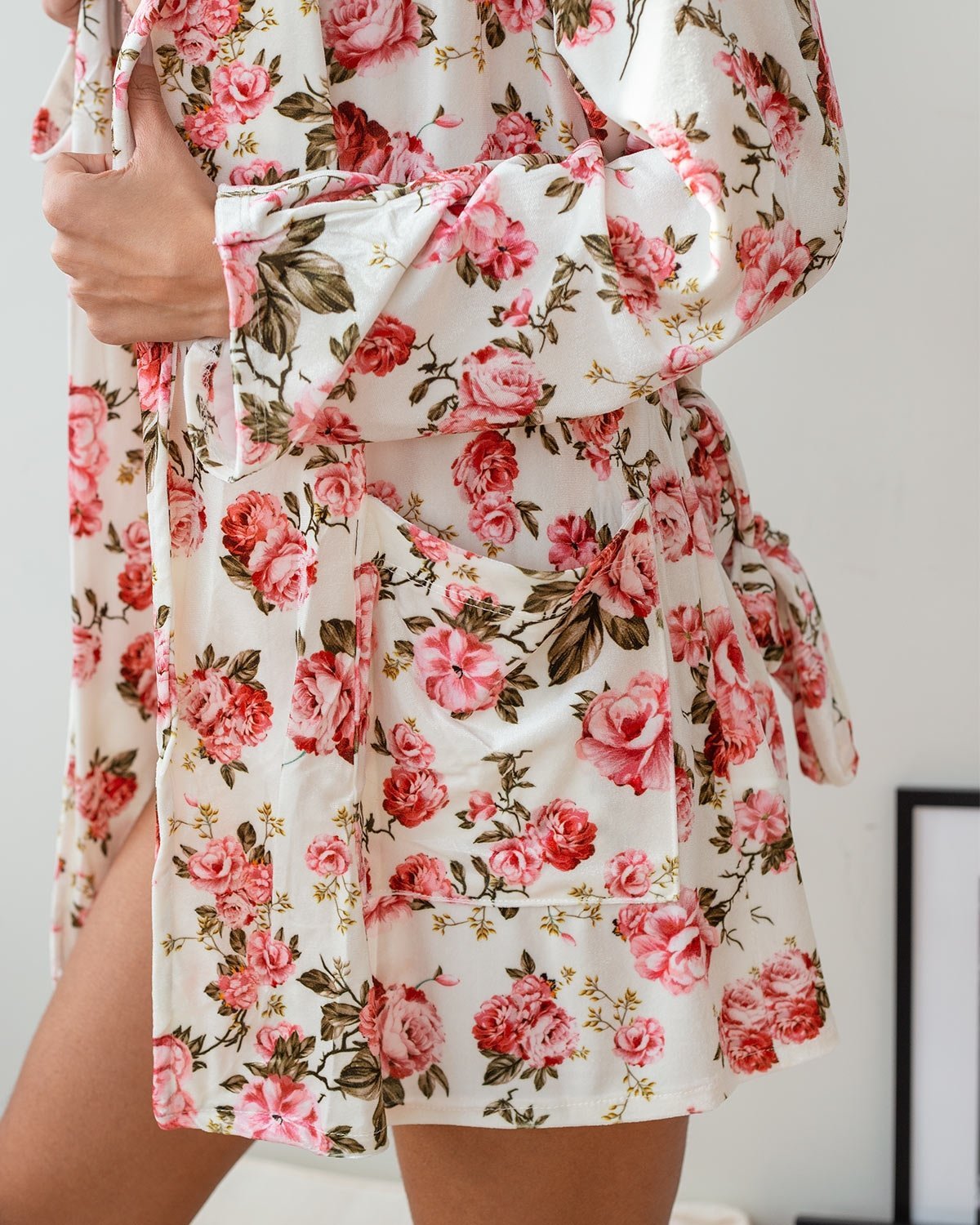 Ρόμπα velvet με λουλούδια.Έχει εξωτερικές τσέπες και δένει με ζώνη στο ίδιο χρώμα.