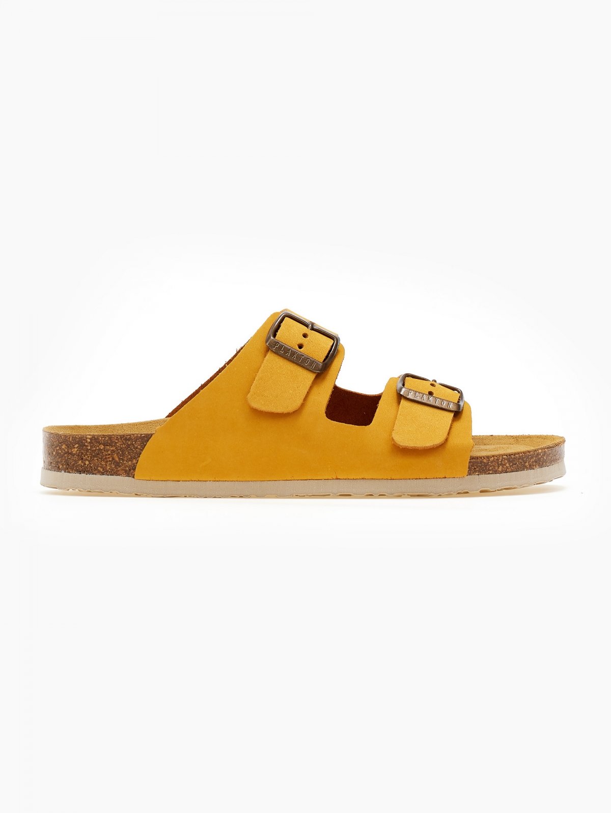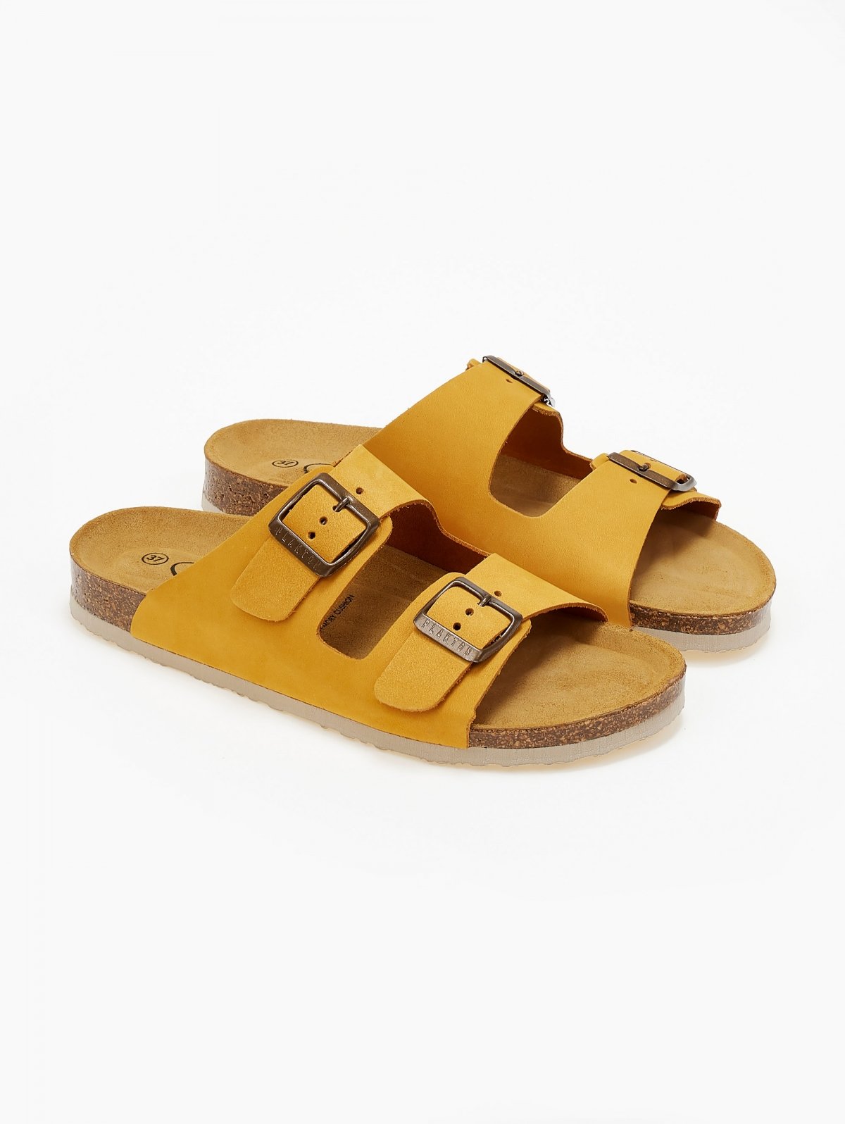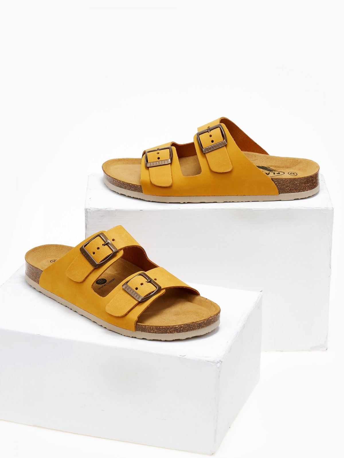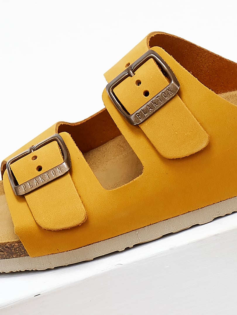 Σανδάλια ανατομικά δερμάτινα με δύο φάσες Plakton 180010 - Μουσταρδί