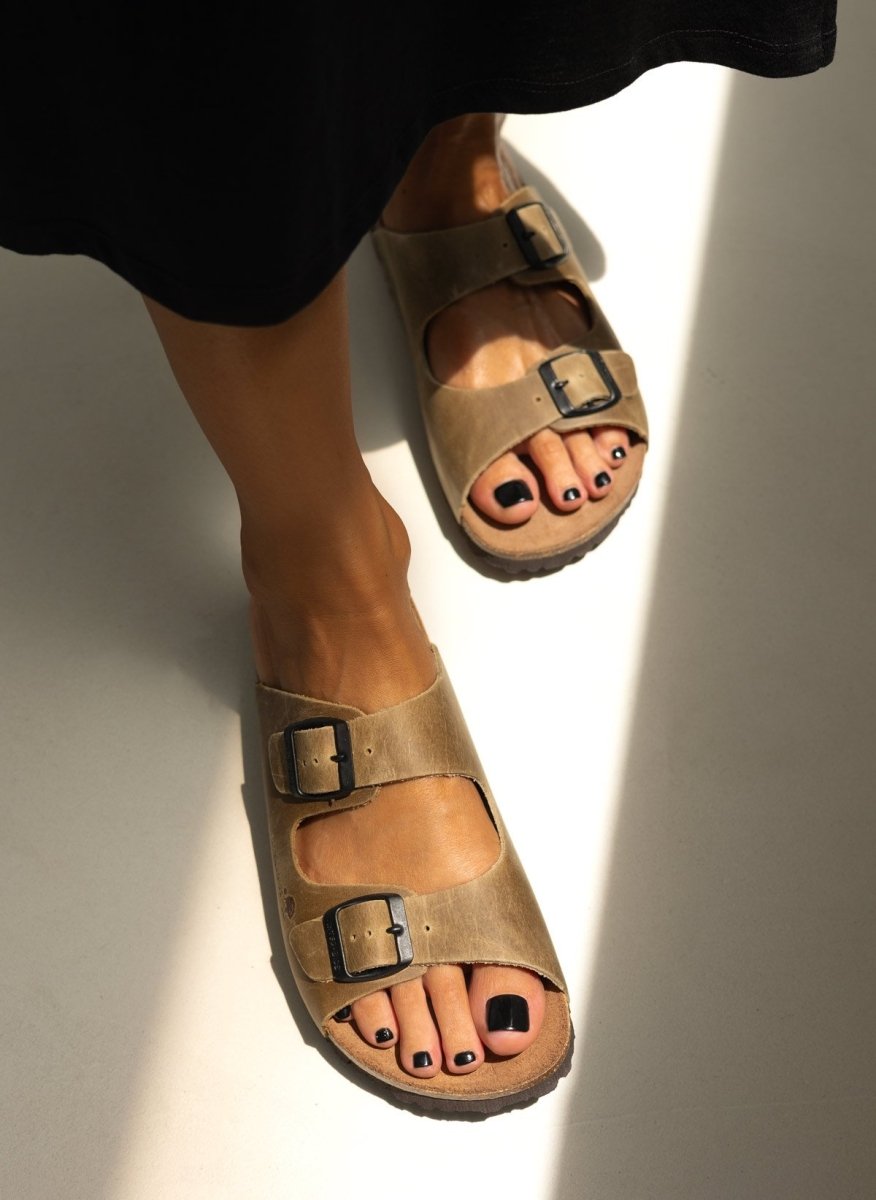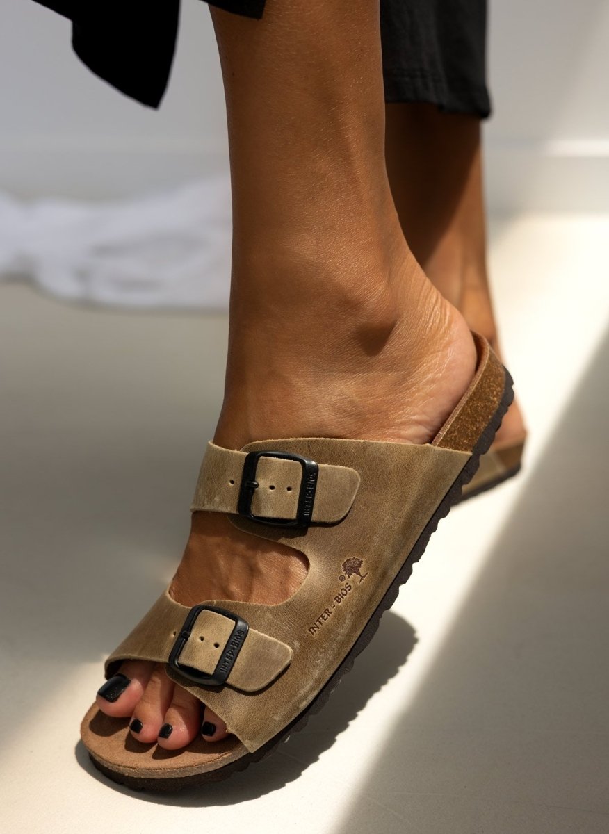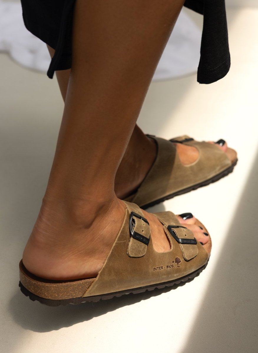 Σανδάλια ανατομικά δερμάτινα Interbios - Χακί