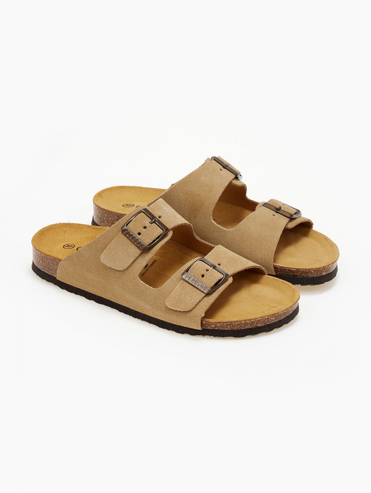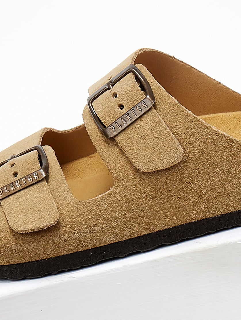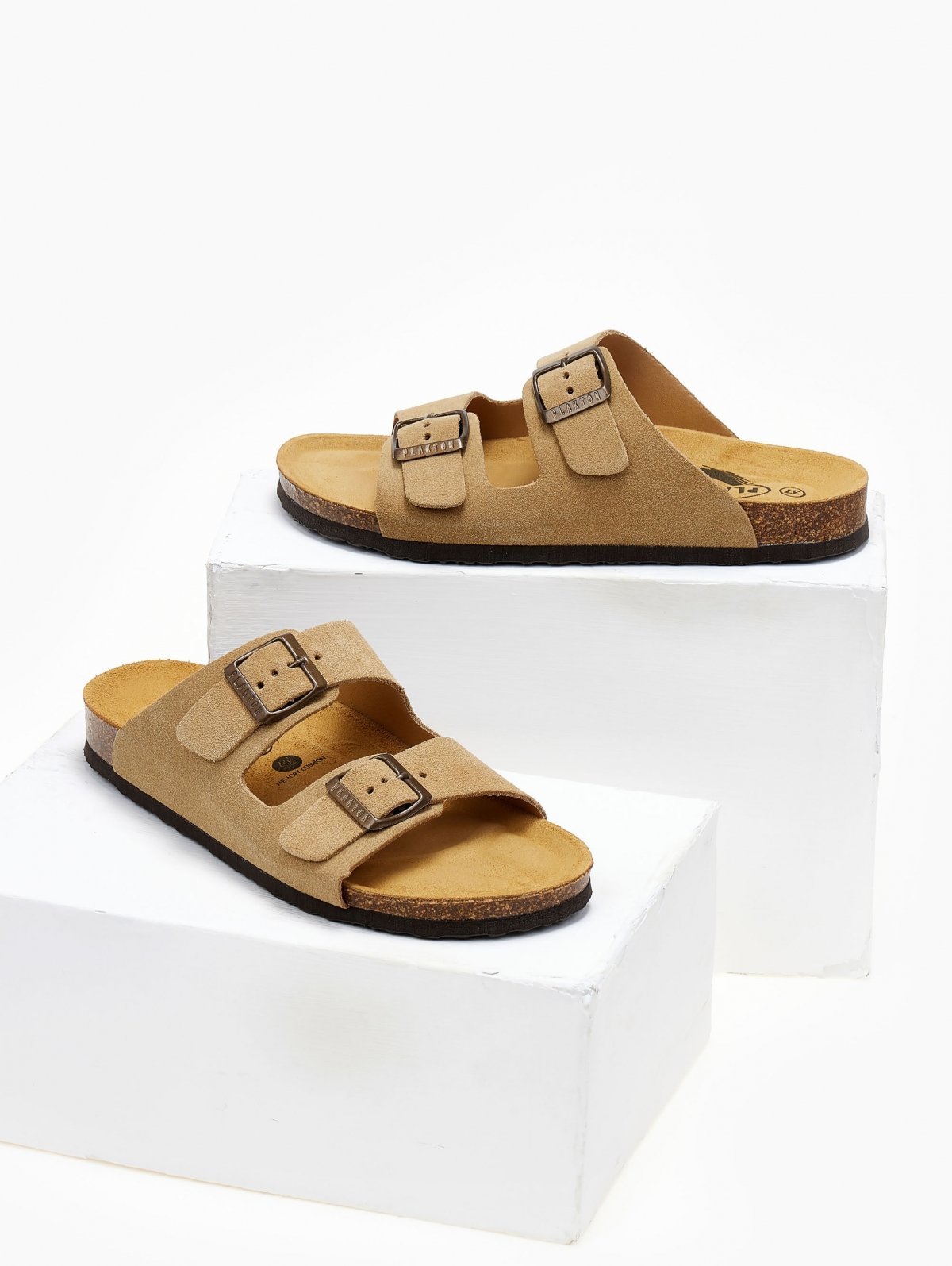 Σανδάλια από δέρμα καστόρι Plakton. Έχουν δύο φάσες με μεταλλικούς τοκάδες. Καστόρινος πάτος με Memory Cushion Technology και φυσικό φελλό. Made in Spain.