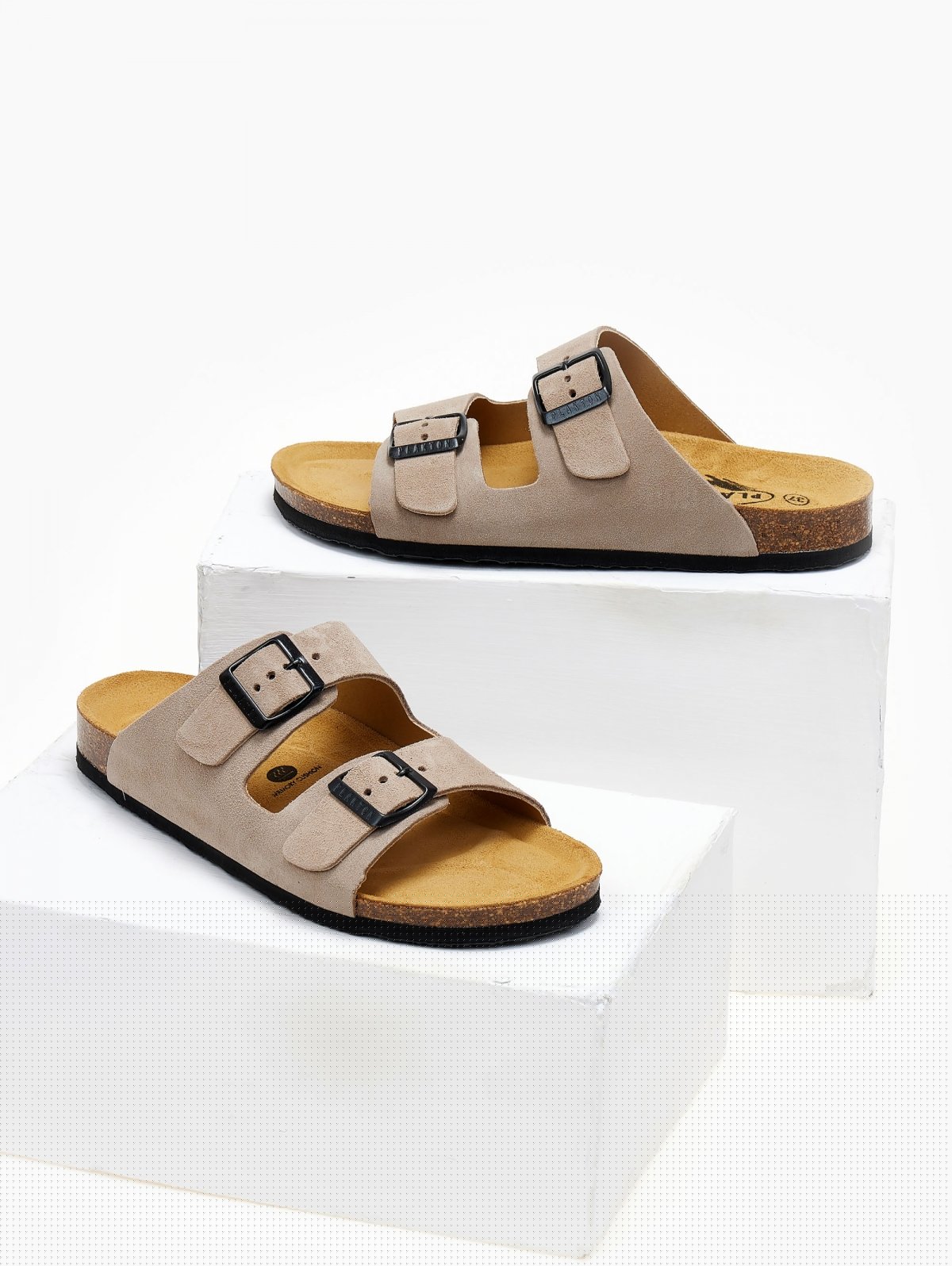 Σανδάλια από δέρμα καστόρι Plakton. Έχουν δύο φάσες με μεταλλικούς τοκάδες. Καστόρινος πάτος με Memory Cushion Technology και φυσικό φελλό. Made in Spain.