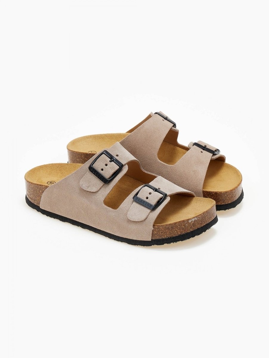 Σανδάλια από δέρμα καστόρι Plakton. Έχουν δύο φάσες με μεταλλικούς τοκάδες. Ο πάτος είναι καστόρινος με Memory Cushion Tecnology και φυσικό φελλό. Made in Spain.