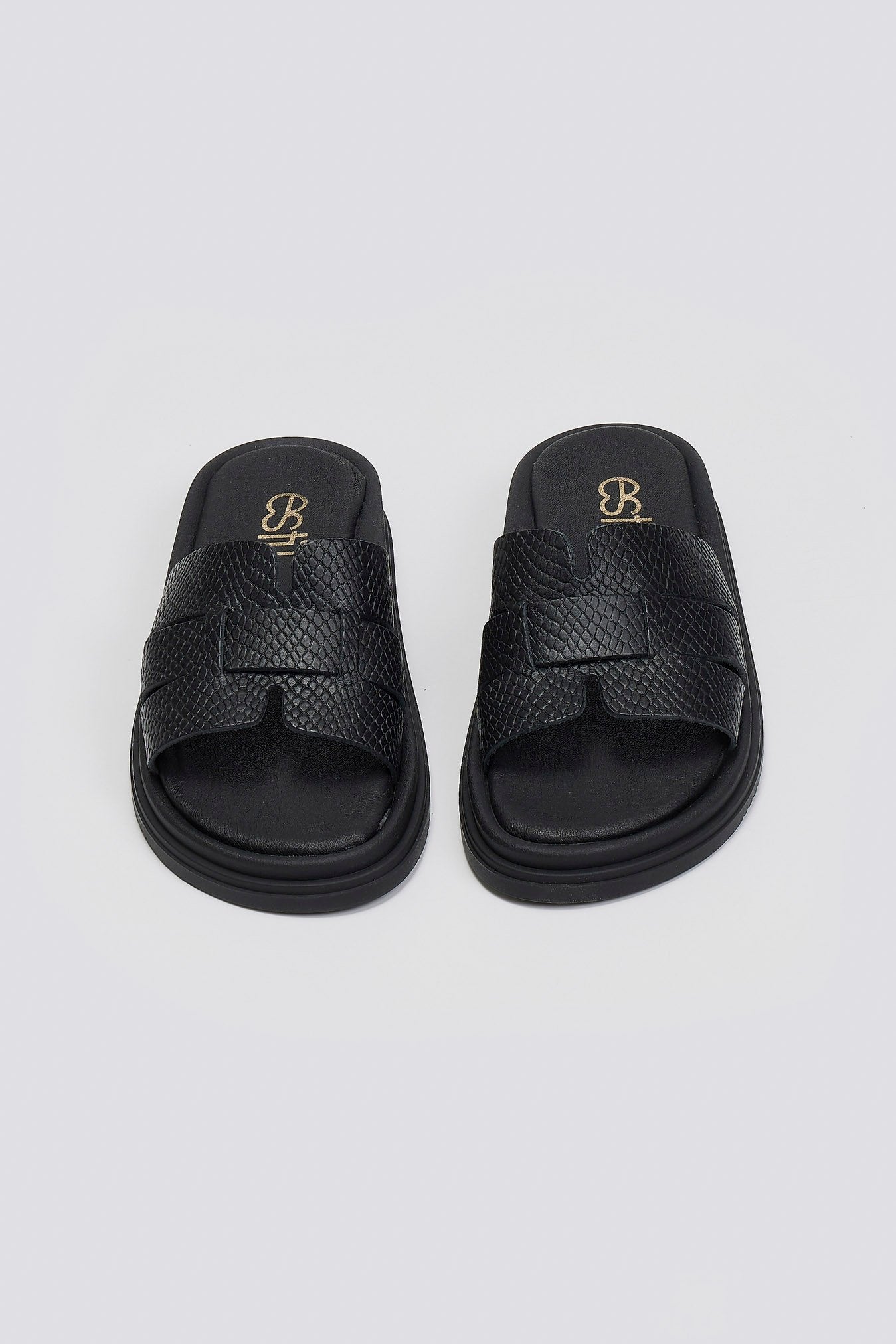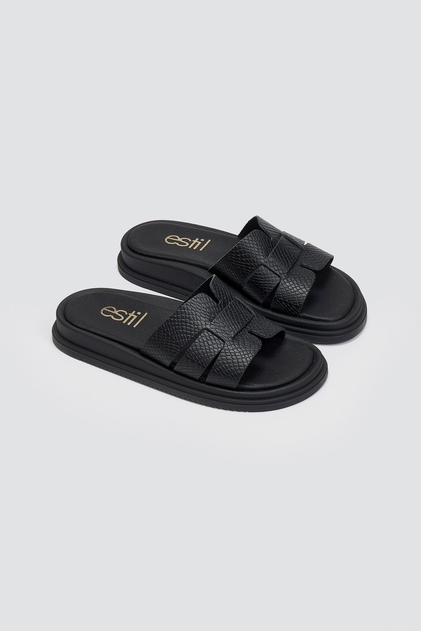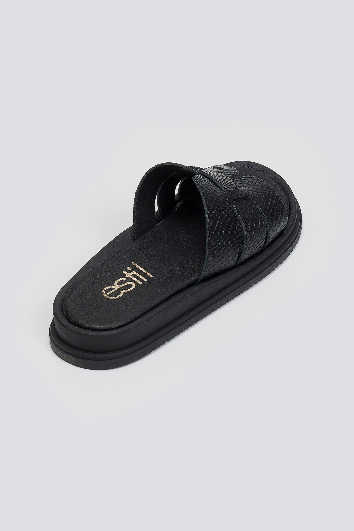 Genuine leather sandals with slip-on strap Estil. Embossed pattern. Soft padded insole. Made in Greece.