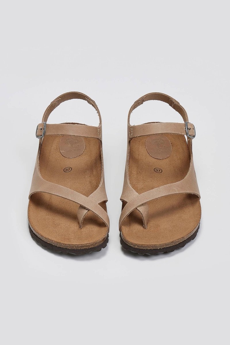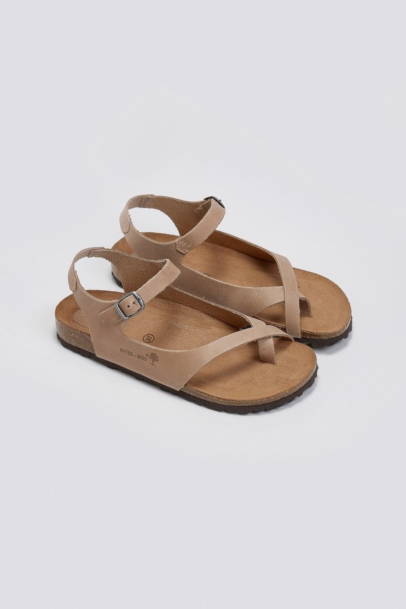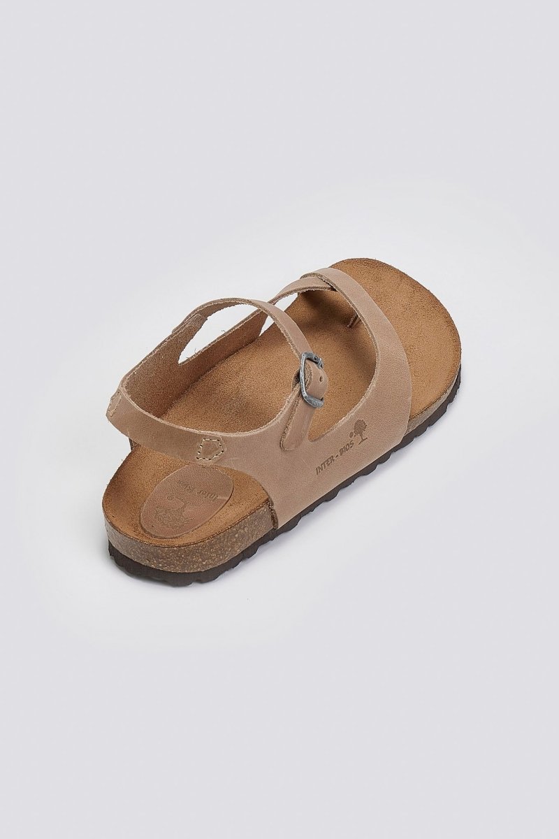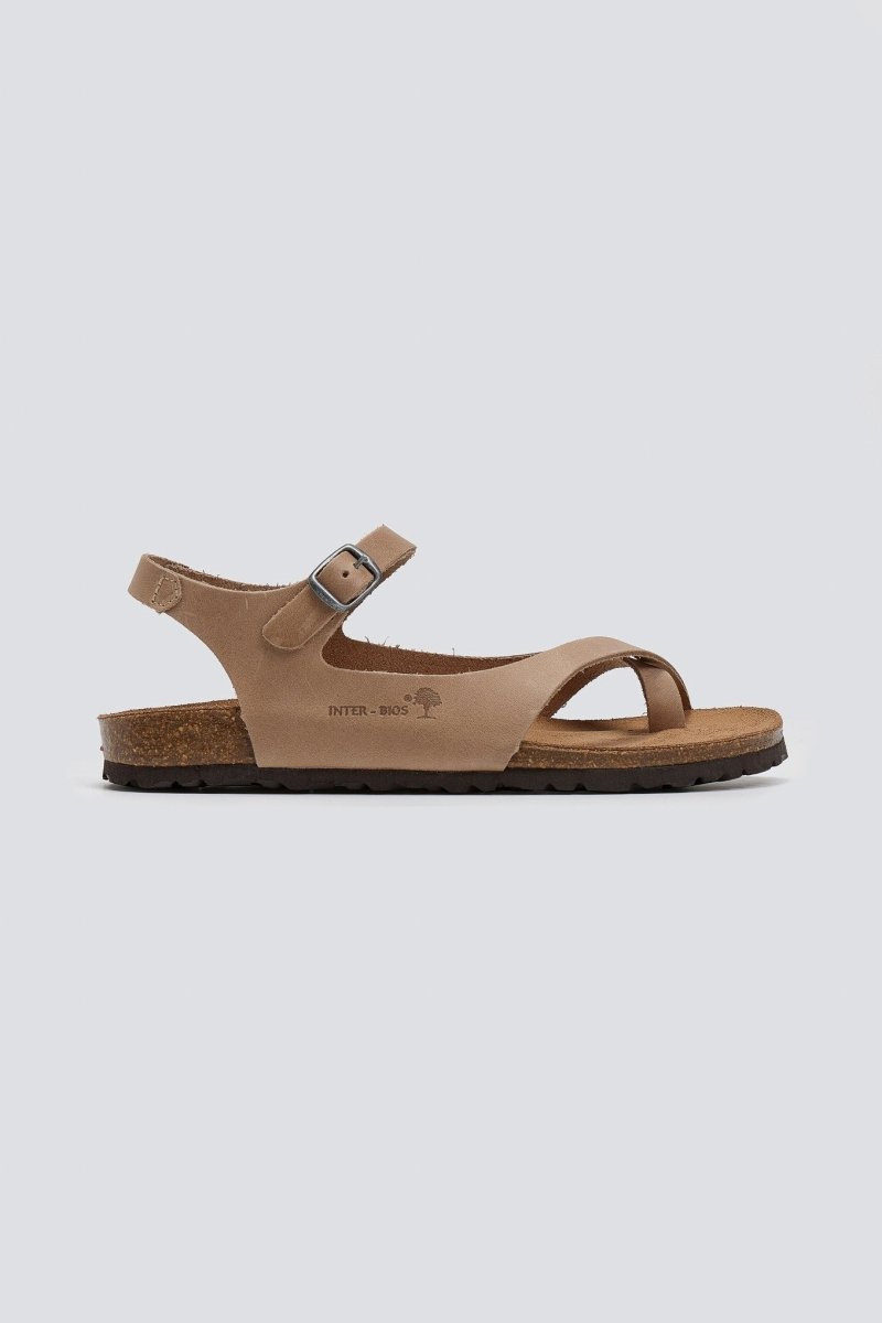 Σανδάλια από γνήσιο δέρμα Interbios. Ανατομικός πάτος από δέρμα καστόρι. Δένουν με μπαρέτα στο ύψος του κουτεπιέ. Σόλα fusberg από latex φελλό. Made in Spain.