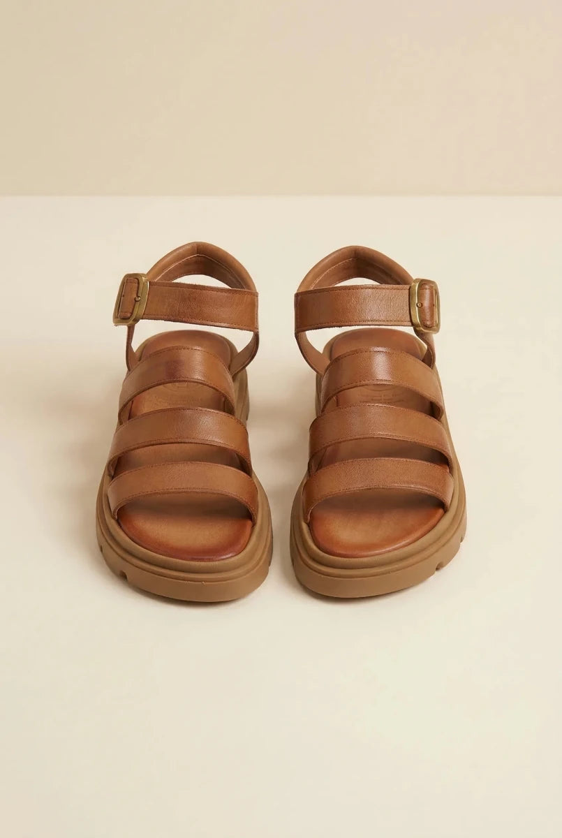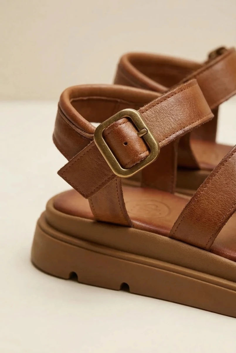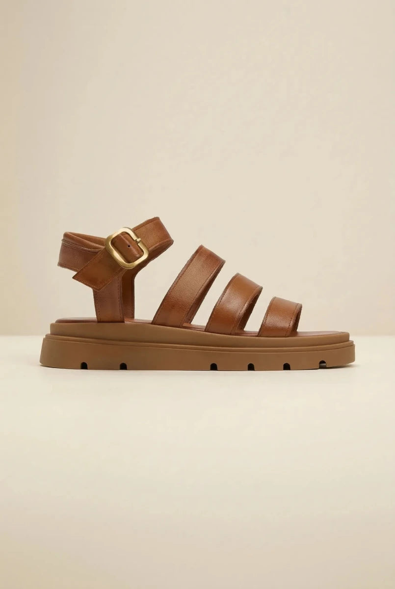 Leather Sandals with Straps - Tan
