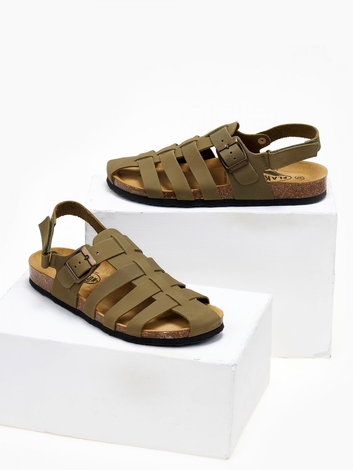 Σανδάλια δερμάτινα fisherman ανατομικά Plakton - Χακί