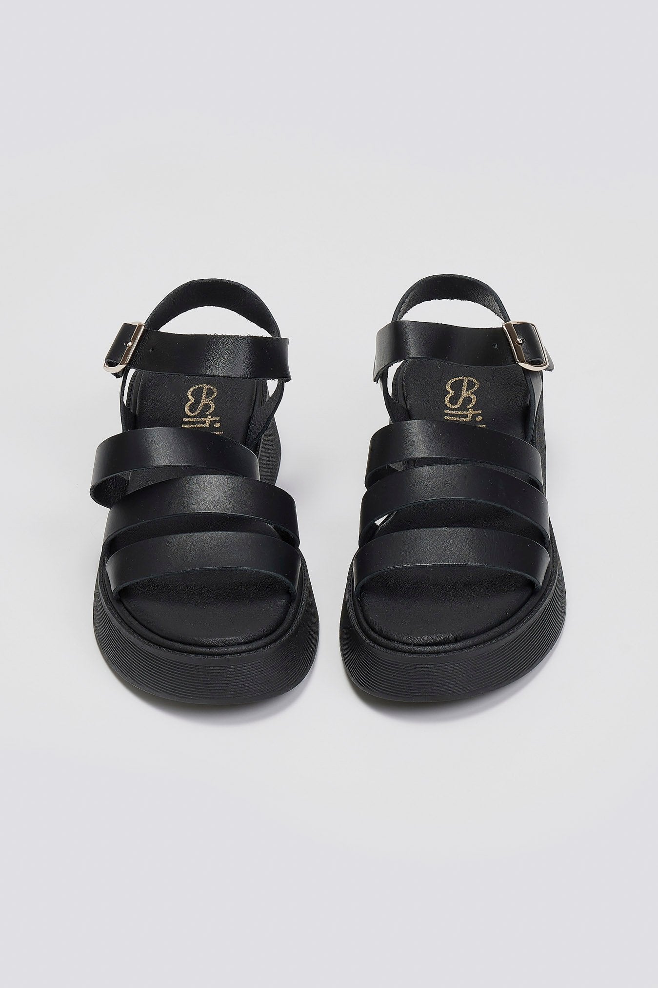 Leather flatform sandals with straps by Estil. They feature an instep strap closure. Soft cushioned insole. Made in Greece.
