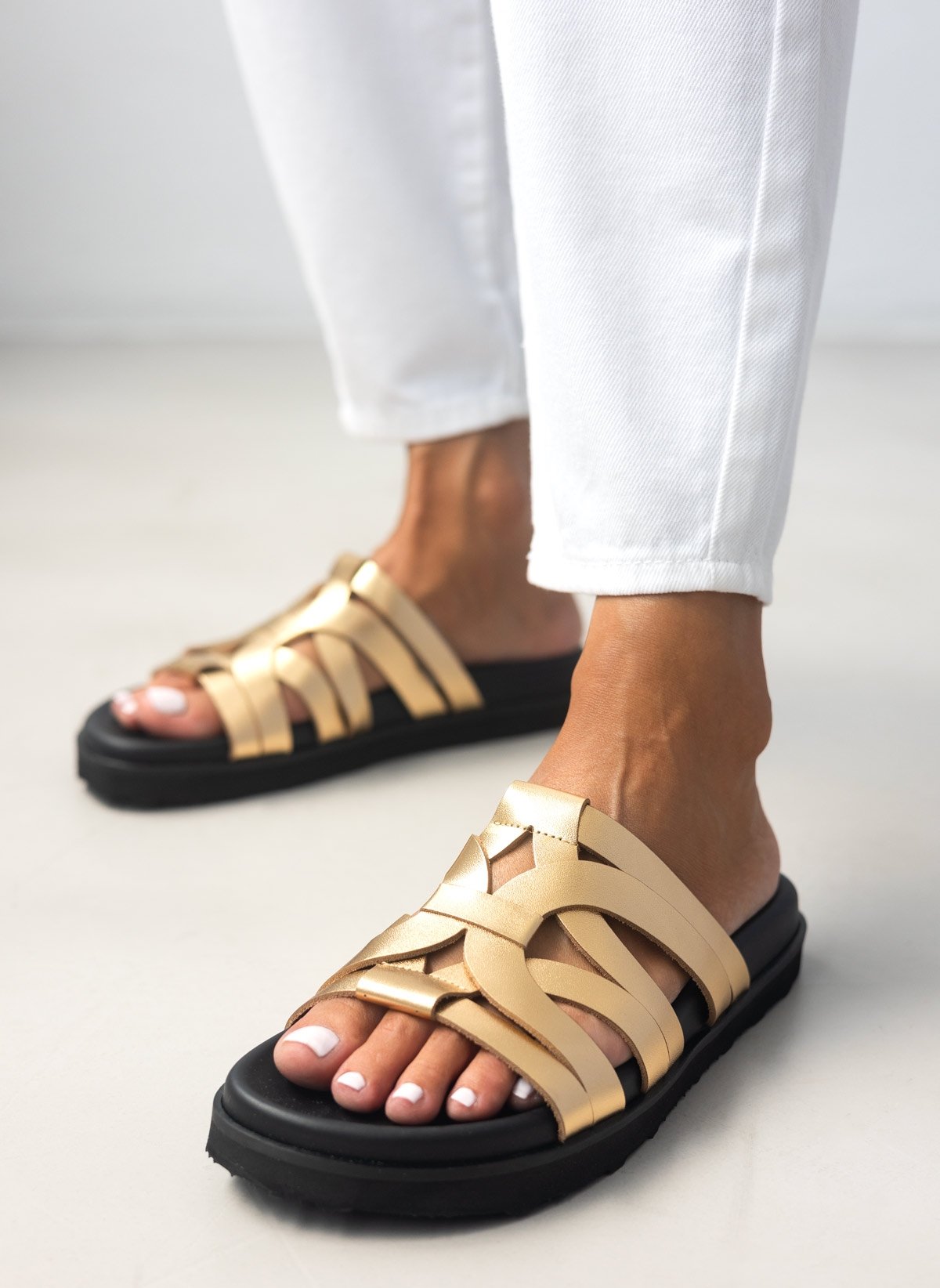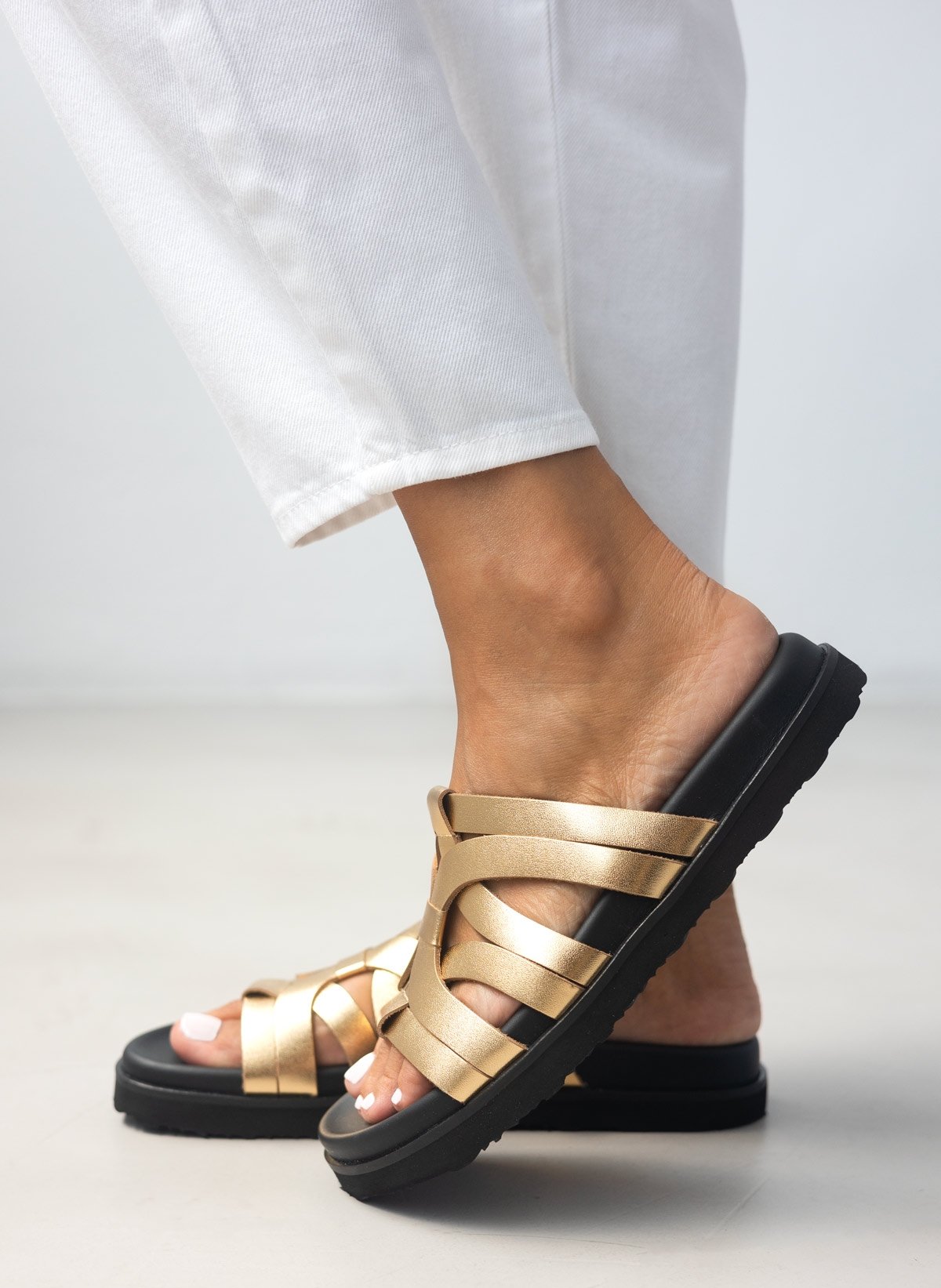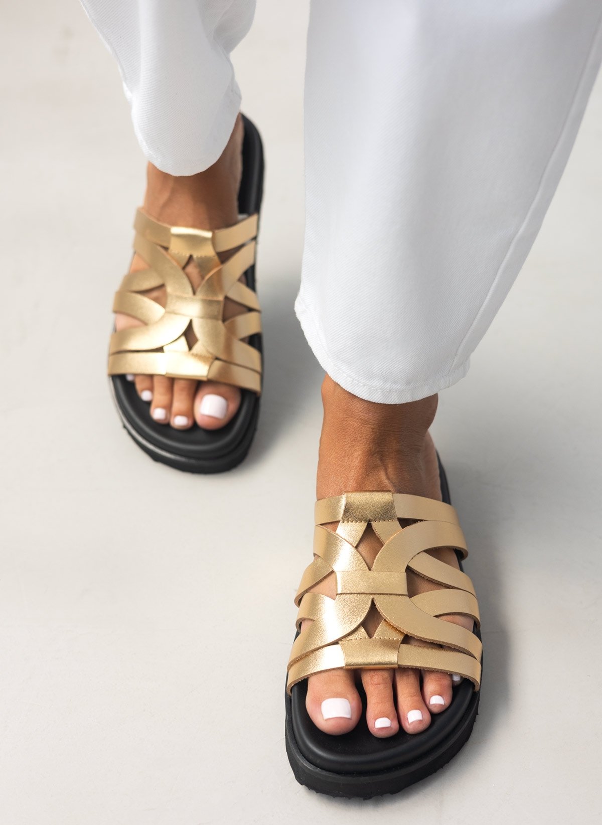 Leather Sandals Special Strap - Χρυσό