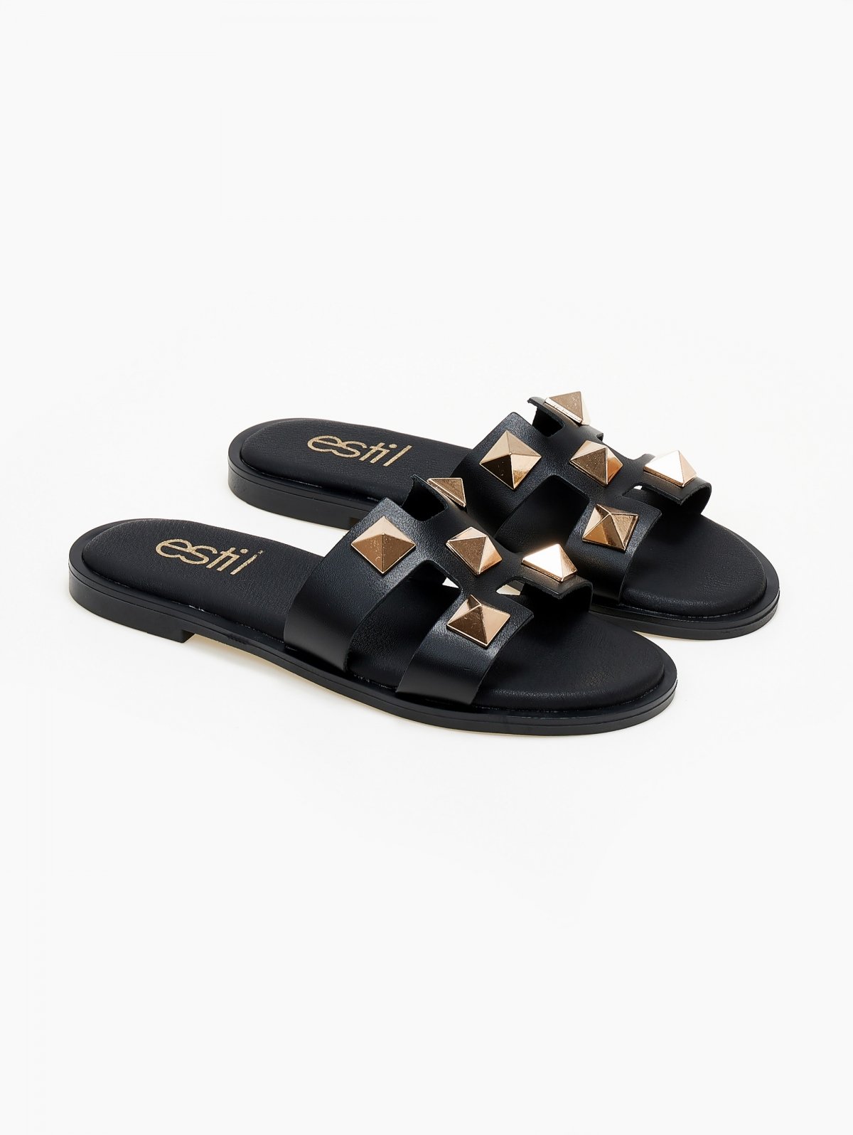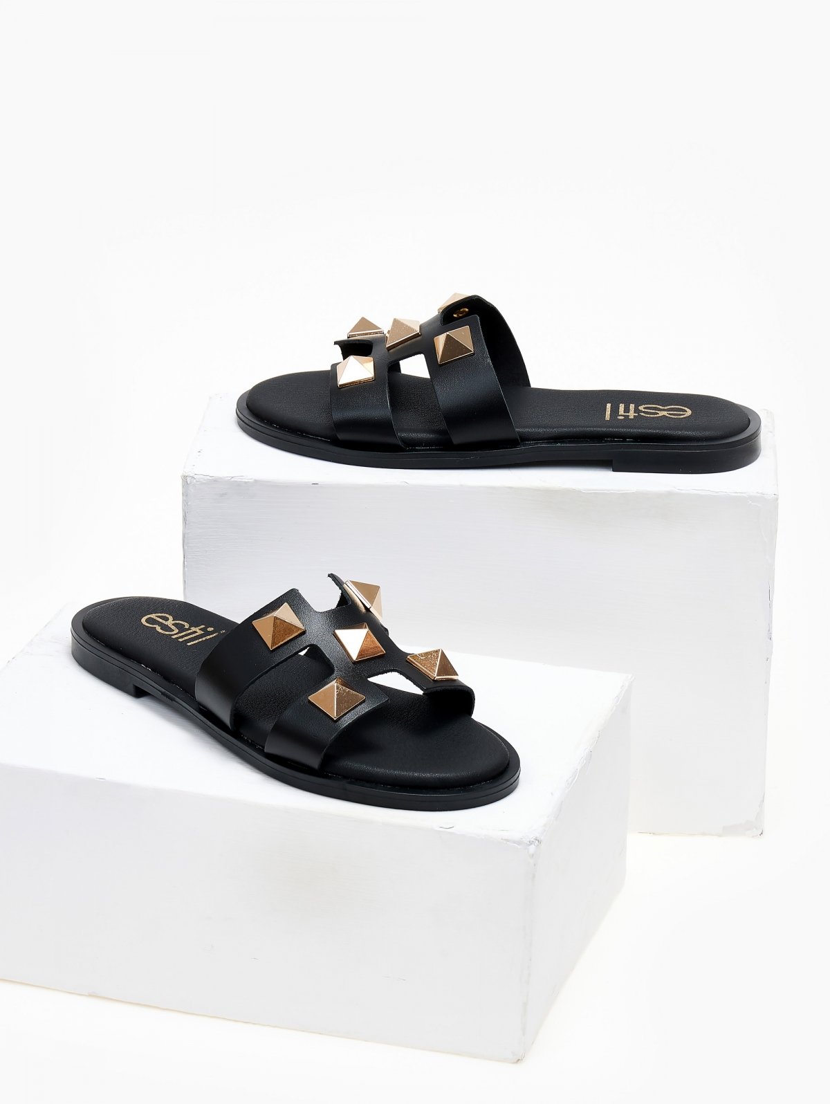 Σανδάλια δερμάτινα με καρφιά Estil. Φάσα με ανοίγματα στο πλάι. Μαλακός πάτος με ενίσχυση. Ελληνικής κατασκευής.