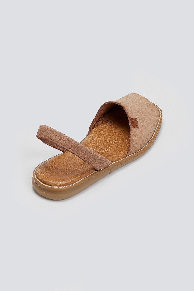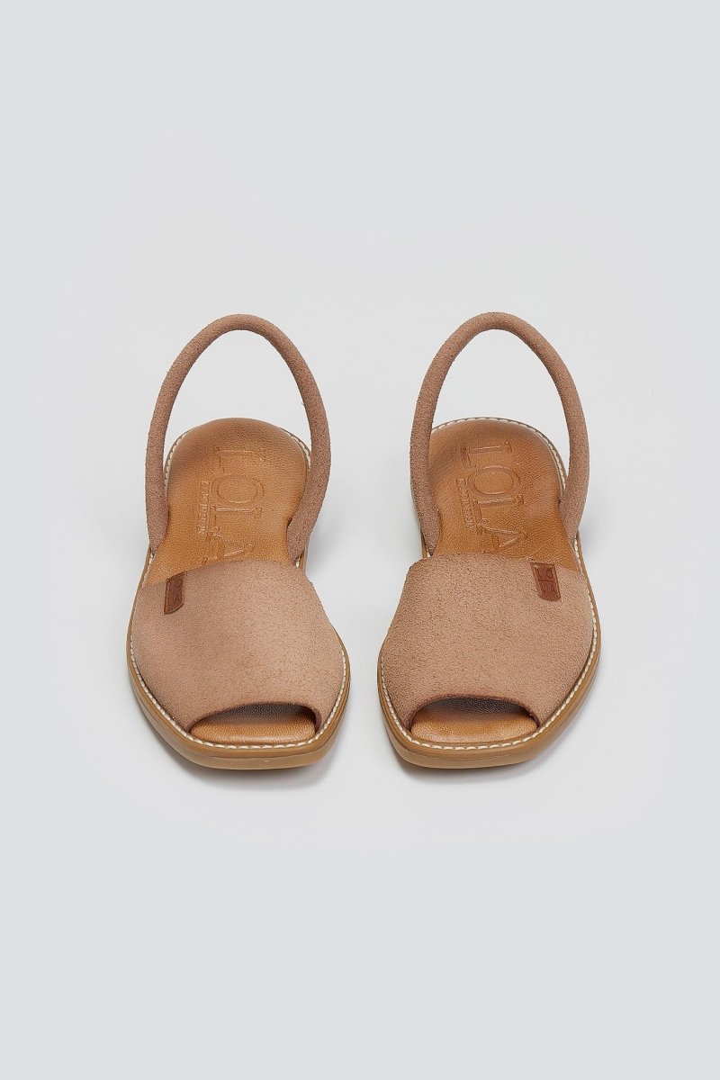 Σανδάλια από γνήσιο δέρμα Lola Almagro. Φαρδιά φάσα με διακριτικό λογότυπο. Λουράκι στο πίσω μέρος. Μαλακός δερμάτινος πάτος με ενίσχυση. Comfort εύκαμπτη σόλα. Made in Spain.