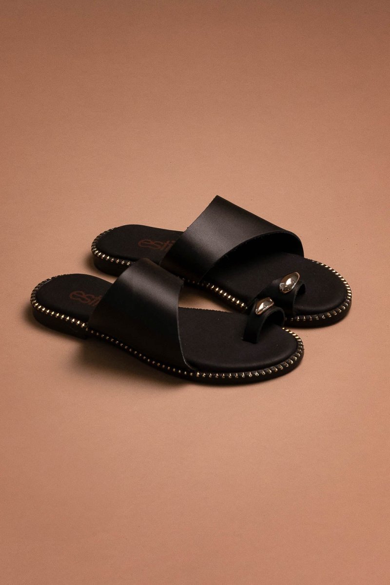 Σανδάλια δερμάτινα με ασύμμετρο σχέδιο Estil - Μαύρο