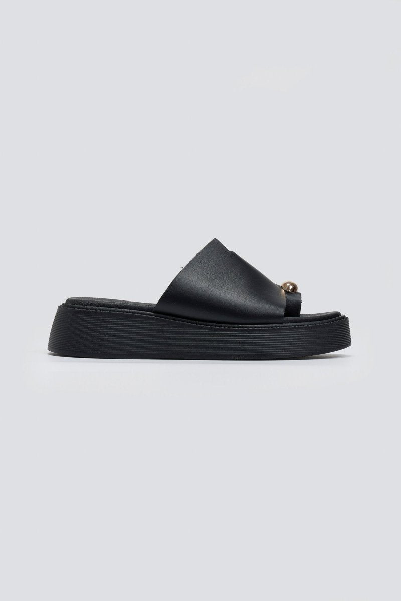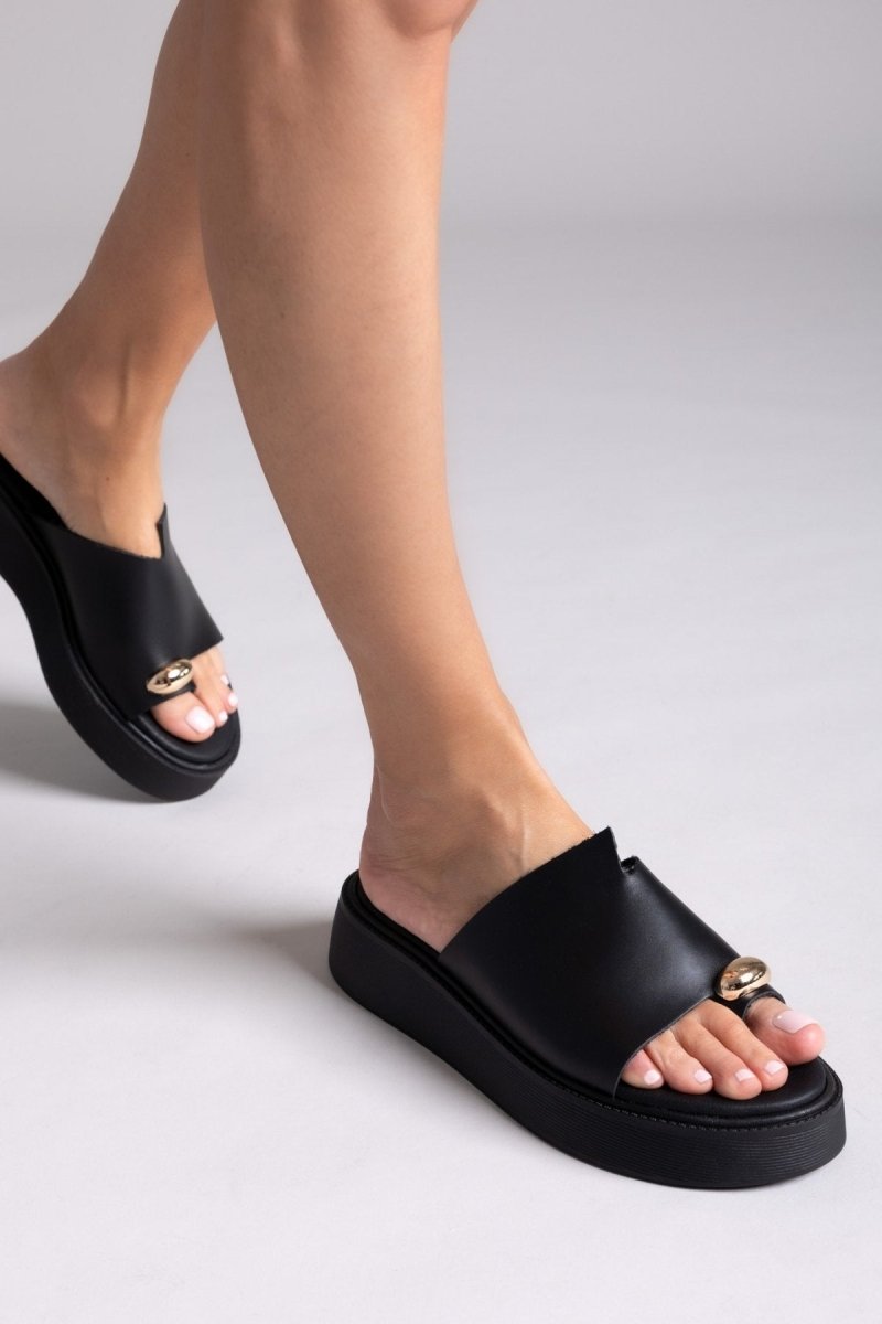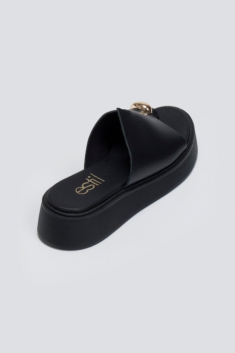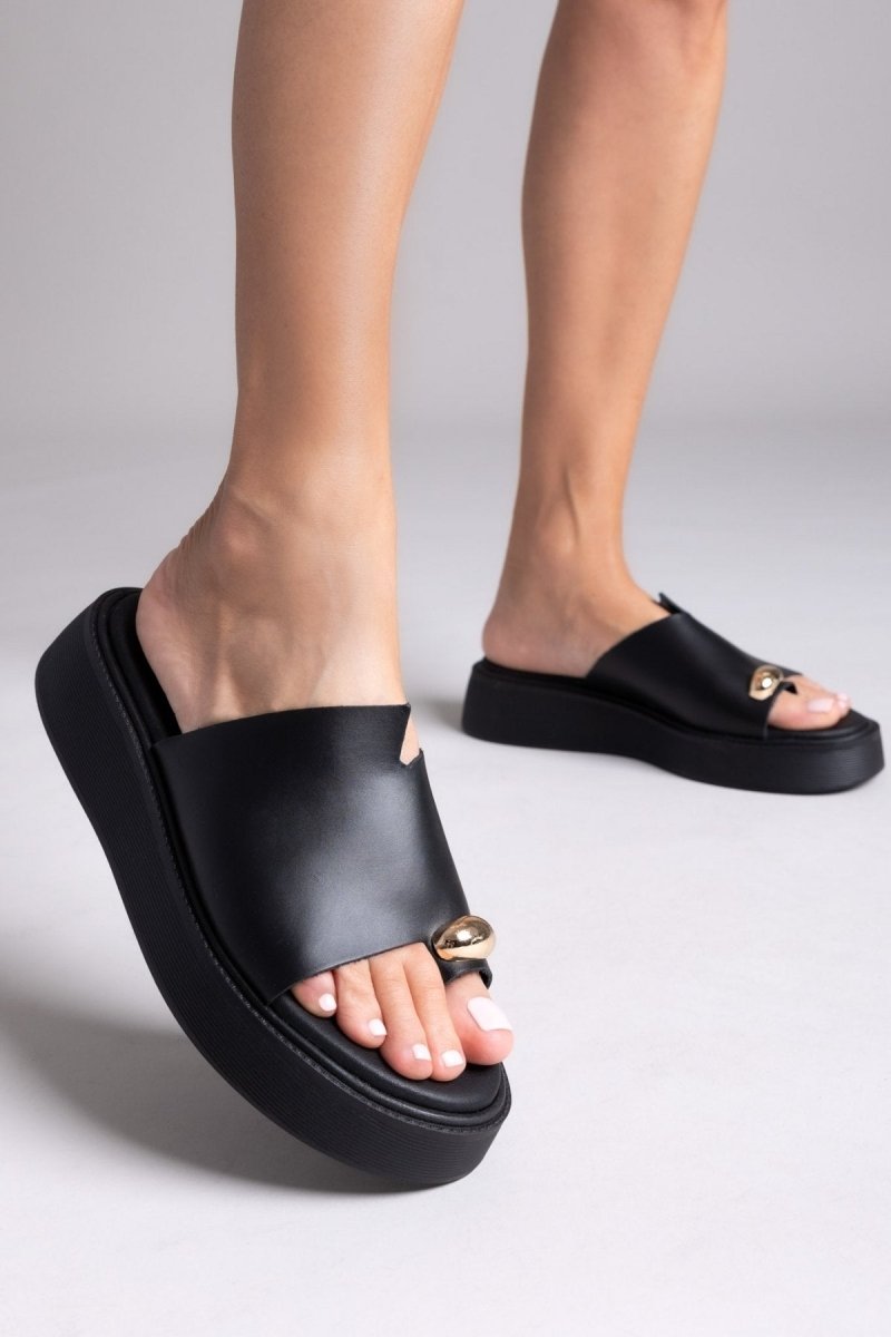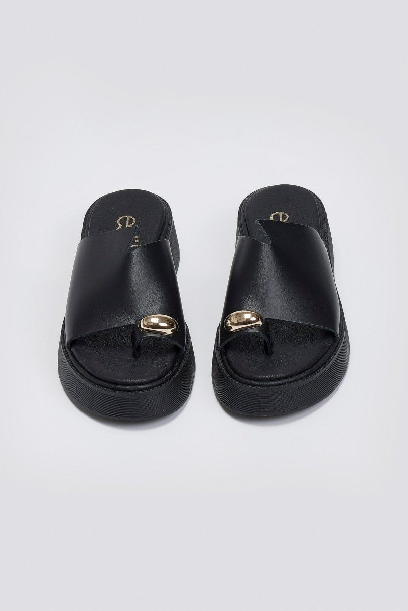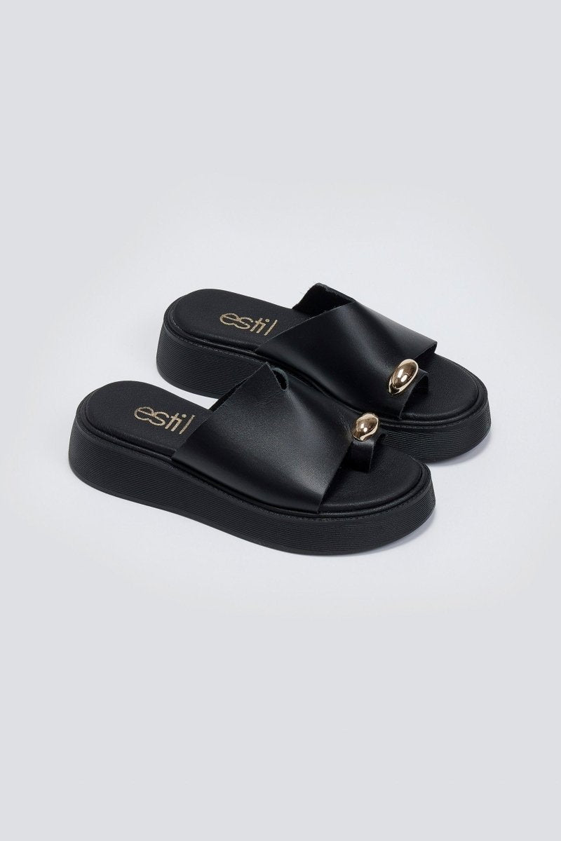 Σανδάλια δερμάτινα με μεταλλικό στοιχείο Estil - Μαύρο