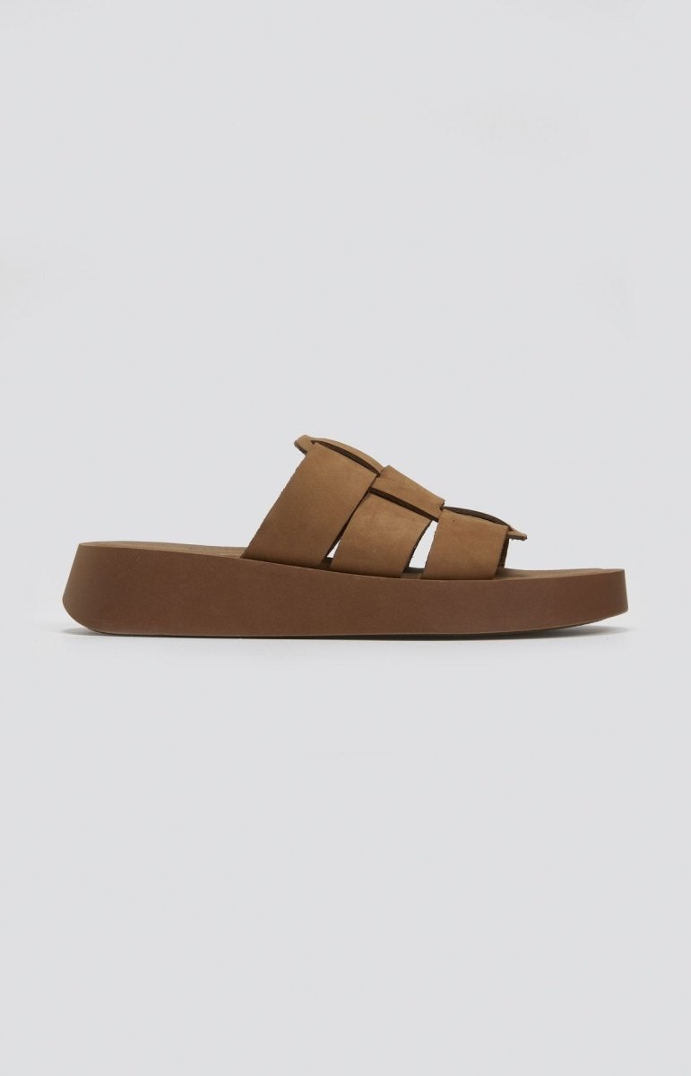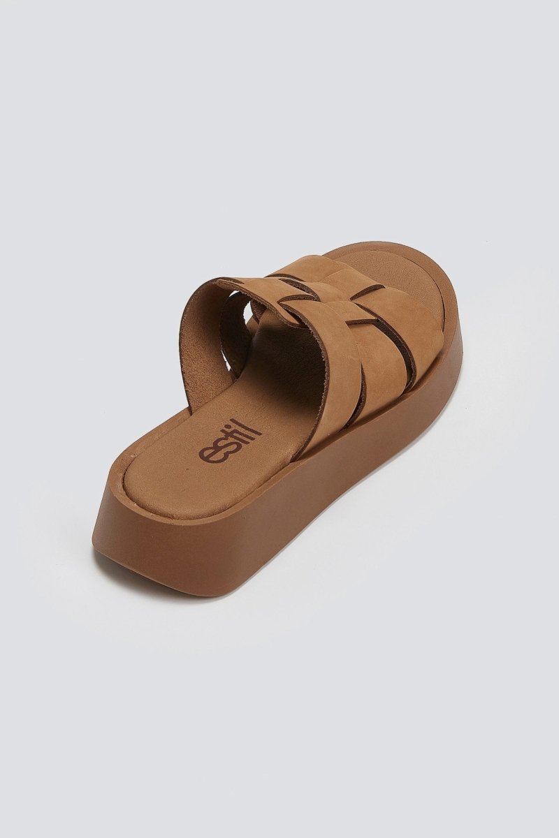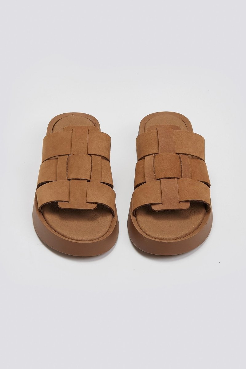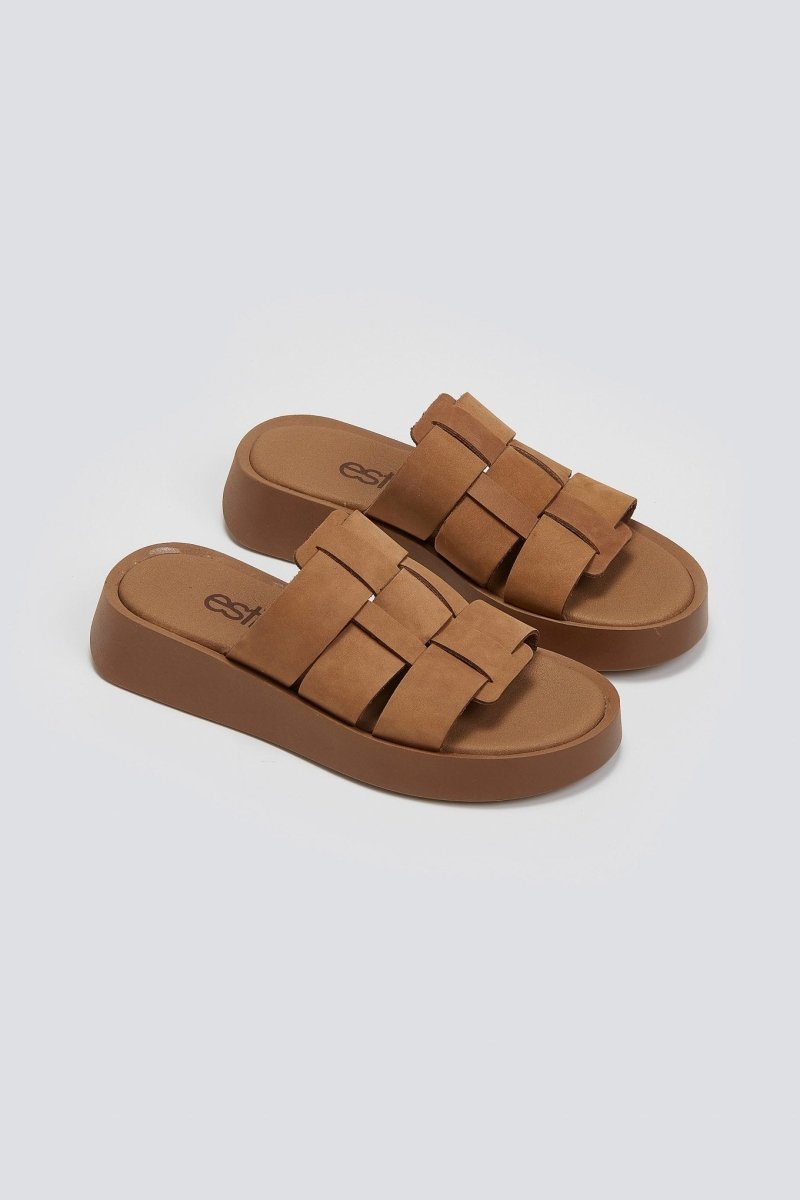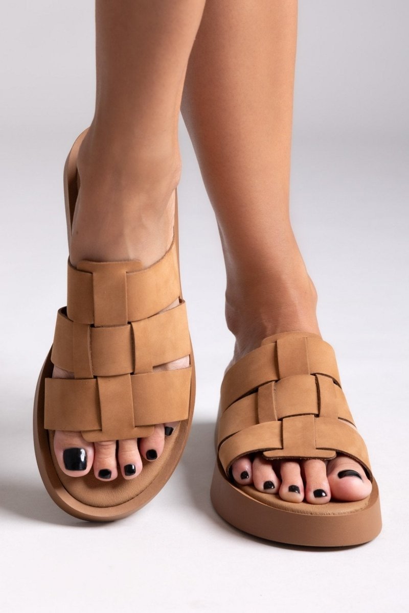 Σανδάλια δερμάτινα με περαστές φάσες Estil - Κάμελ