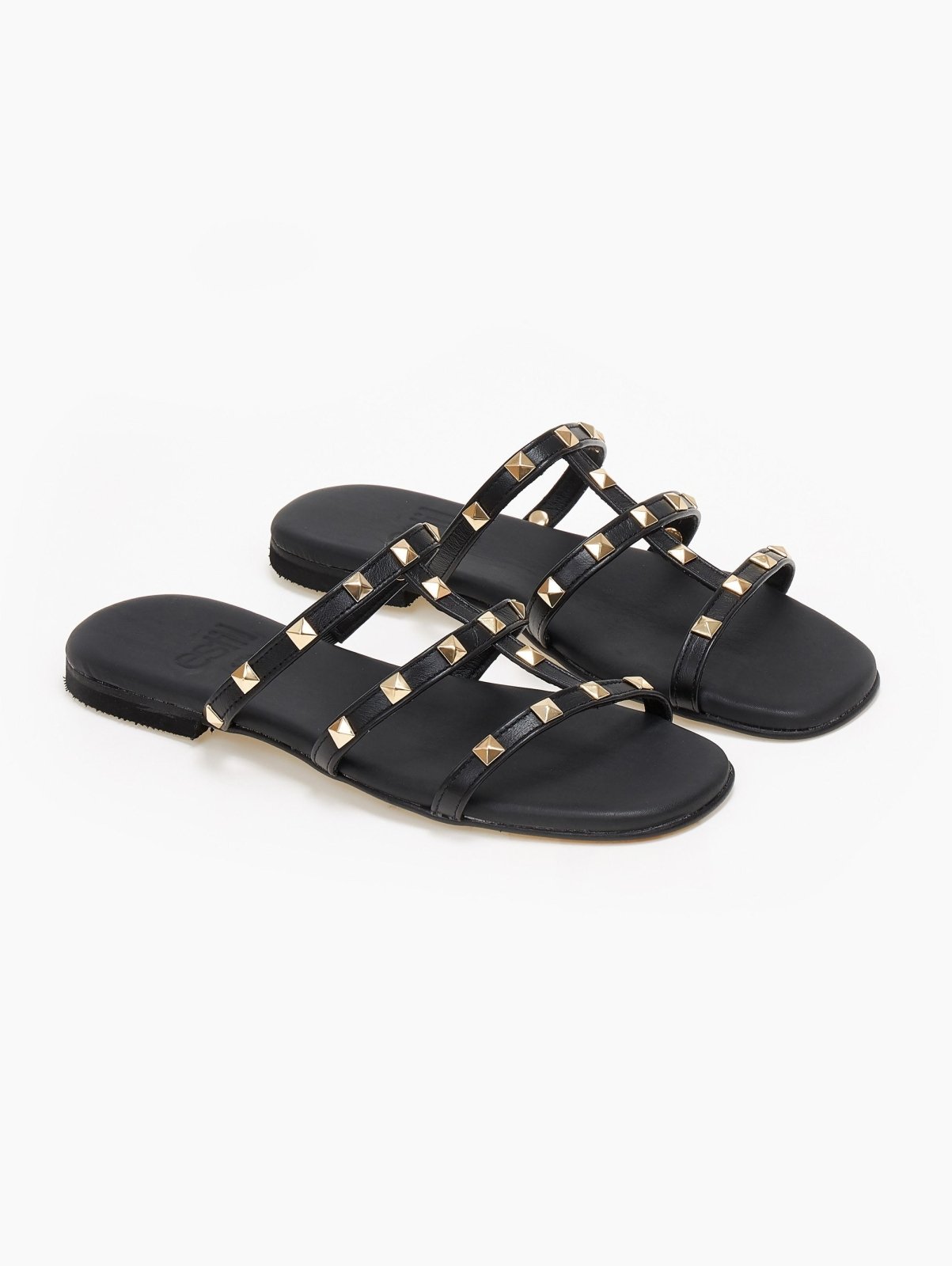 Δερμάτινα σανδάλια estil. Έχουν λεπτά λουράκια με τρουκς στη φάσα. Ανοιχτή φτέρνα. Καρέ γραμμή. Δερμάτινος πάτος. Ελληνικής κατασκευής.