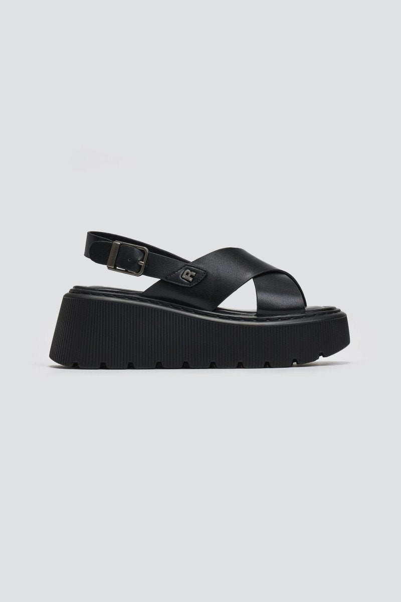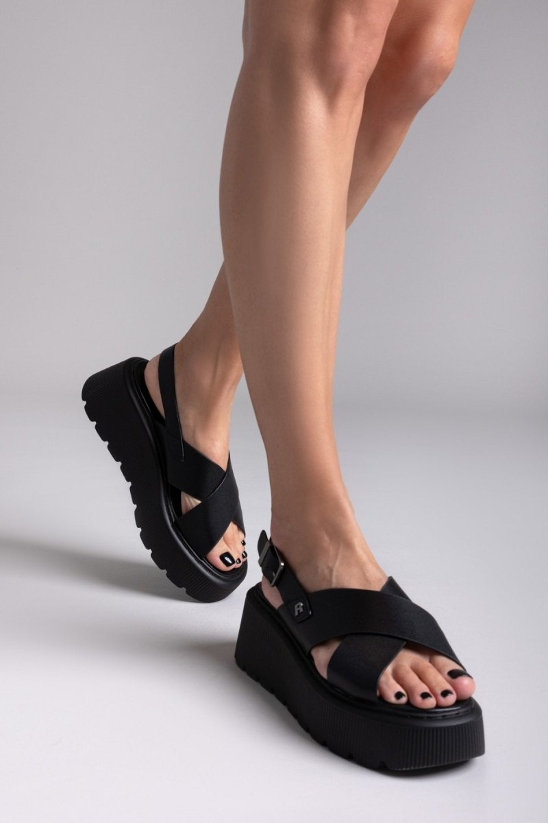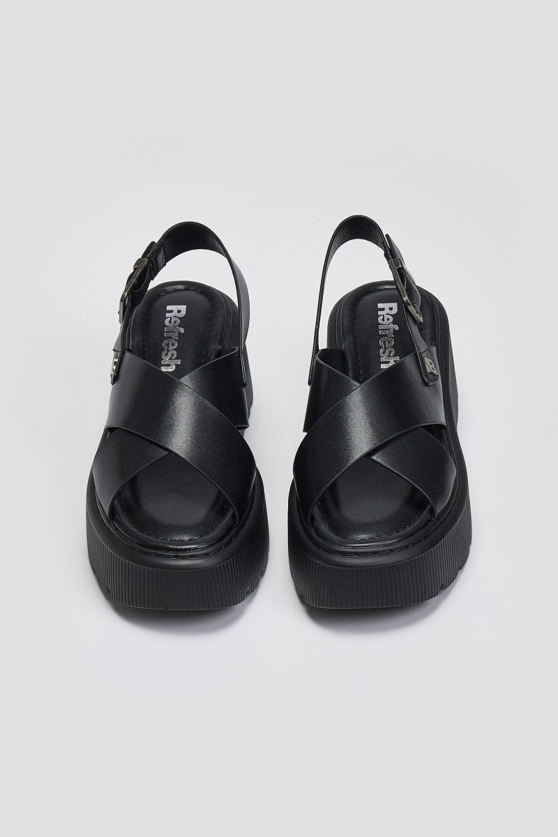 Σανδάλια flatforms με crossover φαρδιές φάσες Refresh. Σόλα ψηλή με σχέδιο. Comfort biotech μαλακός πάτος με memory foam. Peta Vegan approved.
