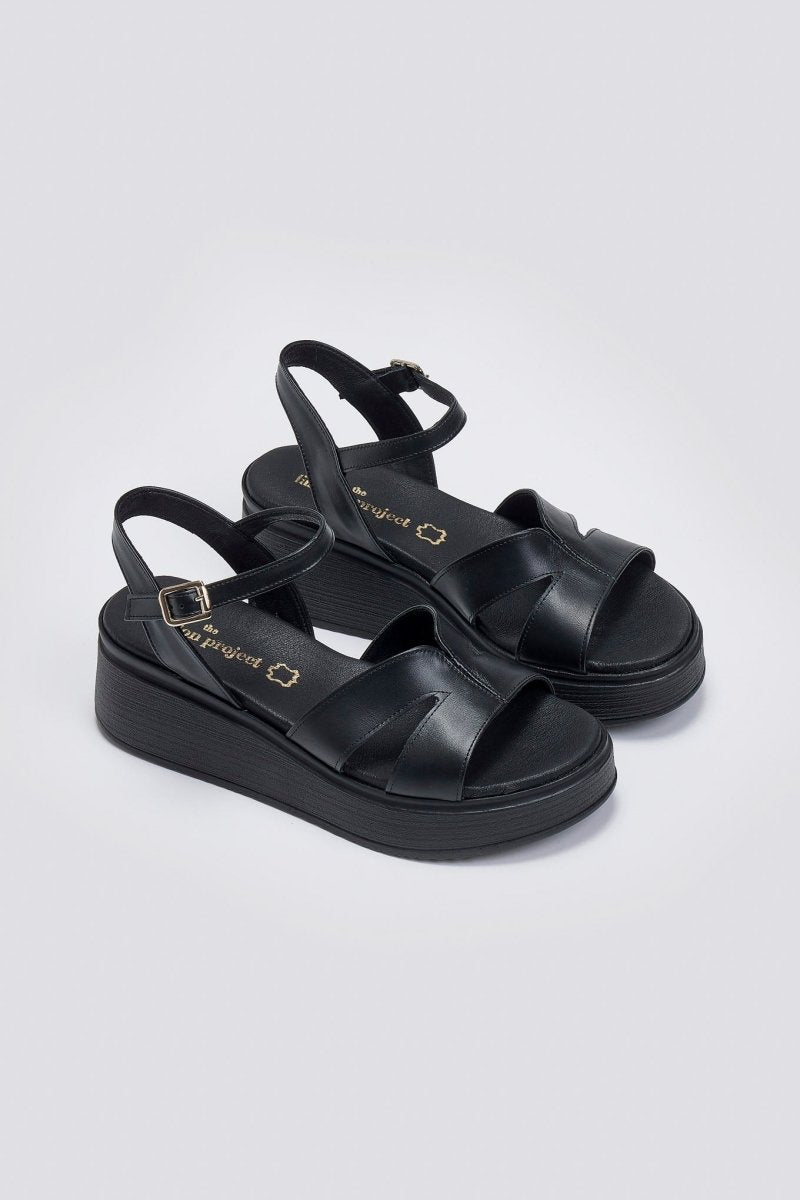 Σανδάλια flatforms δερμάτινα TFP - Μαύρο