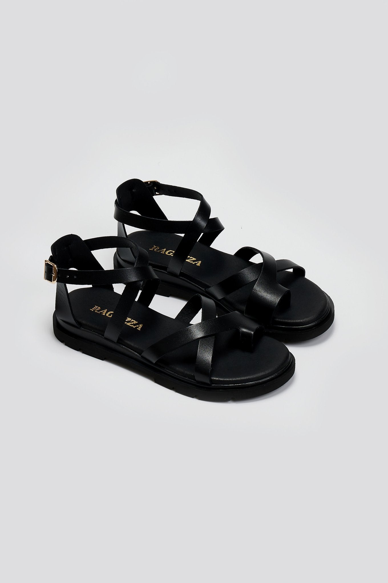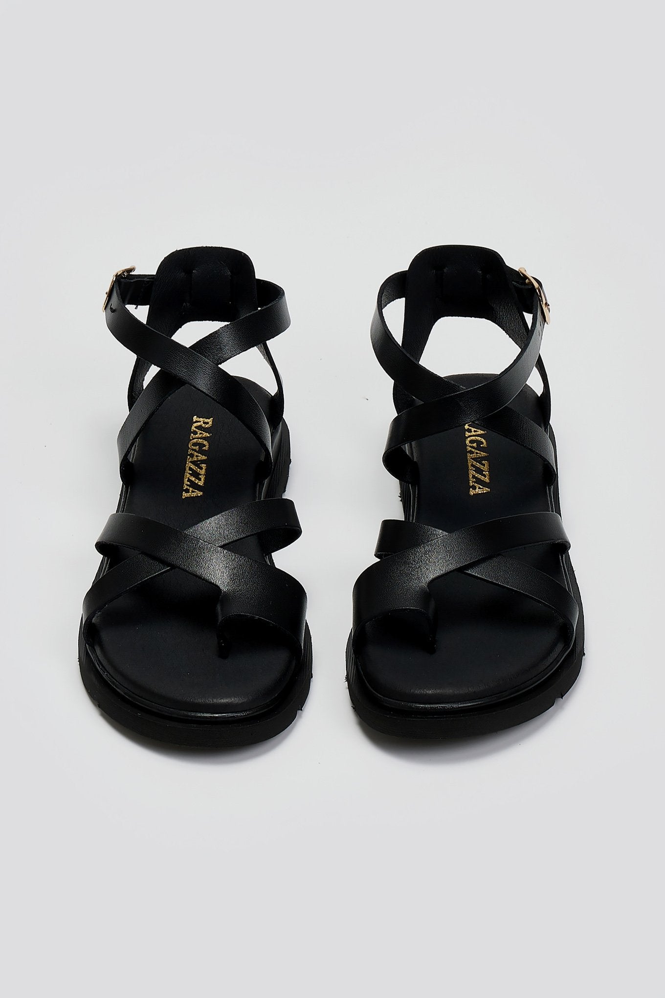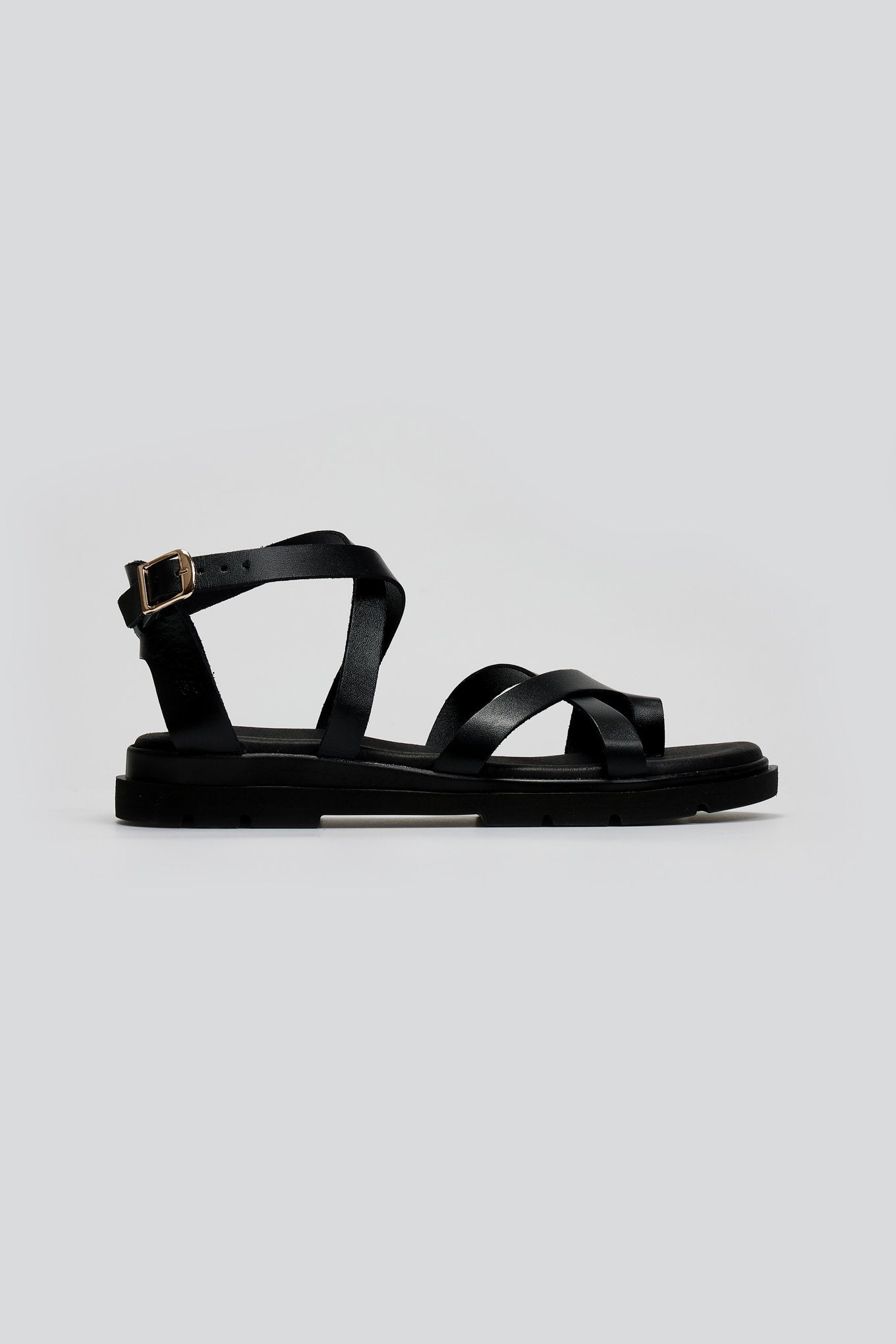 Leather gladiator sandals with side buckle fastening for a secure fit. Dryflex technology delivers breathability, shock absorption and odor control. Crafted for modern women.