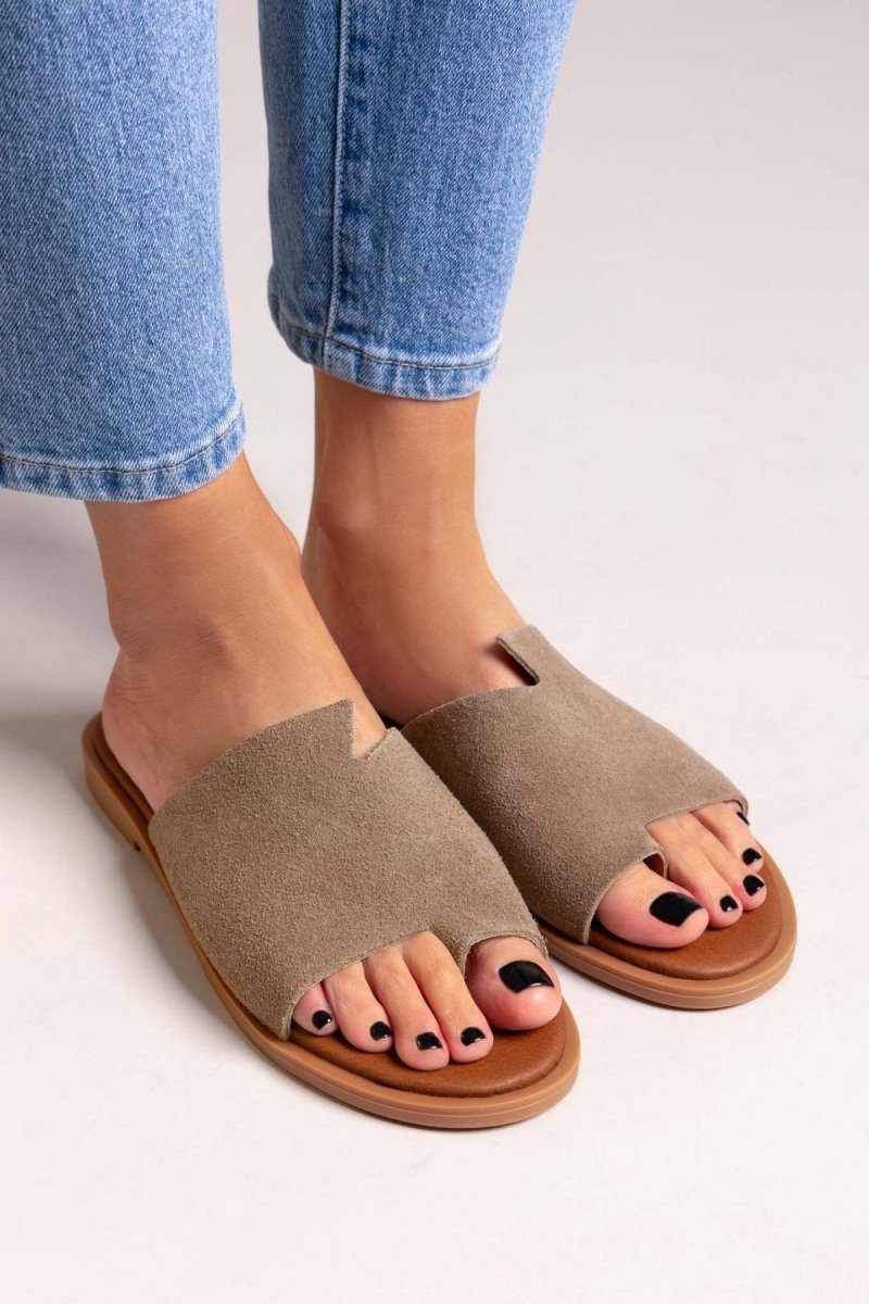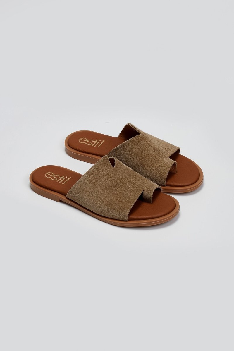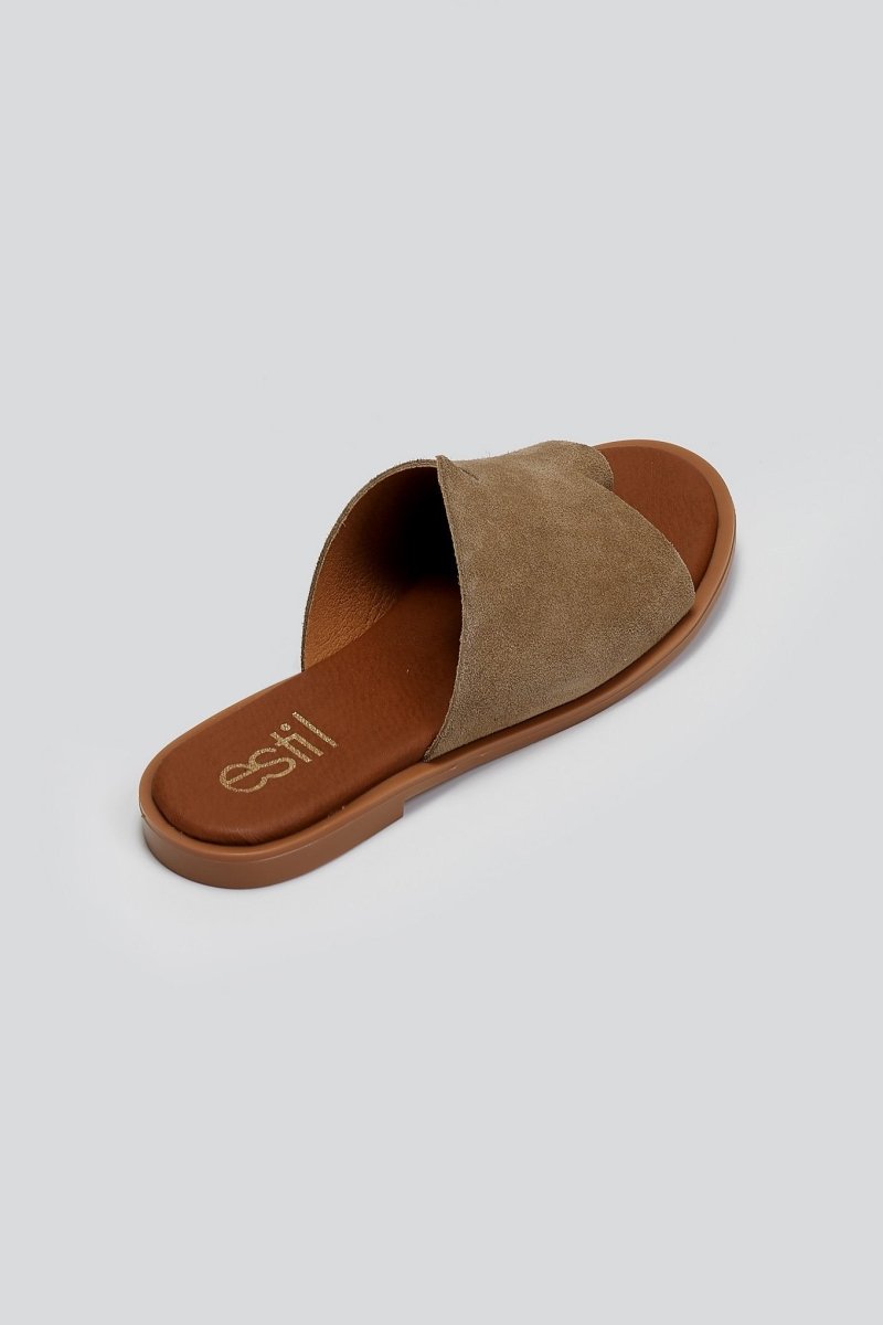 Σανδάλια από γνήσιο δέρμα καστόρι με ασύμμετρη φάσα Estil. Μαλακός πάτος με ενίσχυση. Ελληνικής κατασκευής.