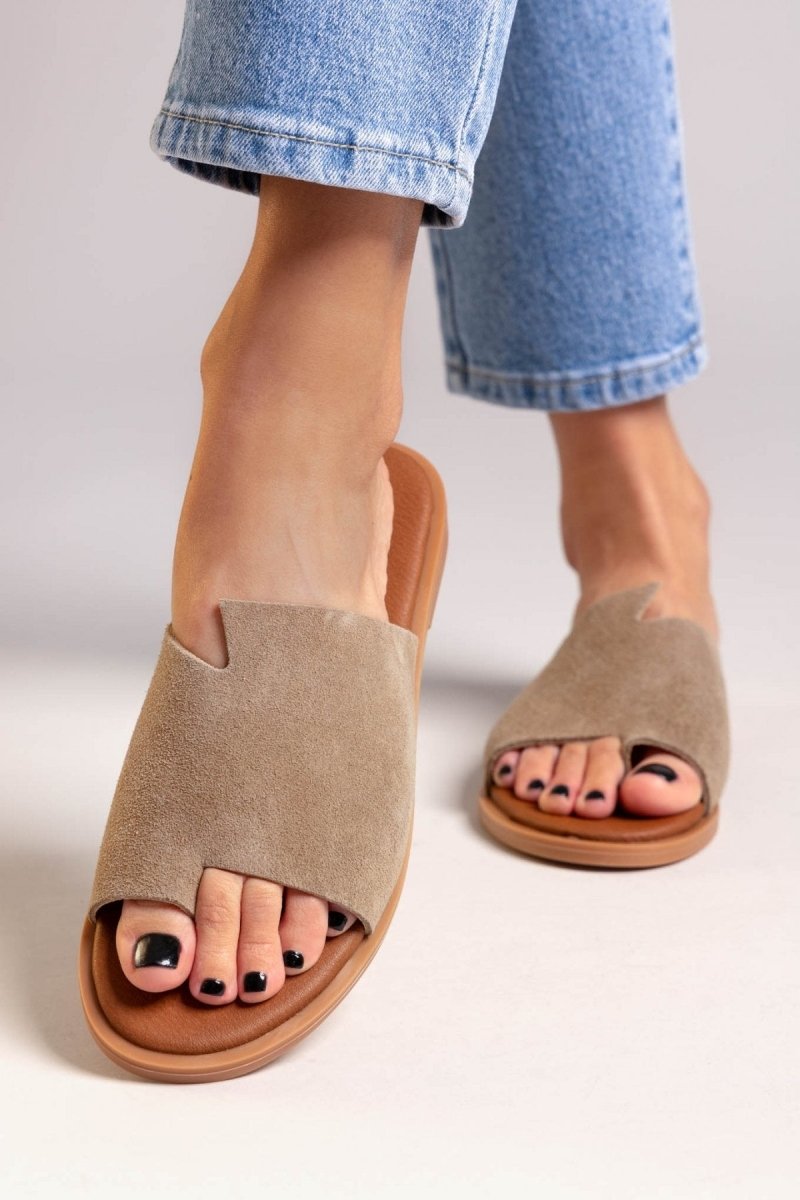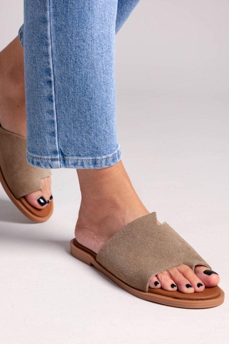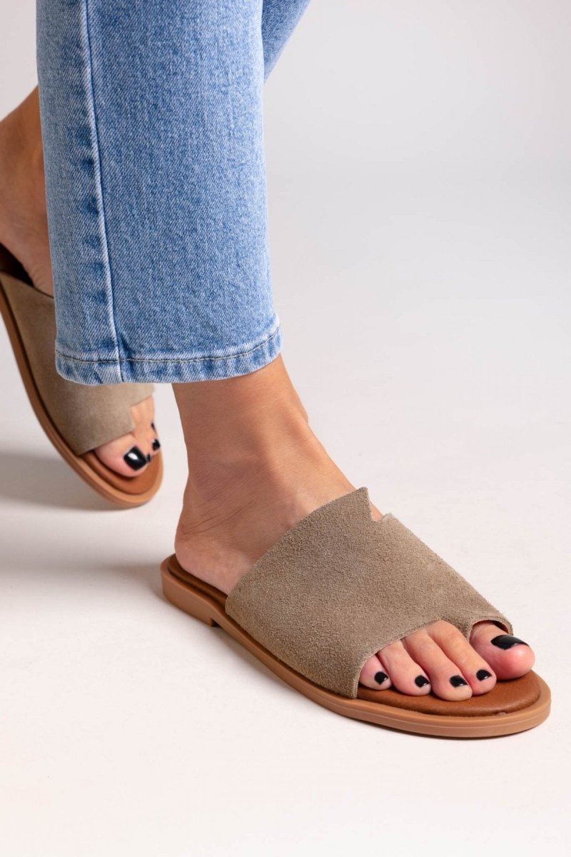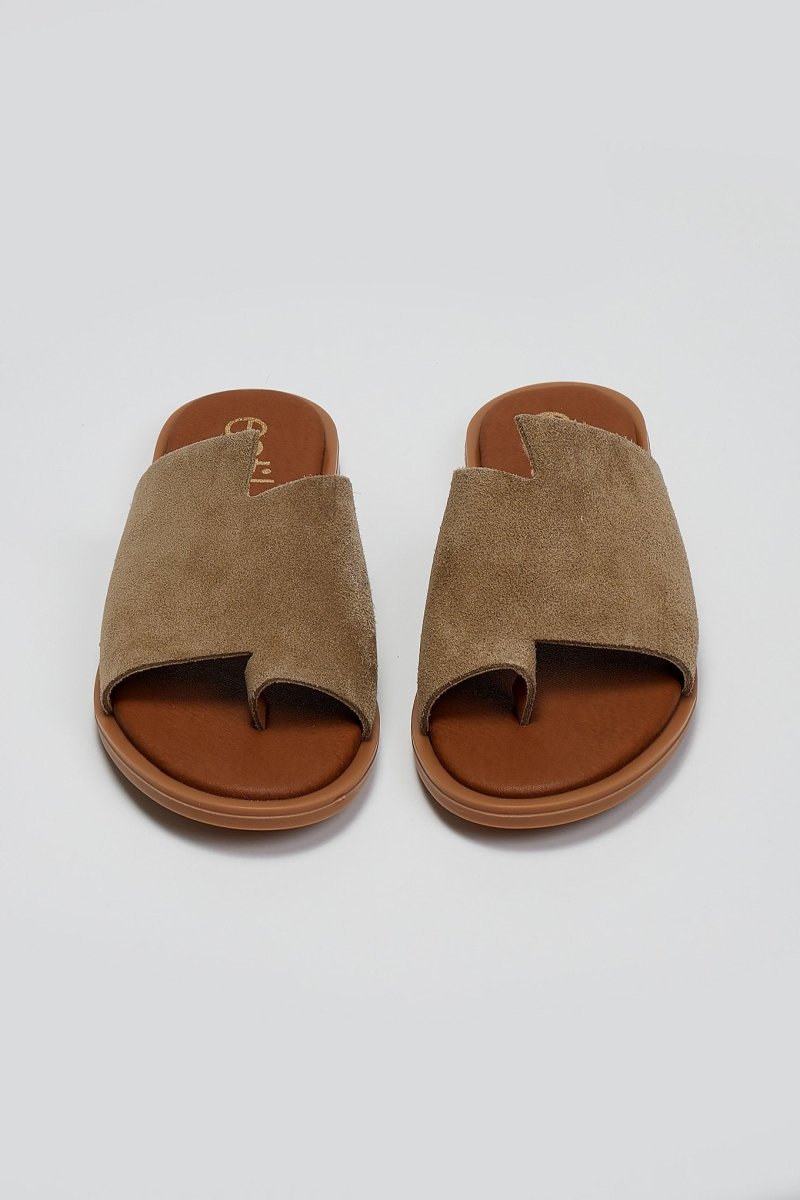 Σανδάλια από γνήσιο δέρμα καστόρι με ασύμμετρη φάσα Estil. Μαλακός πάτος με ενίσχυση. Ελληνικής κατασκευής.