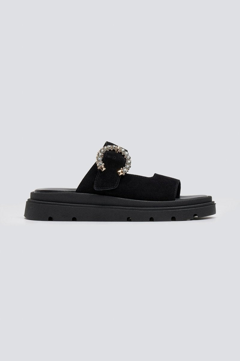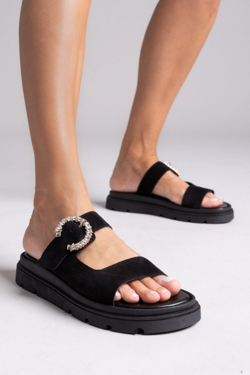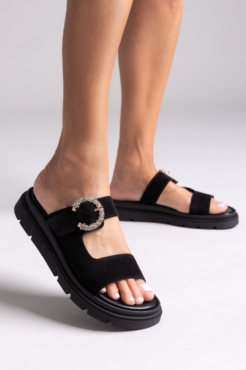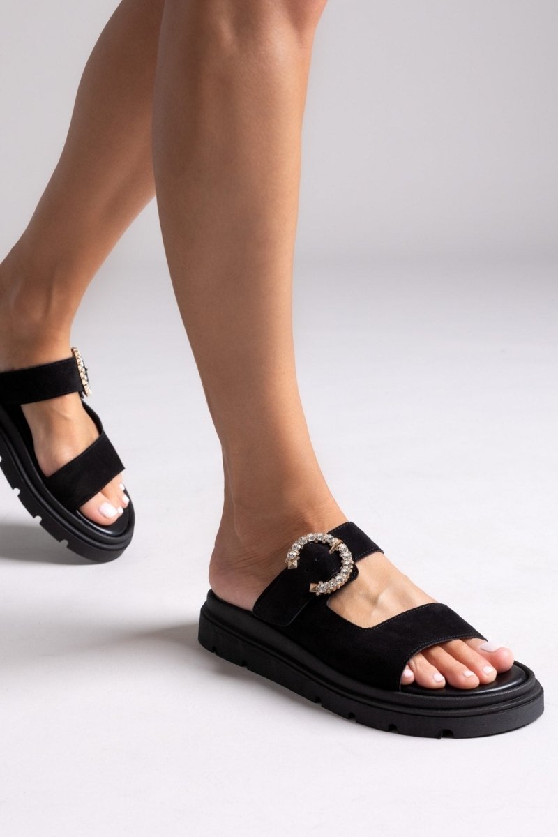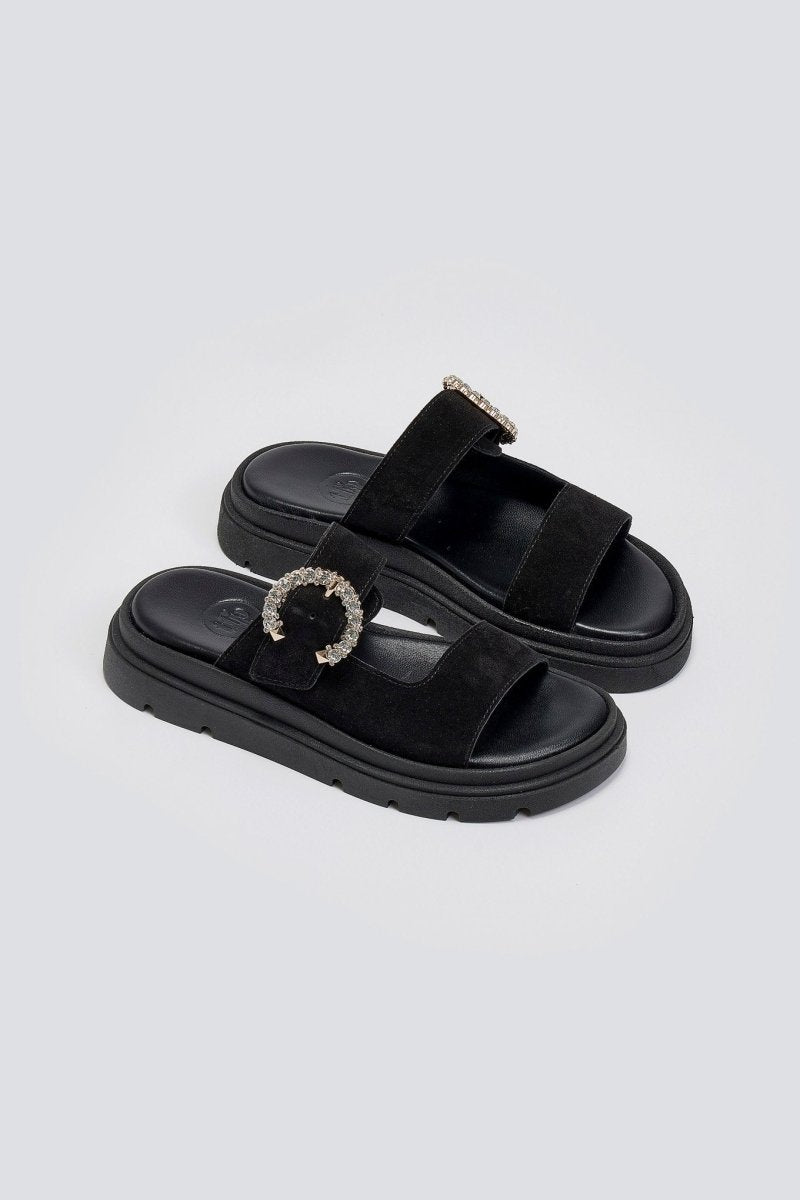 Σανδάλια καστόρινα με στρας τοκά Tfp - Μαύρο