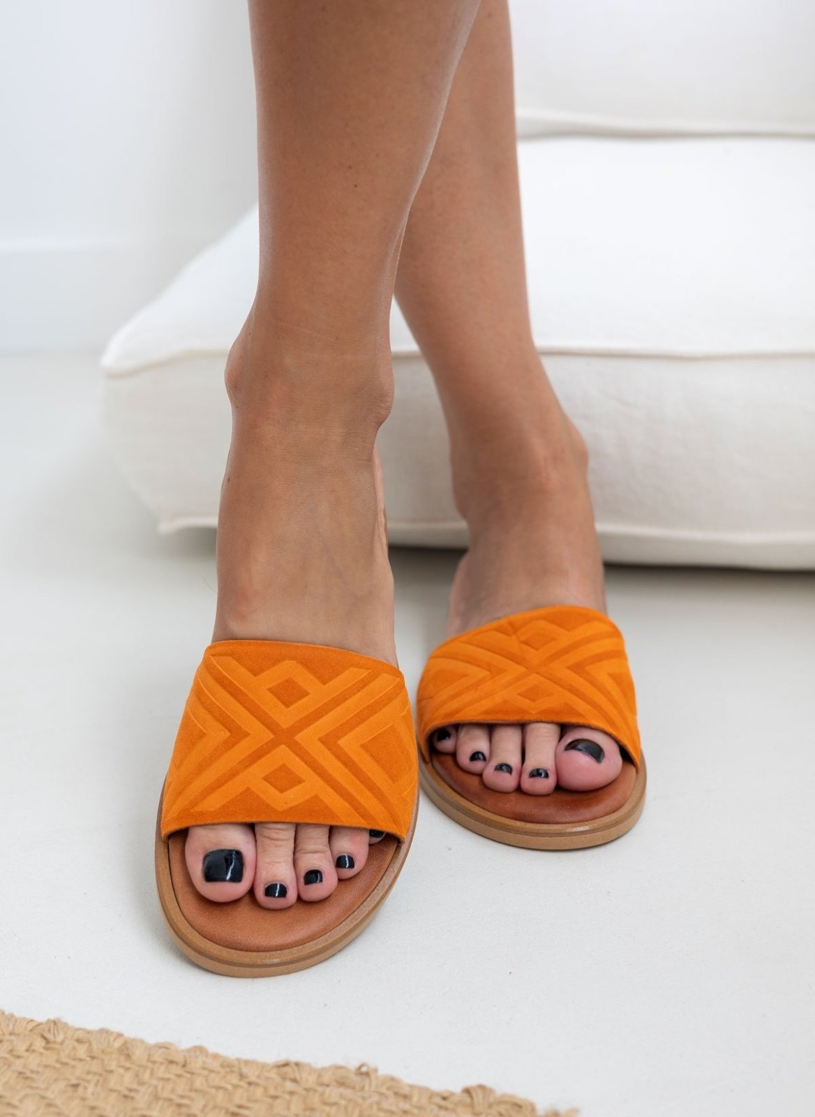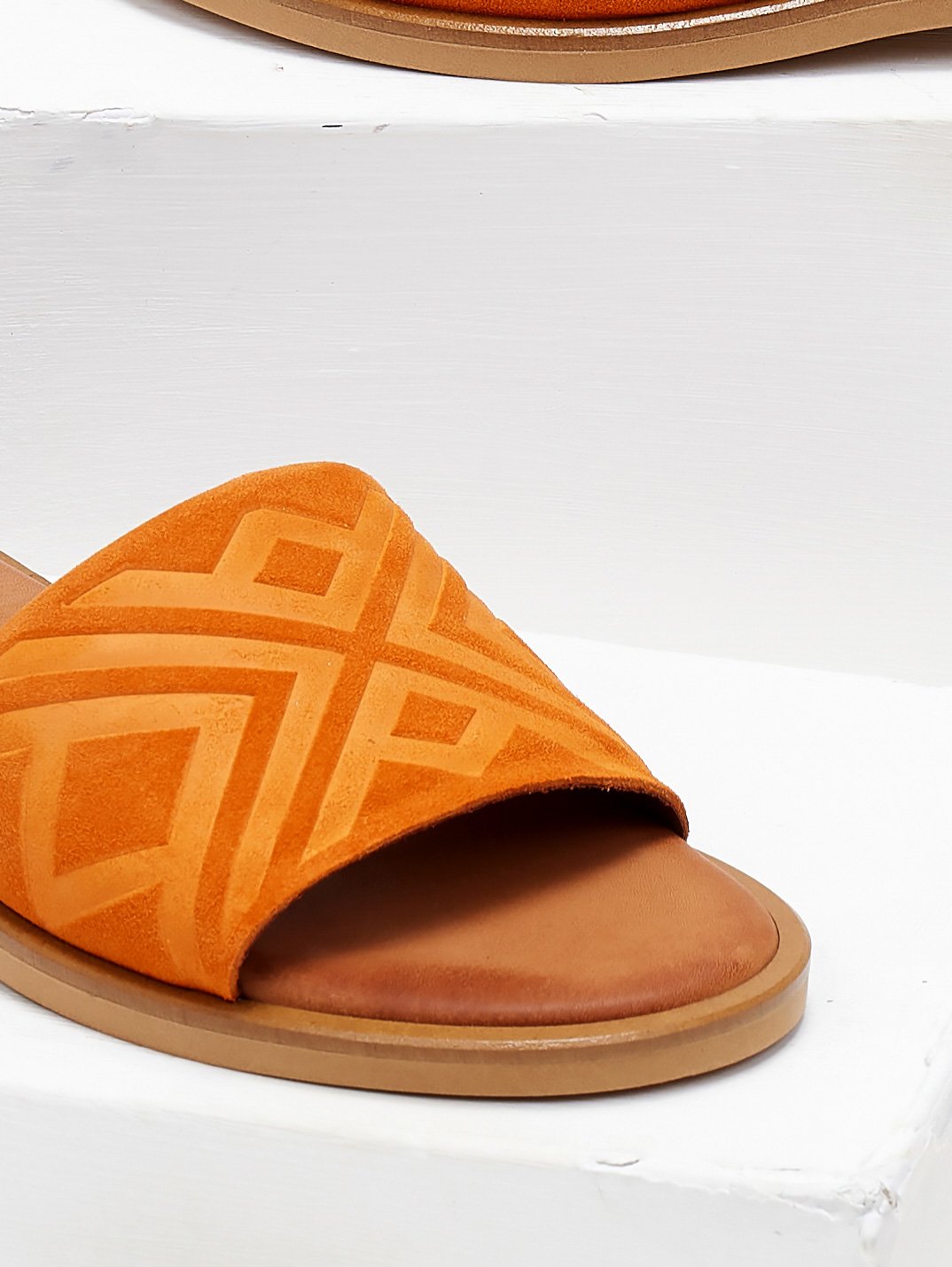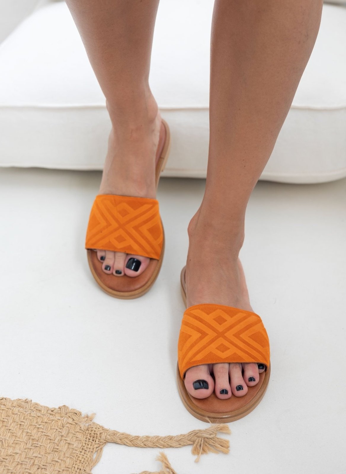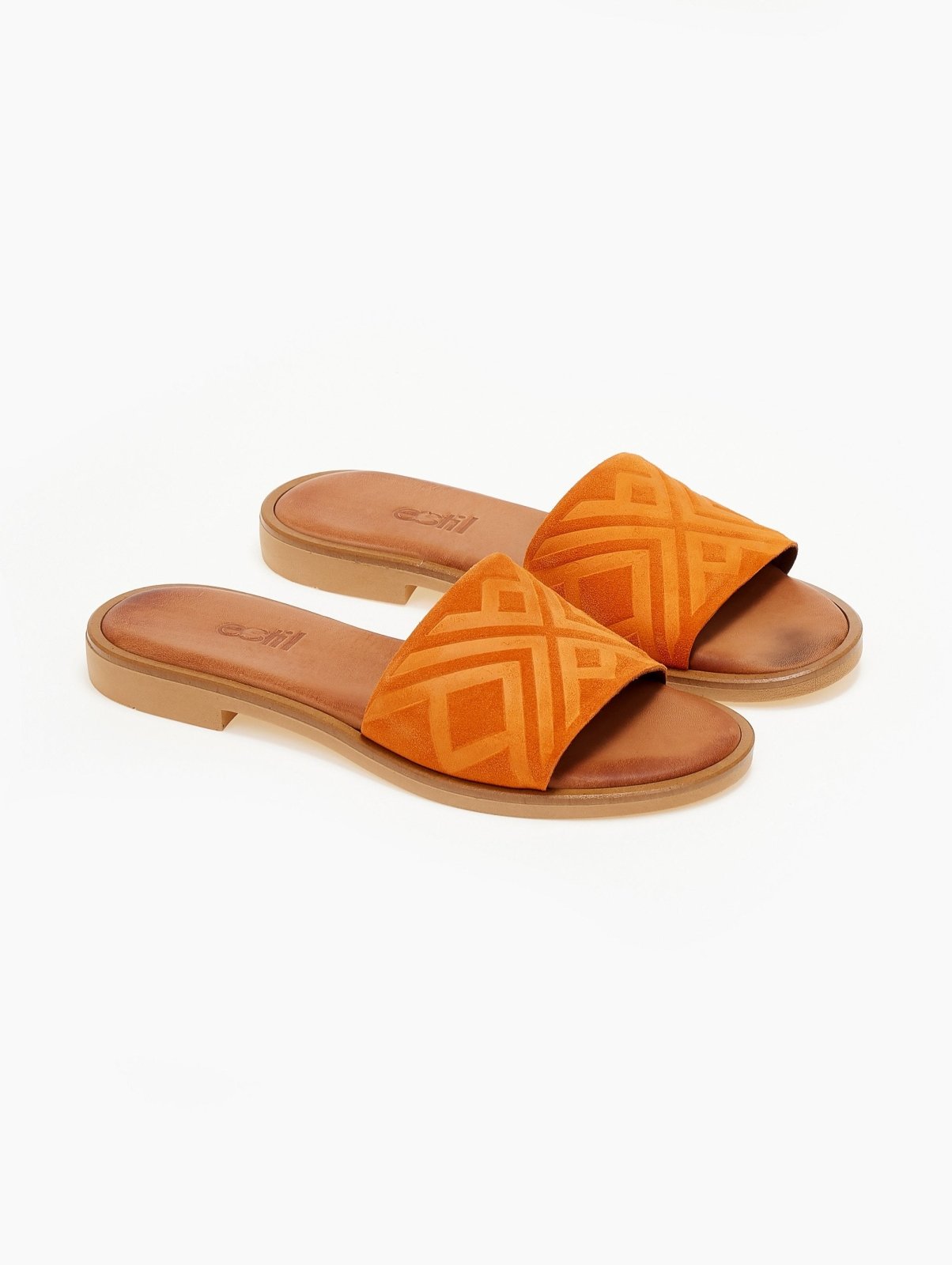 Σανδάλια καστόρινα φλατ estil. Έχουν ανάγλυφο σχέδιο στη φάσα. Μαλακός δερμάτινος πάτος. Στρογγυλή γραμμή. Ελληνικής κατασκευής.