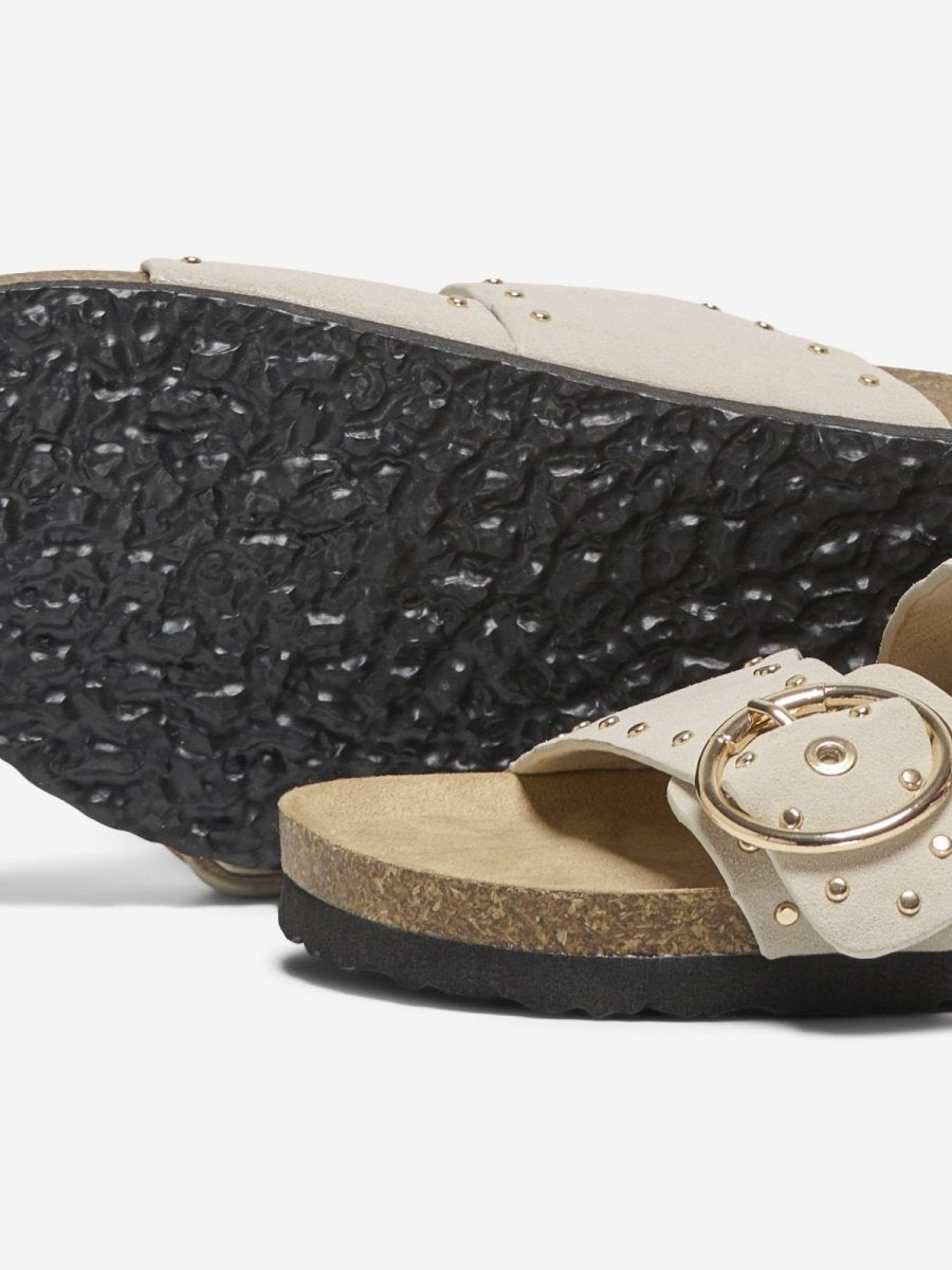 Σανδάλια suede με φαρδιές φάσες με τρουκς Only. Ανοιγόμενες φάσες με μεταλλικούς τοκάδες. Πάτος suede με ανατομικό σχήμα.
