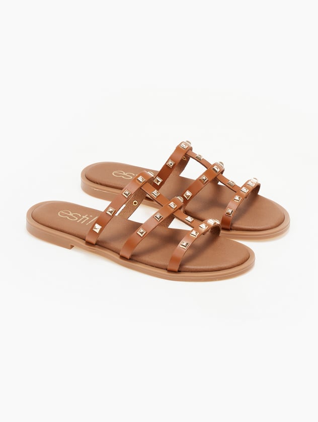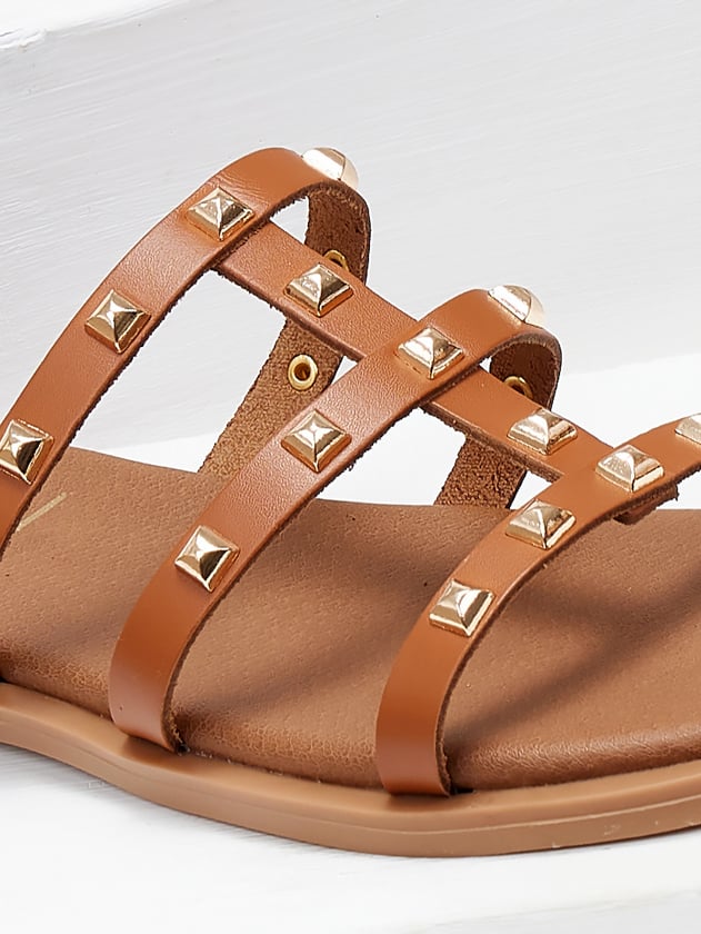 Sandals with metal studs. They feature a soft padded insole. Made in Greece.