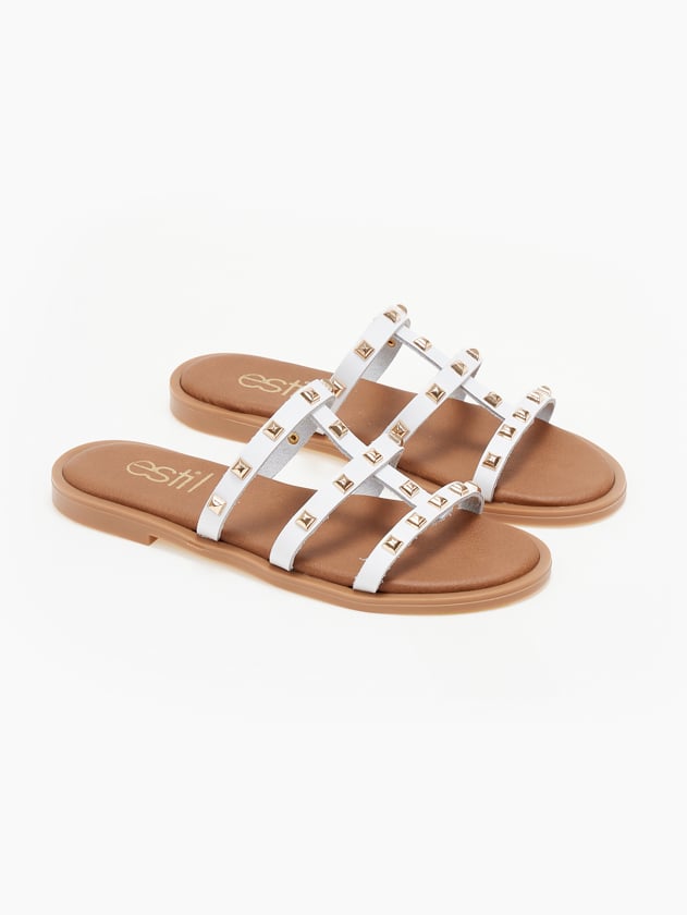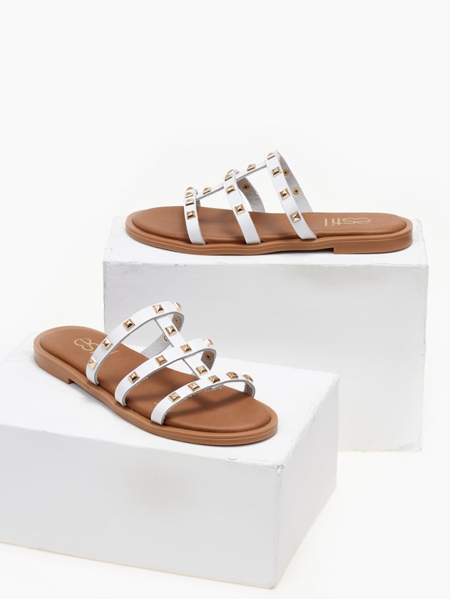Sandals with metal studs. They feature a soft padded insole. Made in Greece.