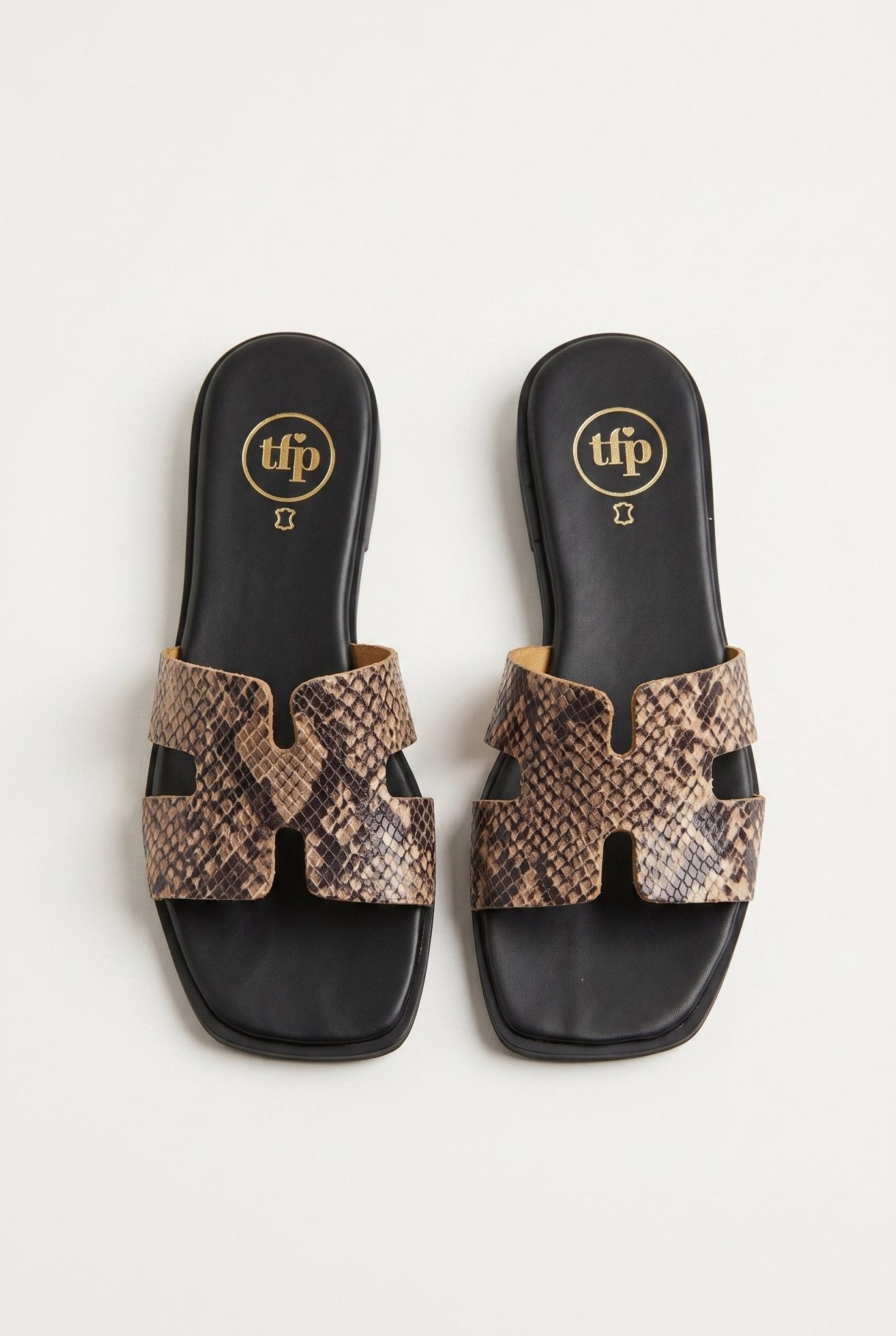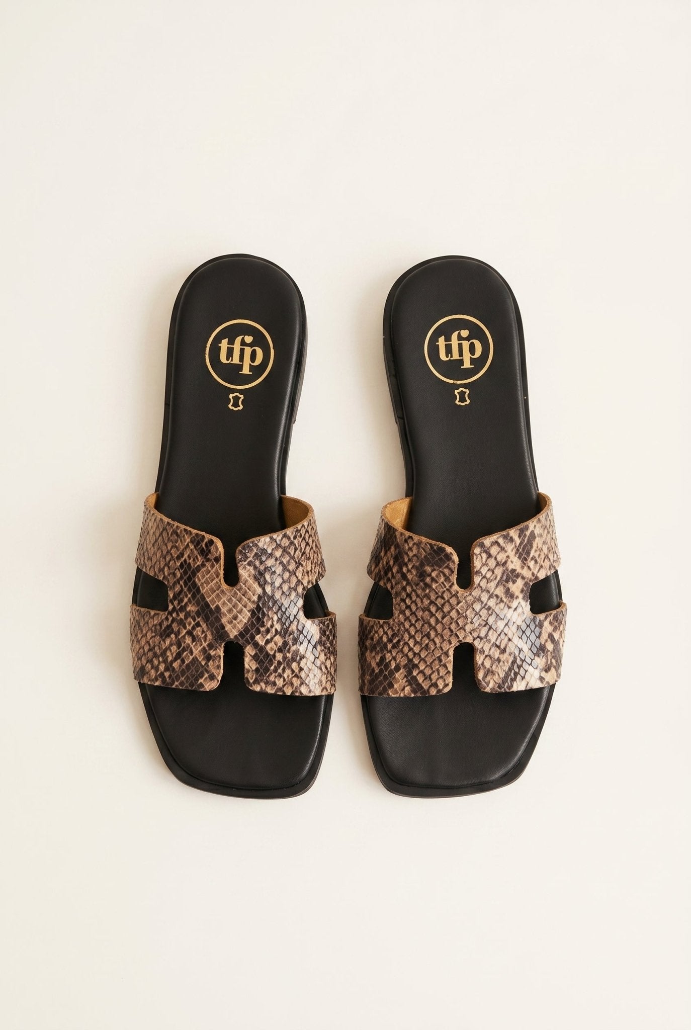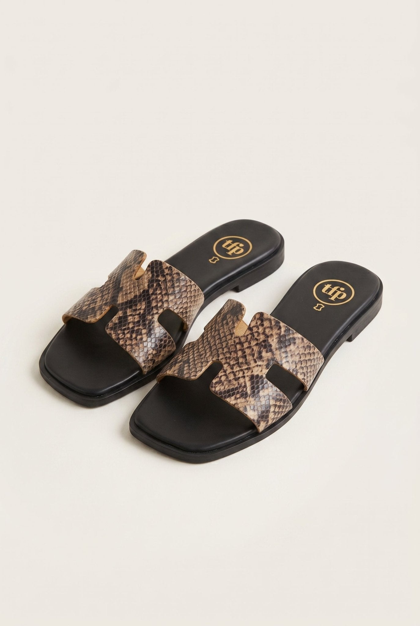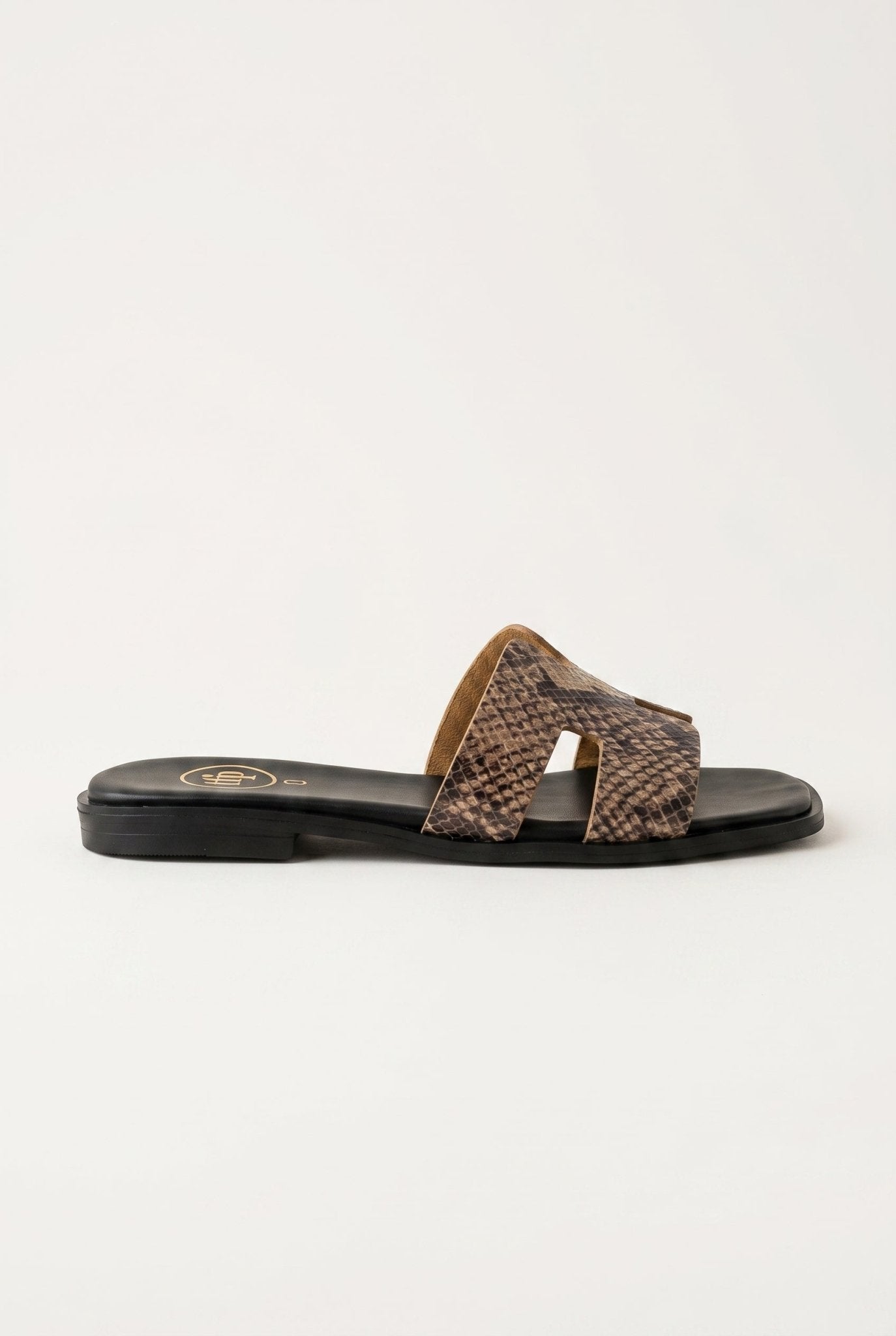 Sandals Wide Cut Out Strap - Beige Snake Print