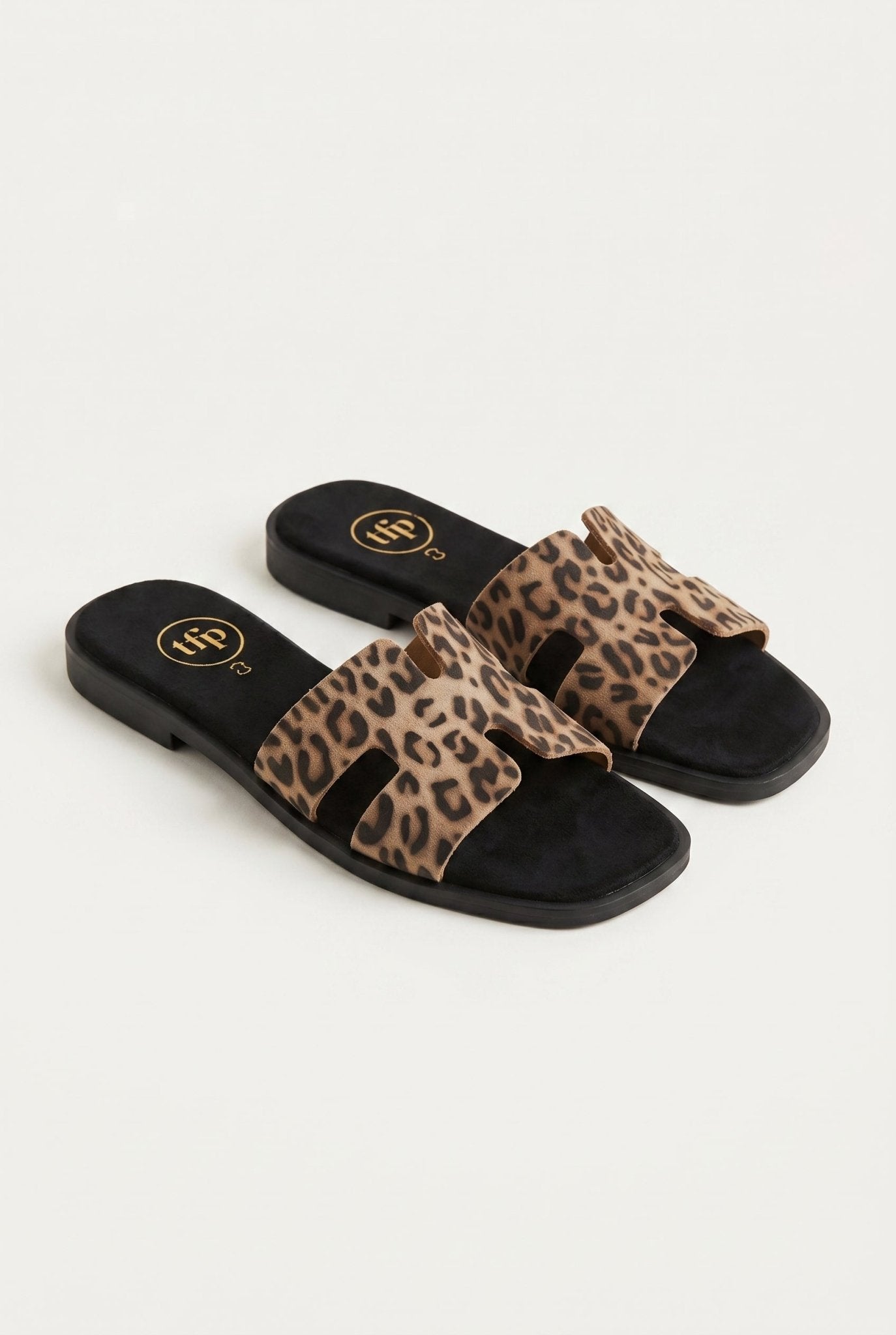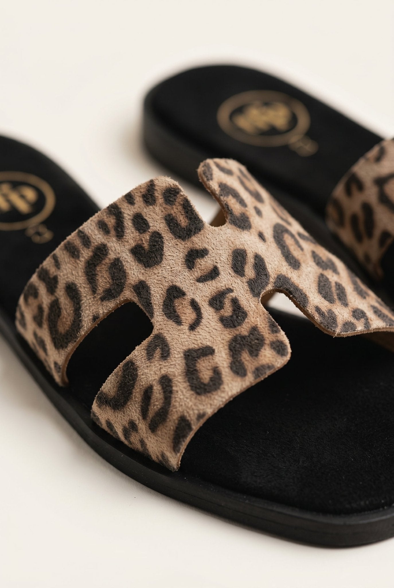 Sandals Wide Cut Out Strap - Leopard