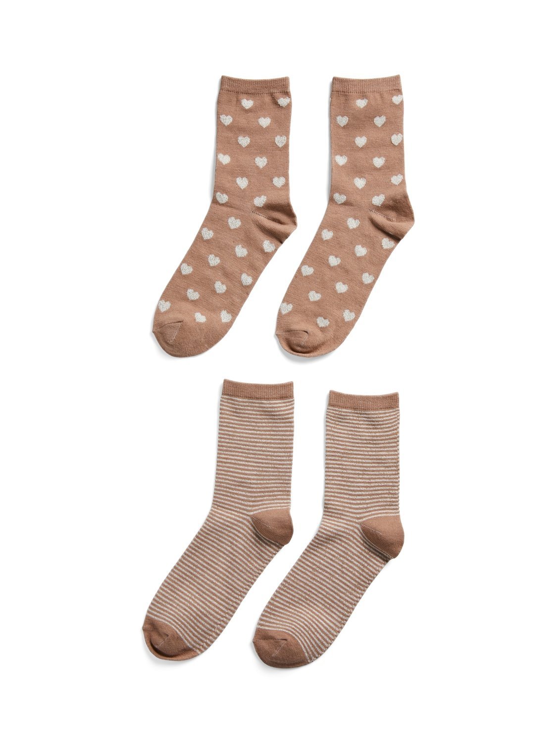 Σετ 2pack κάλτσες με glitter σχέδιο PIECES. Σχέδια με ρίγες και καρδιές.