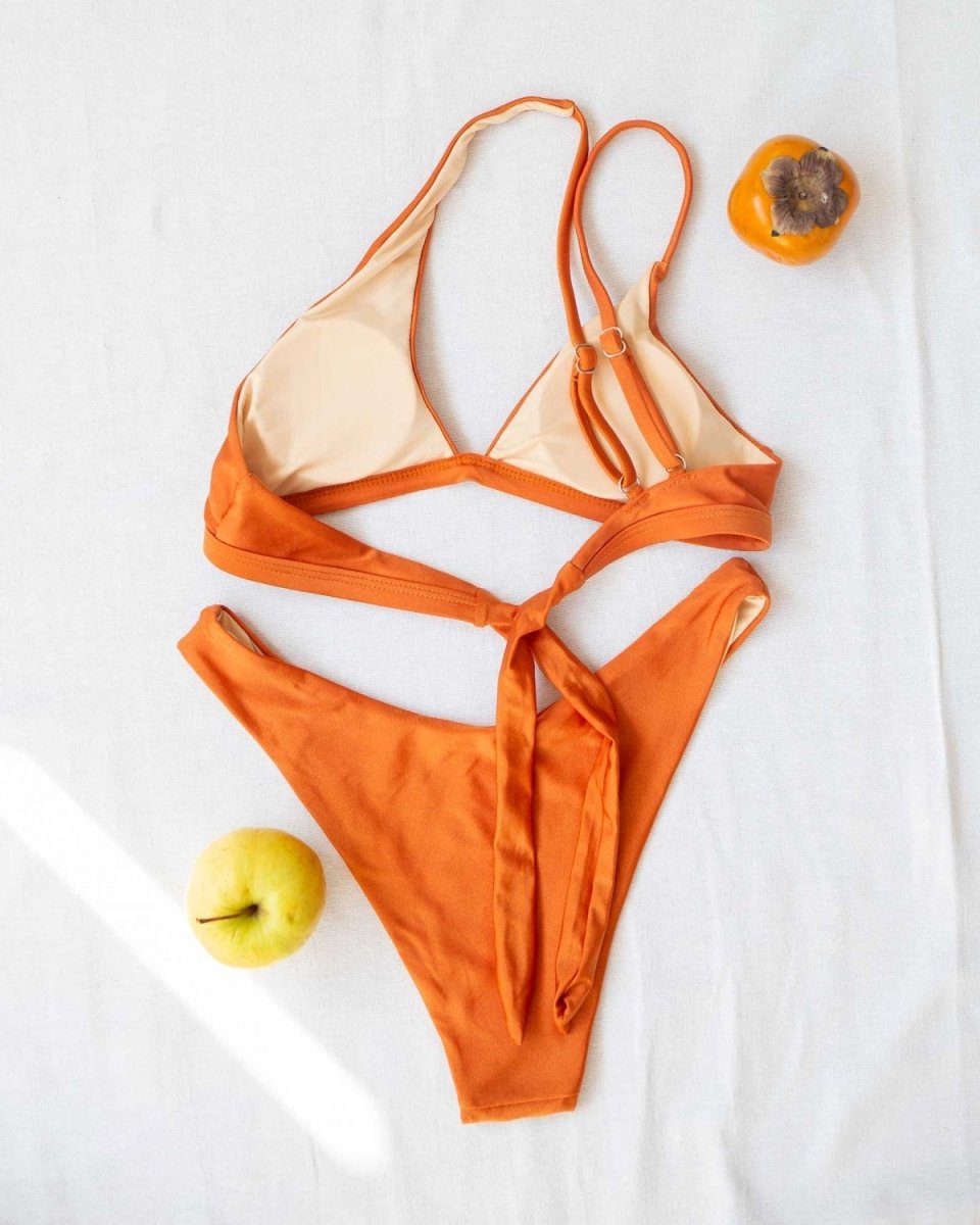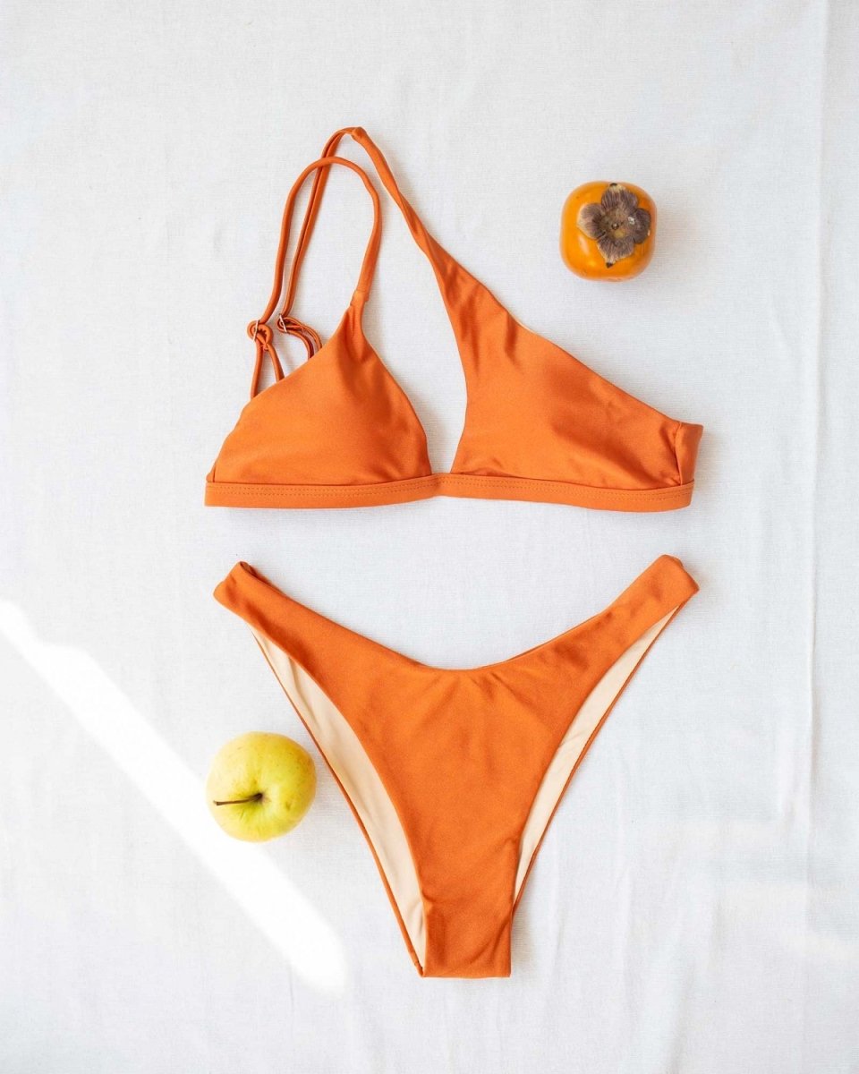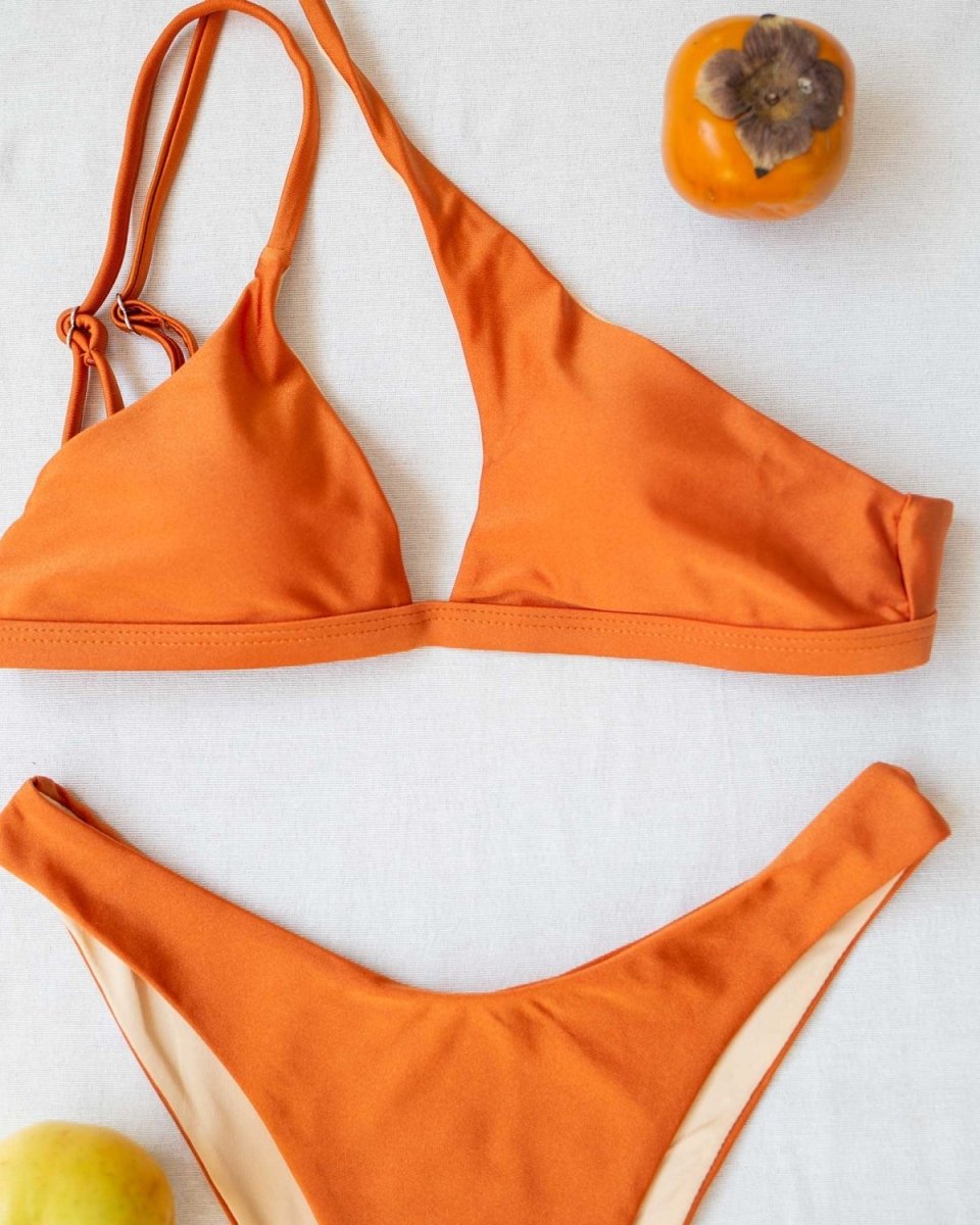 Σετ bikini με λοξό σχέδιο στον ώμο - Κανέλα