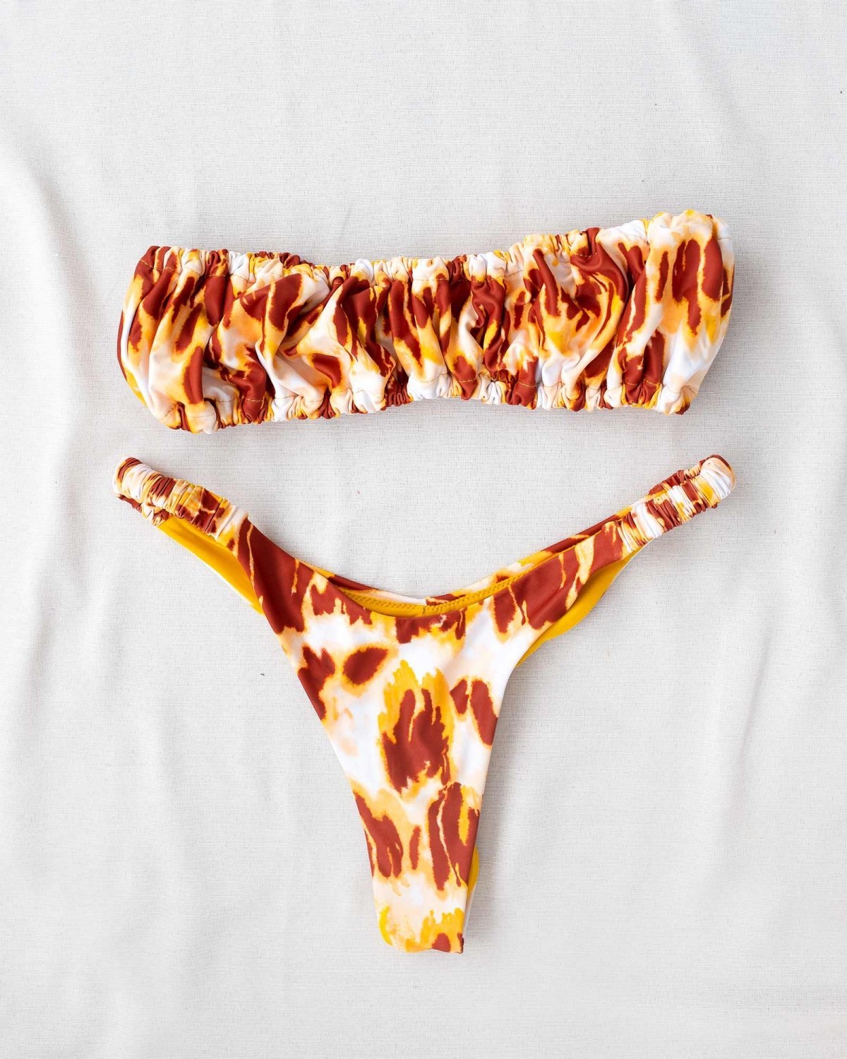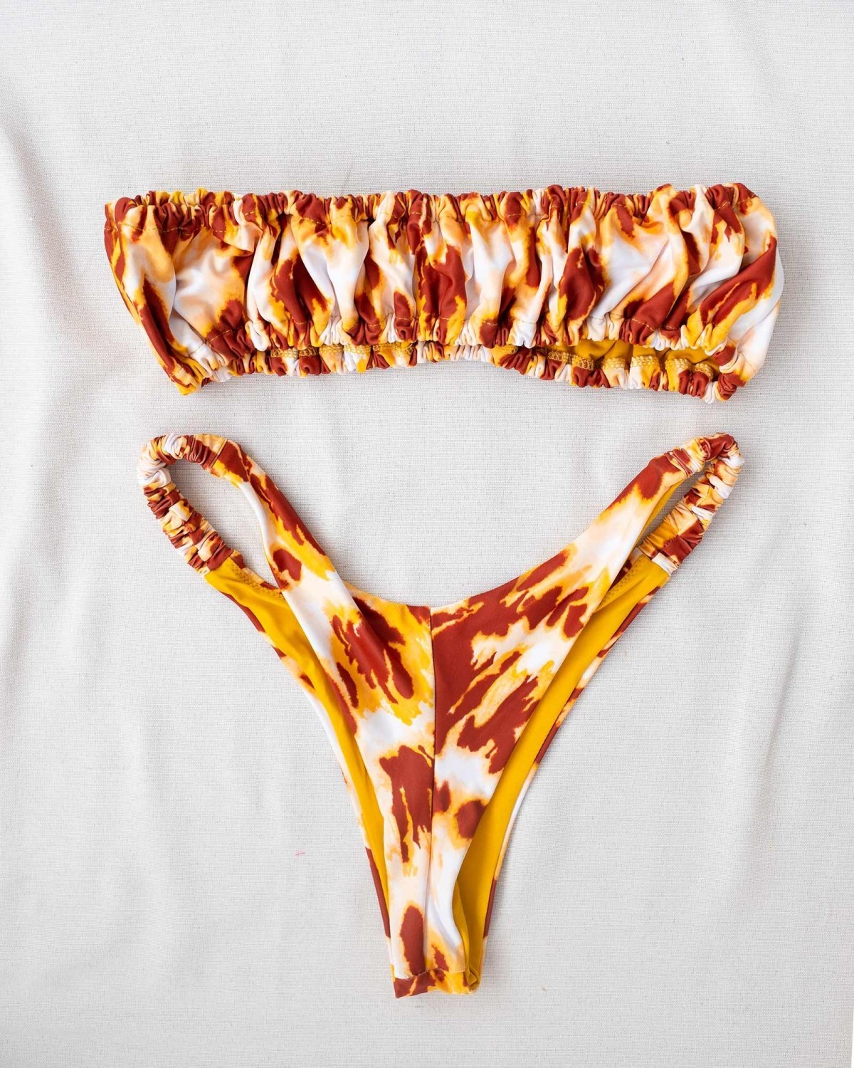 Σετ bikini με σούρες στο τοπ - Κίτρινο