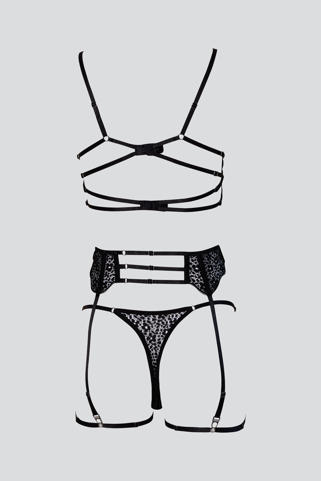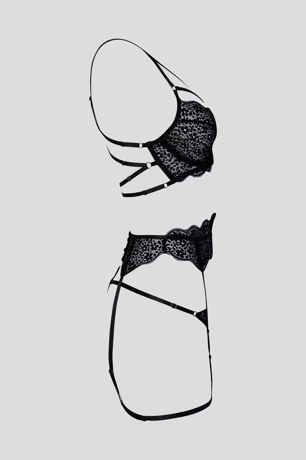 Σετ εσώρουχα με δαντέλα και ζαρτιέρες - Μαύρο