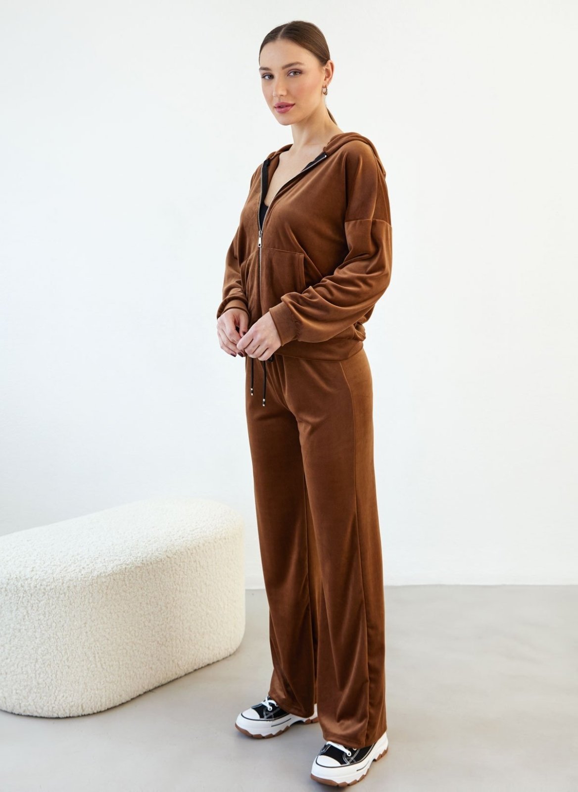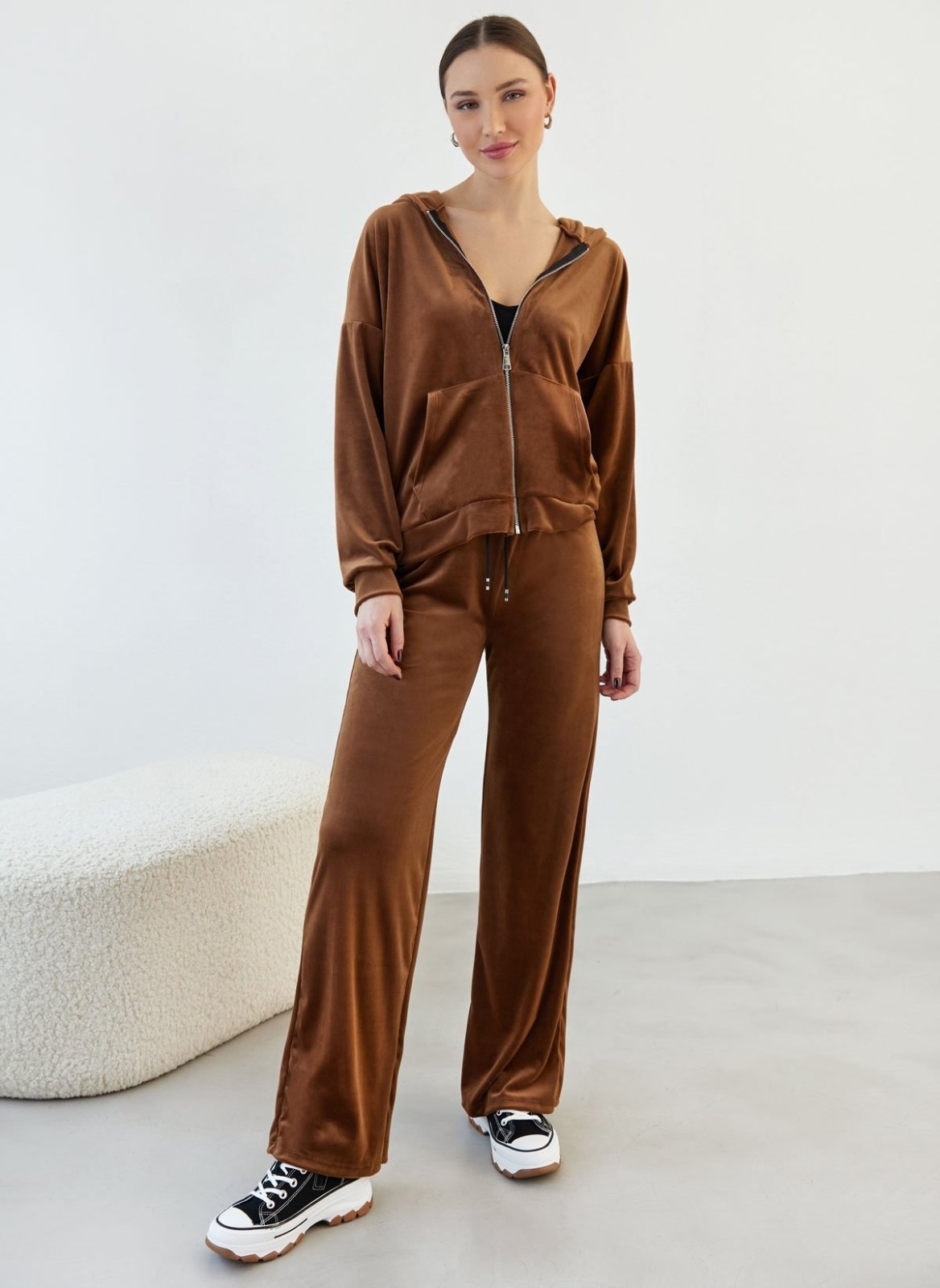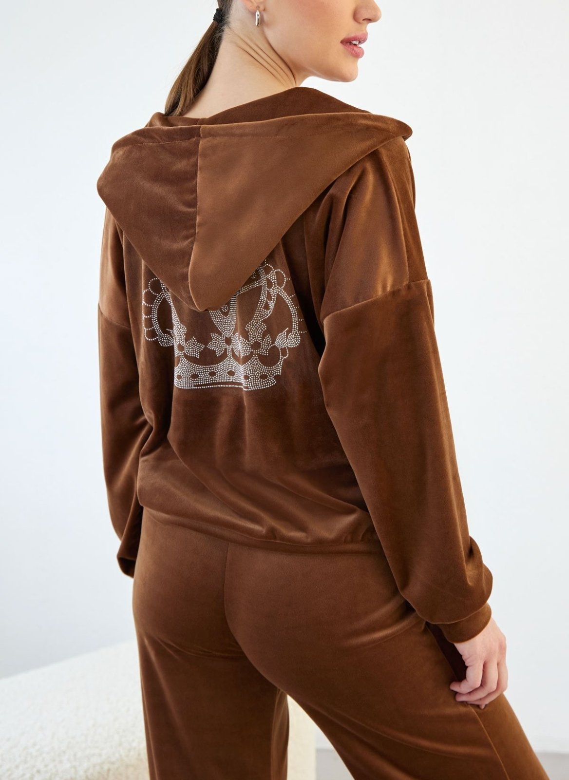 Σετ φόρμες βελουτέ με στρας - Καφέ
