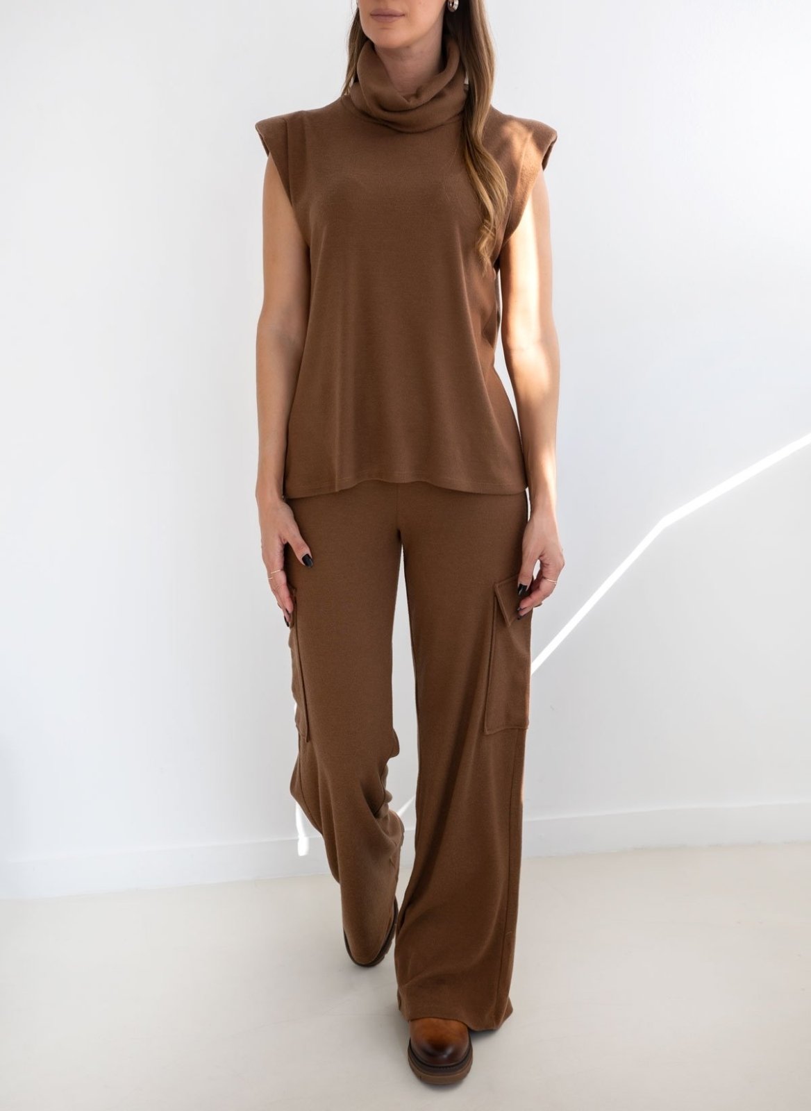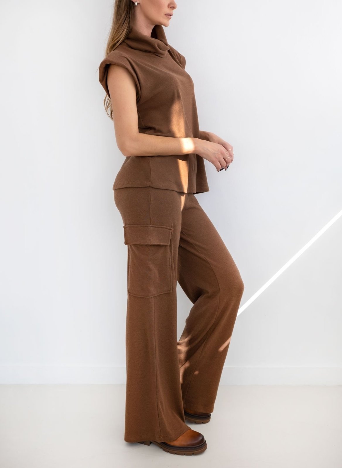 Σετ παντελόνι cargo με αμάνικο ζιβάγκο - Καφέ