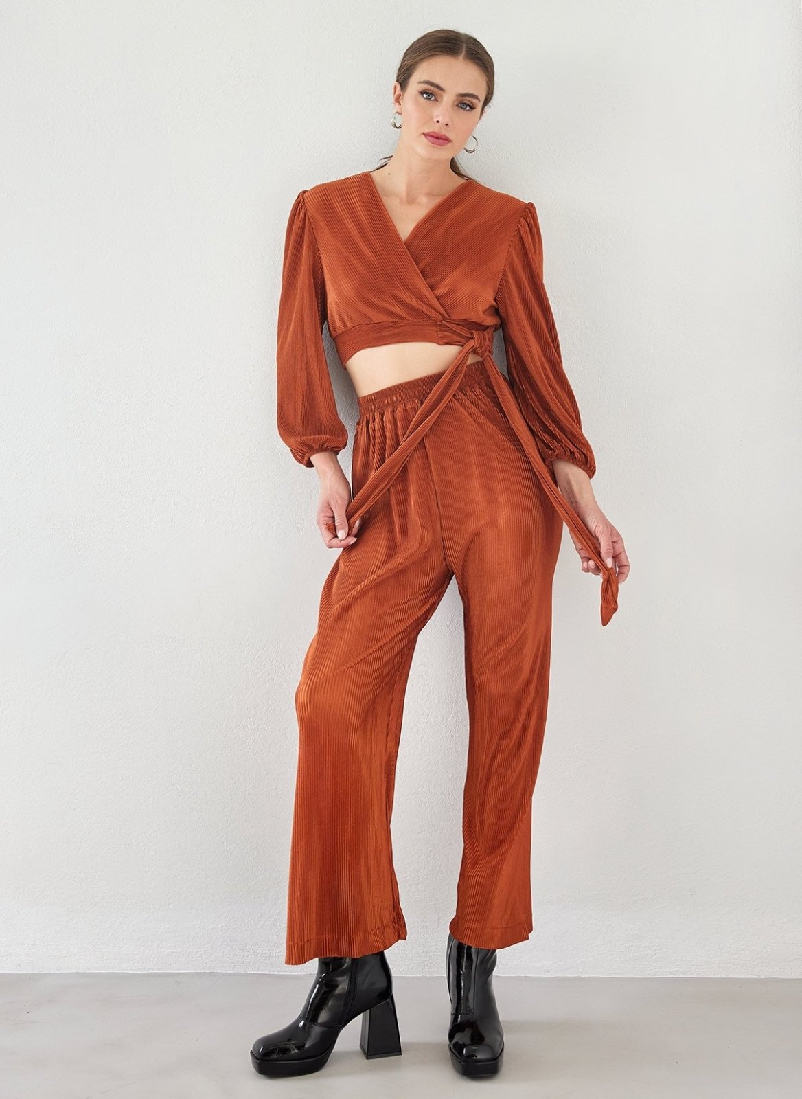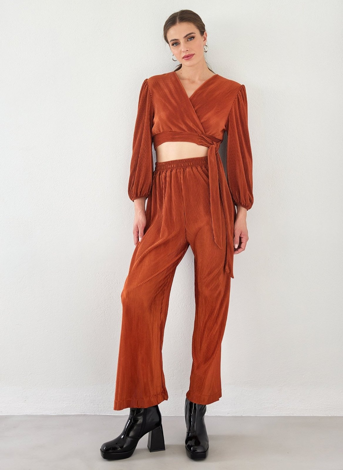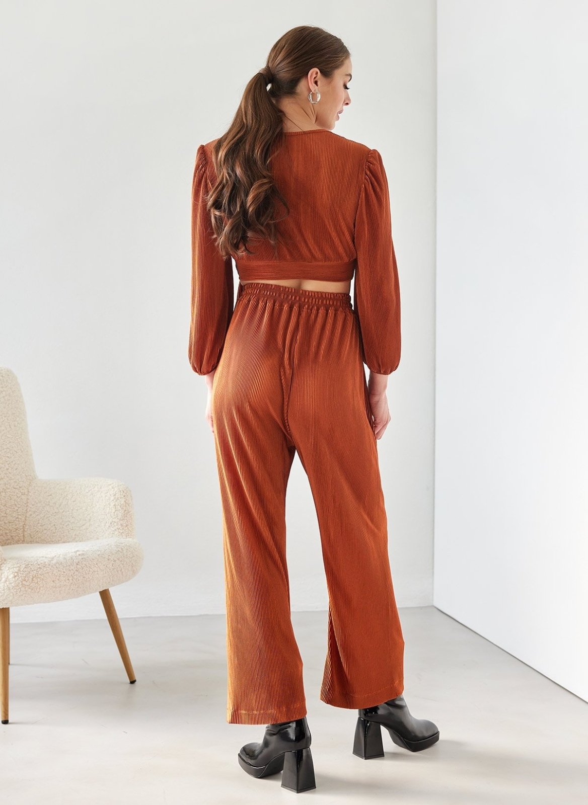 Σετ ρούχων γκοφρέ με κρουαζέ τοπ - Κεραμιδί