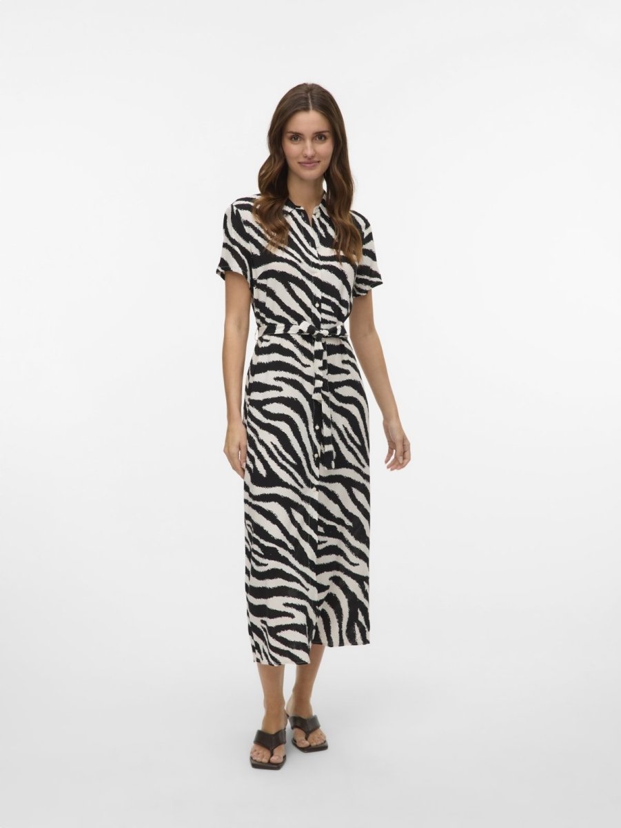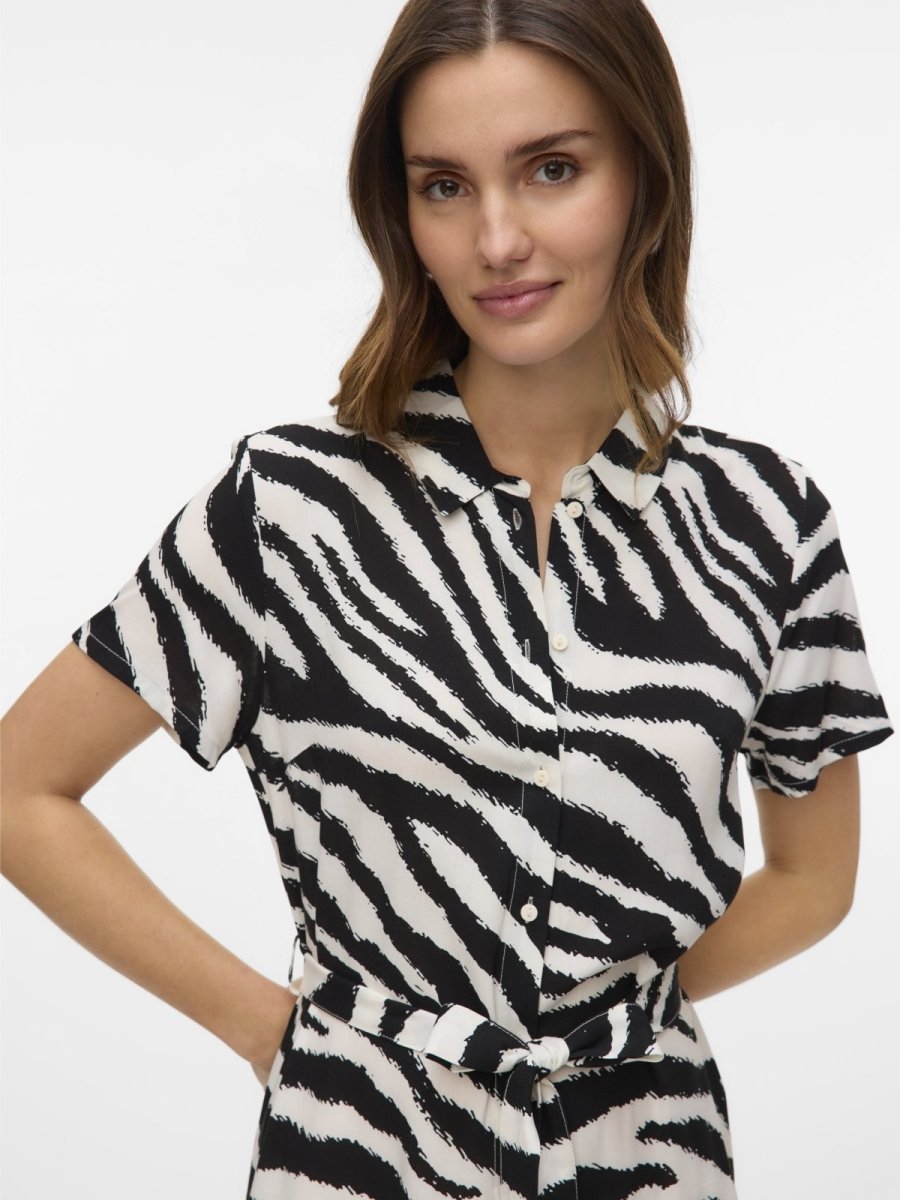Shirt dress με animal print Vero Moda. Περιλαμβάνεται δετή υφασμάτινη ζώνη στο ίδιο χρώμα. Λεπτός γιακάς. Κλείσιμο με κουμπιά.