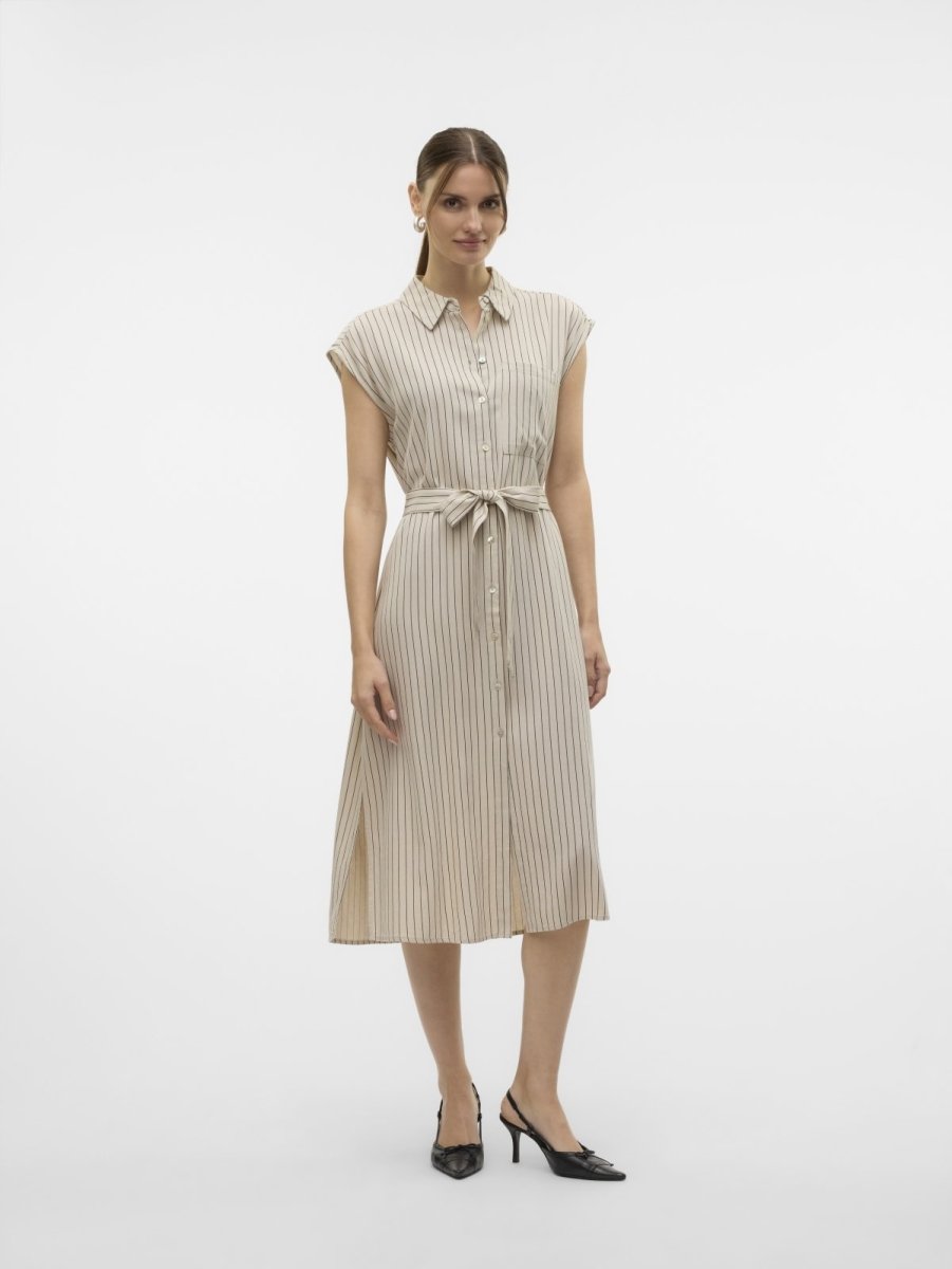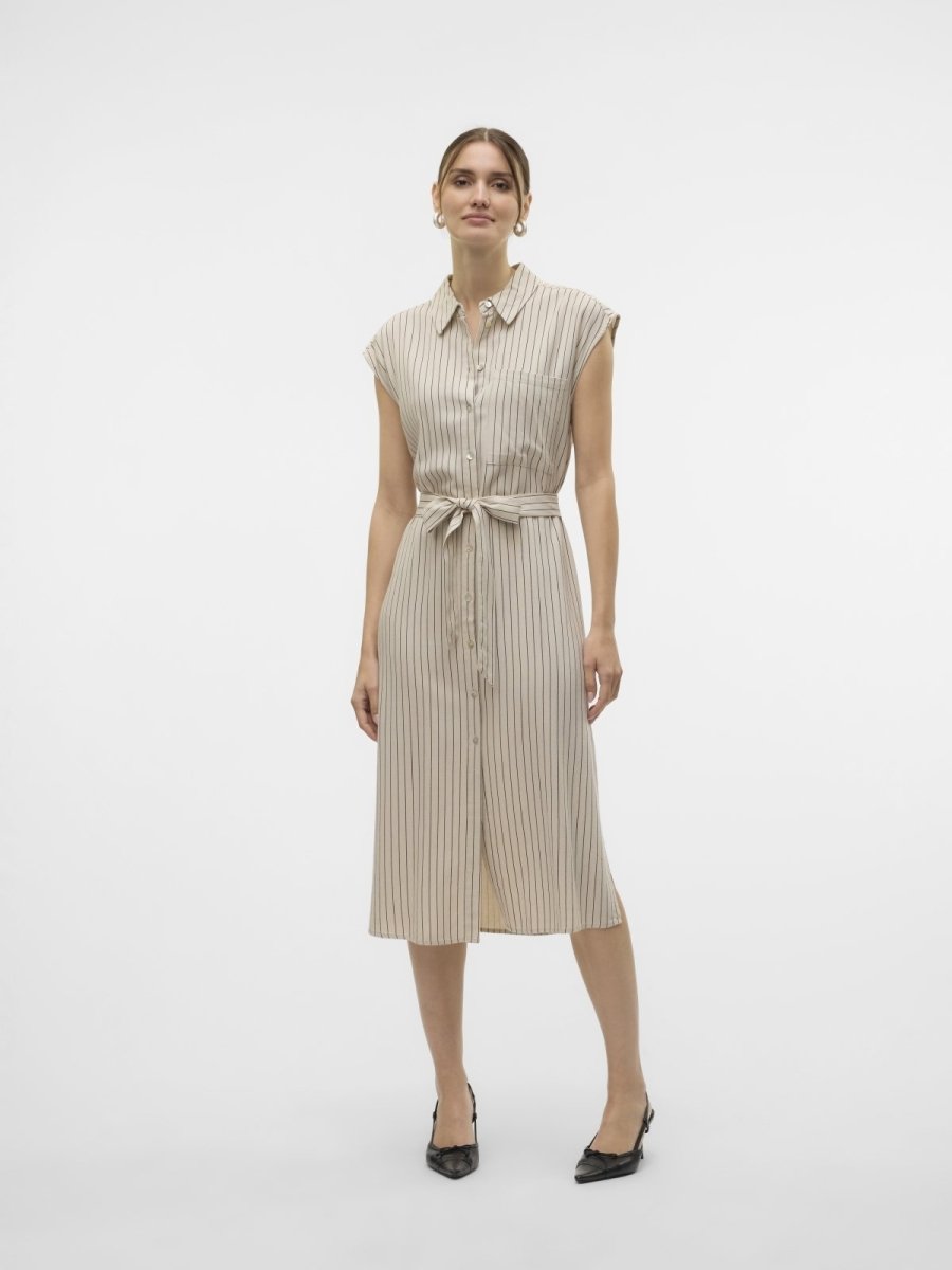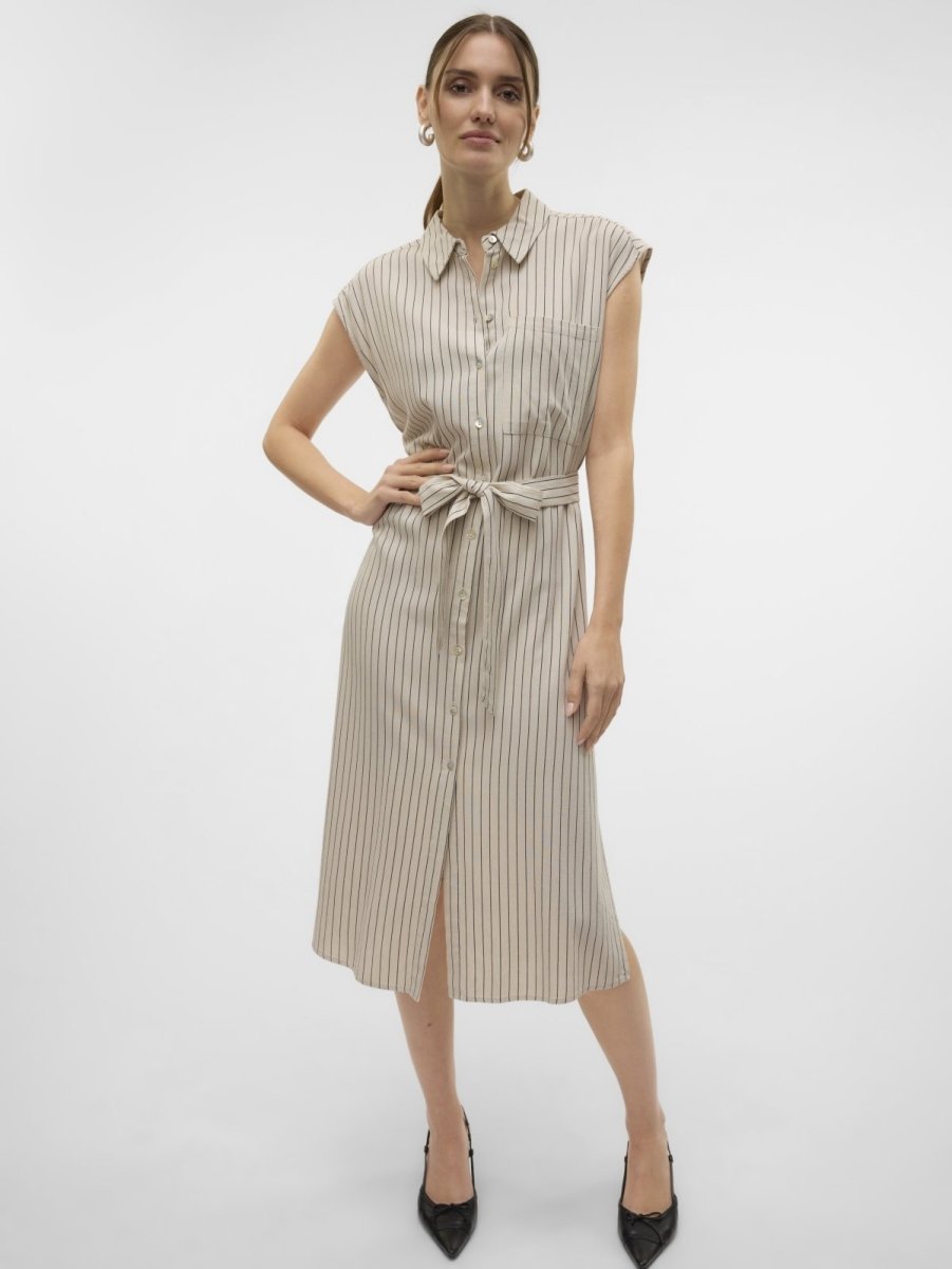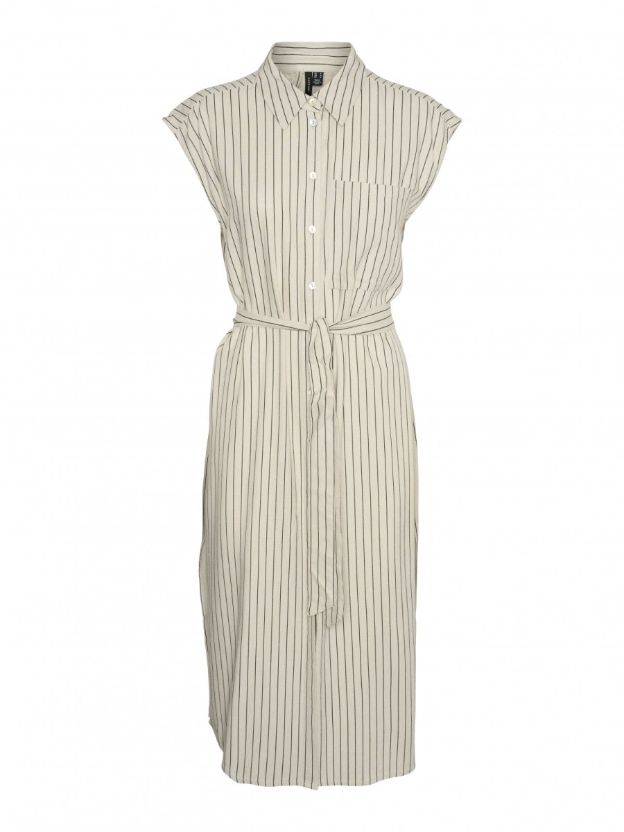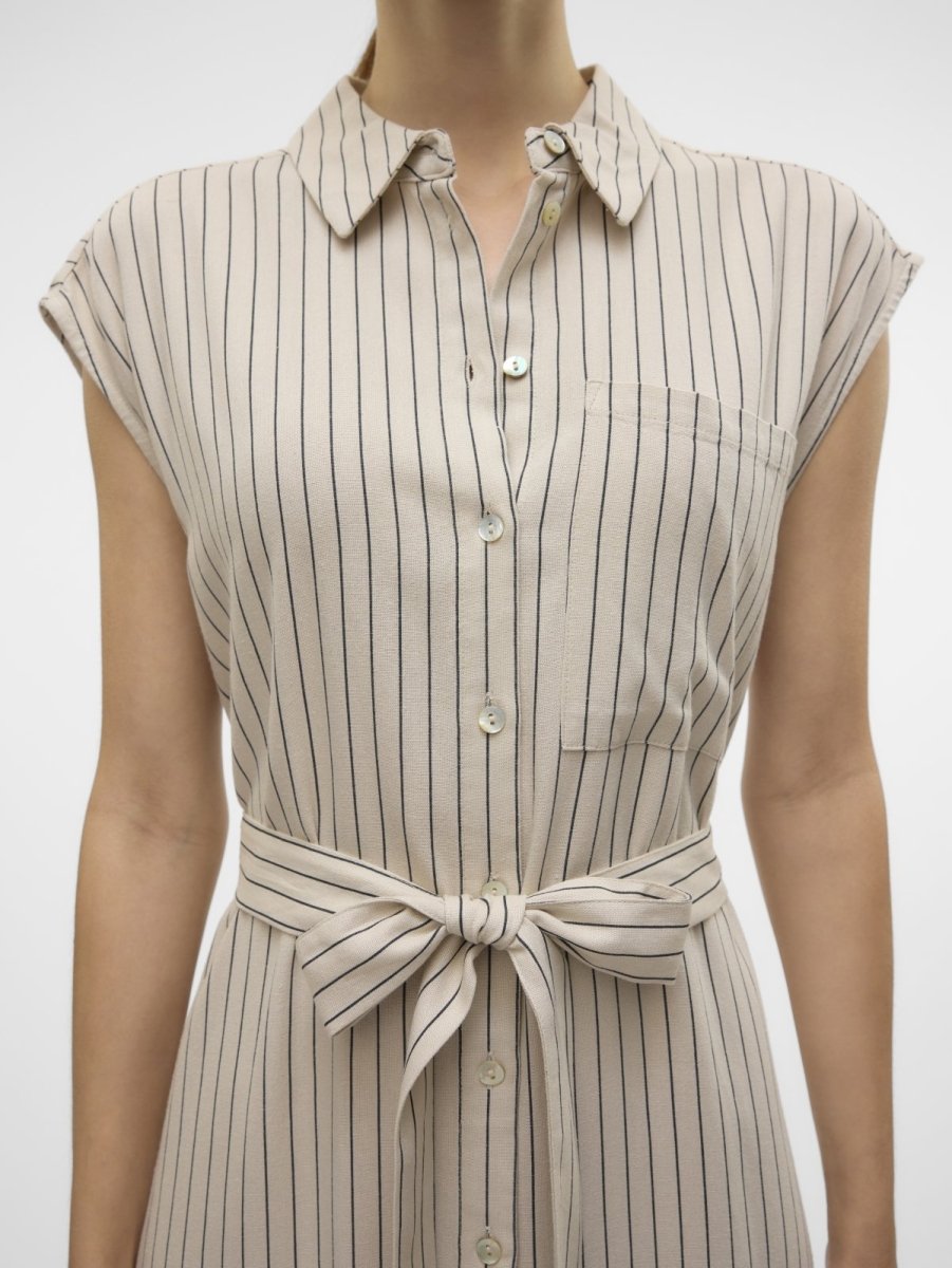 Shirt dress ριγέ αμάνικο με λινό Vero Moda 10282532 - Μπεζ/Μαύρο