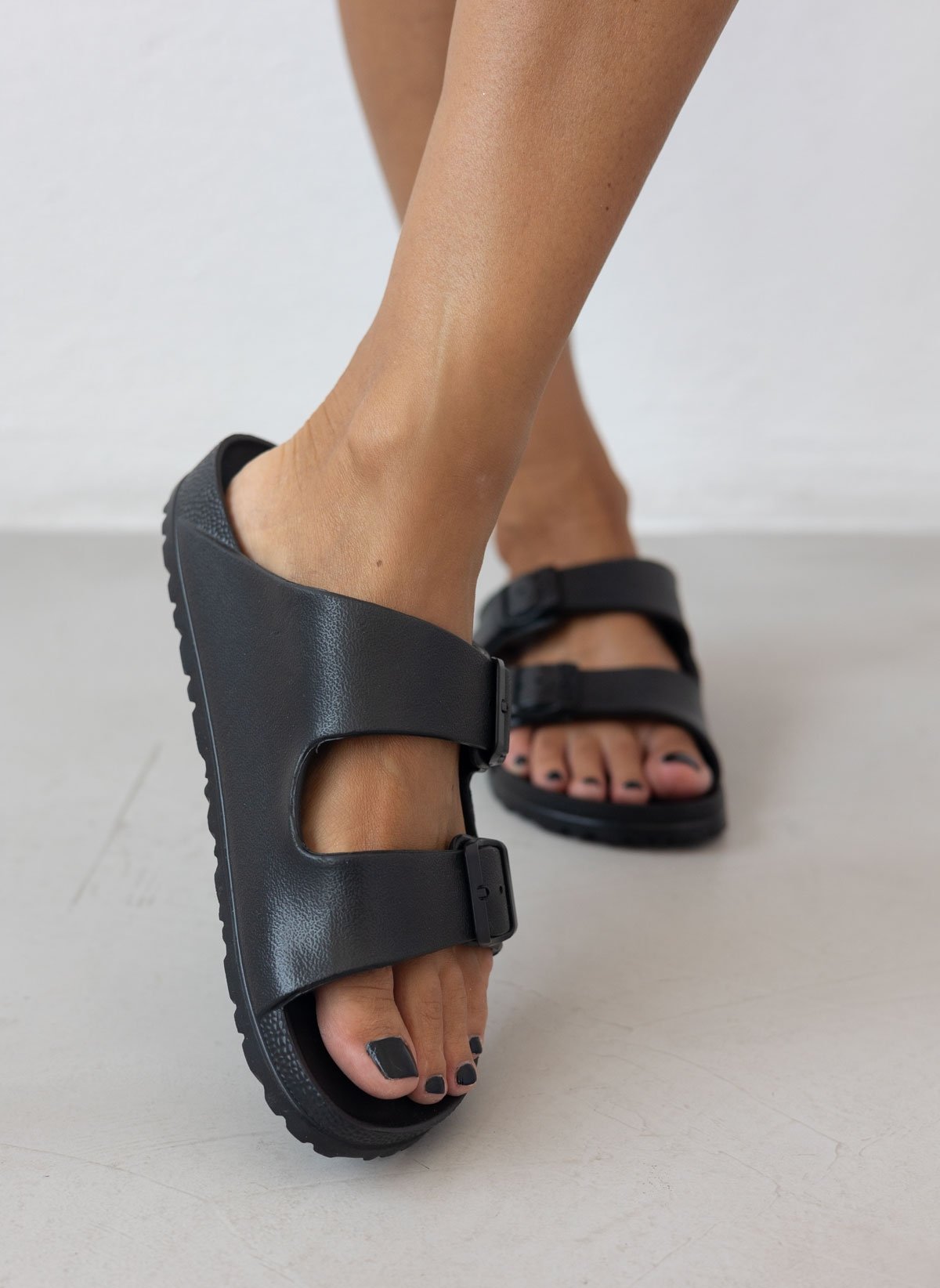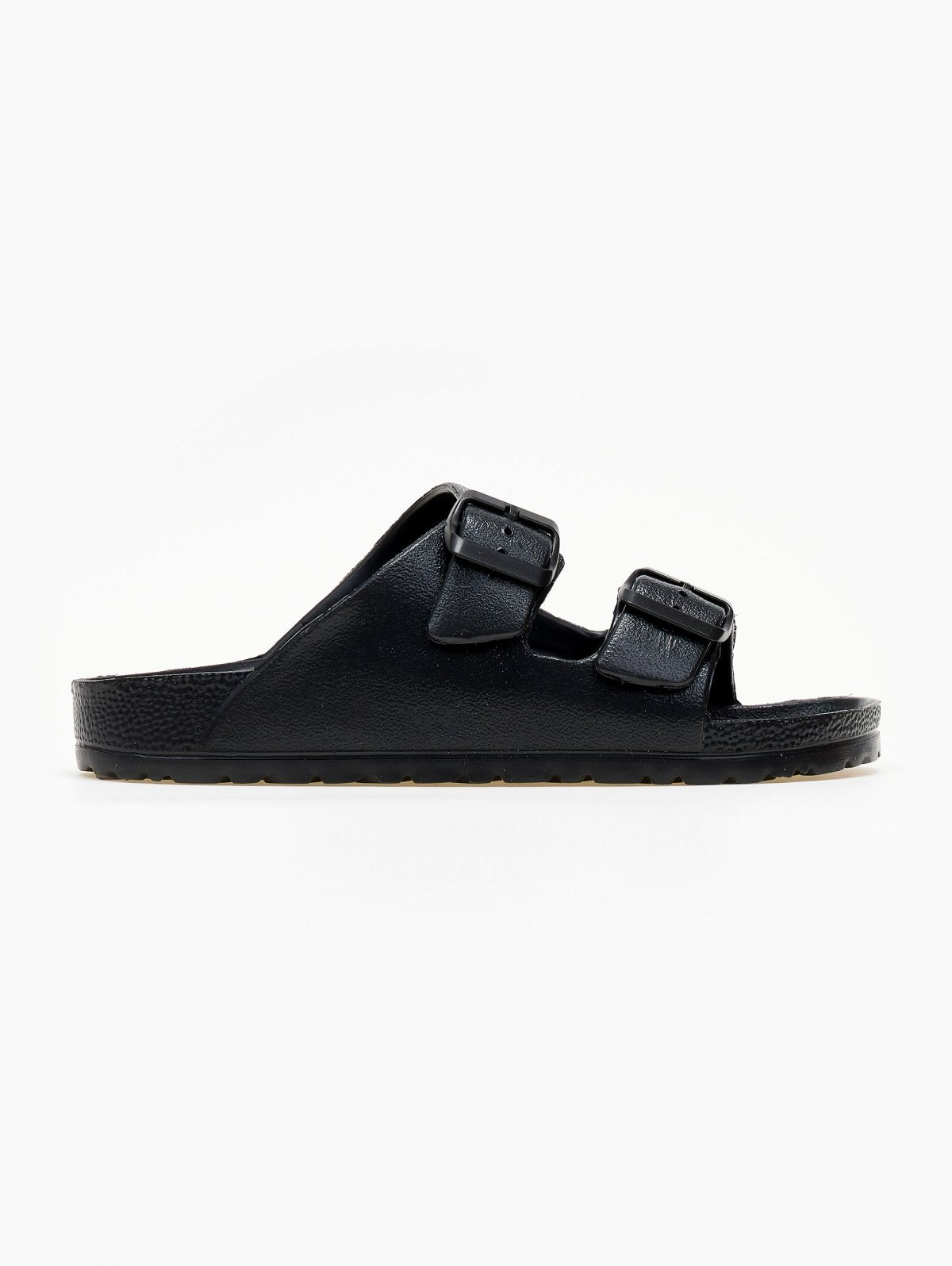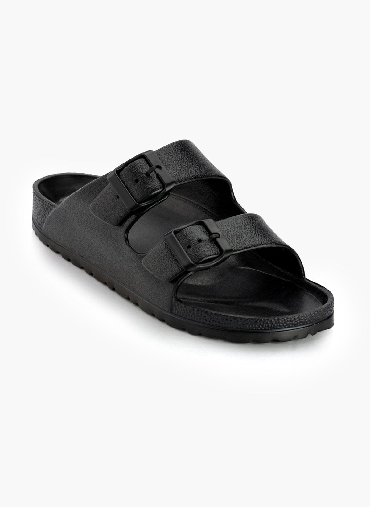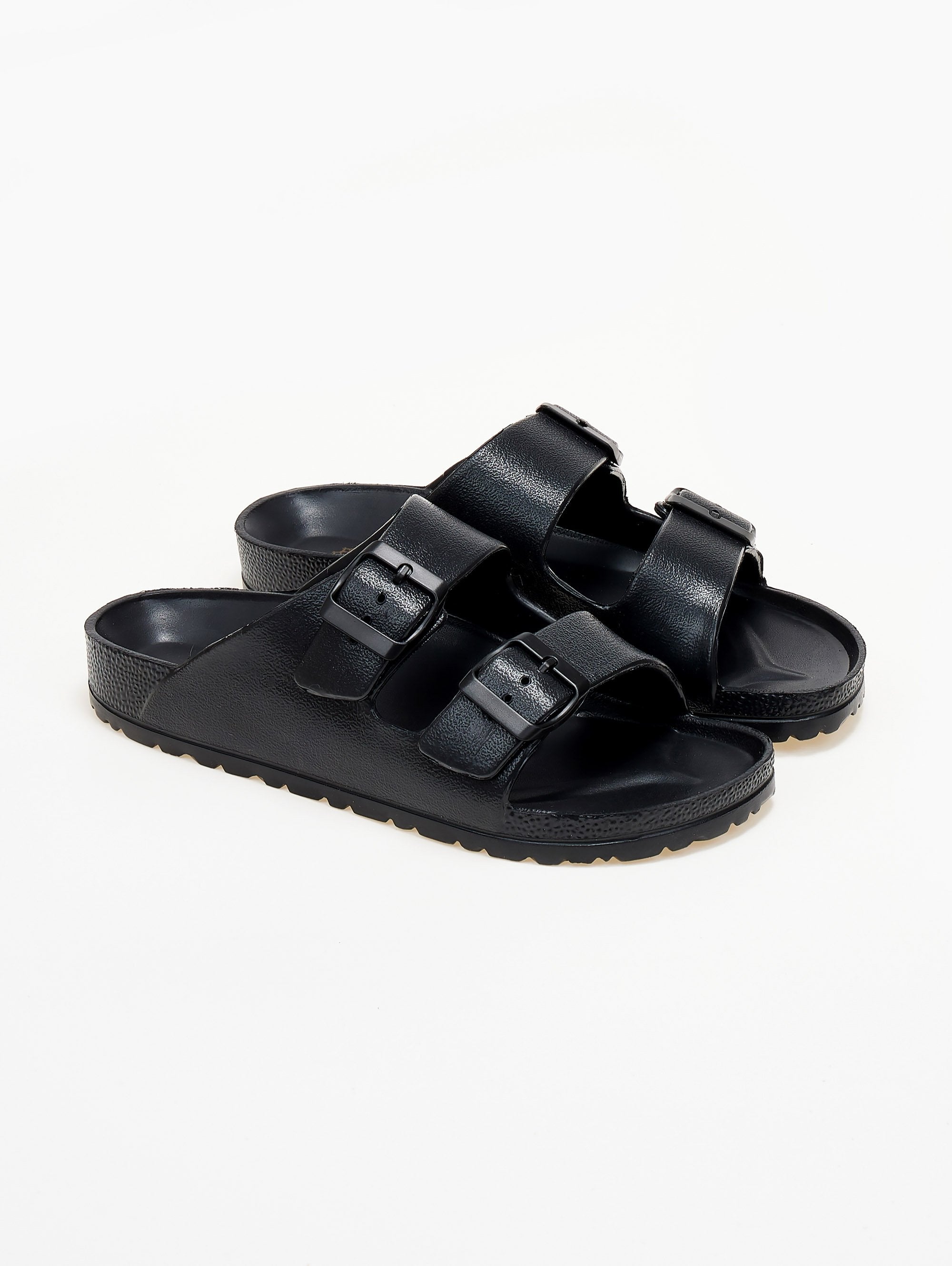 The ATENEO Anatomical Footbed Slides in Black combine comfort and style with a thoughtfully engineered design. These versatile slides feature a dual-strap construction with secure buckle fastening, paired with a contoured anatomical footbed that supports natural foot alignment. Perfect for everyday wear, these slides deliver professional comfort without compromising on aesthetics.