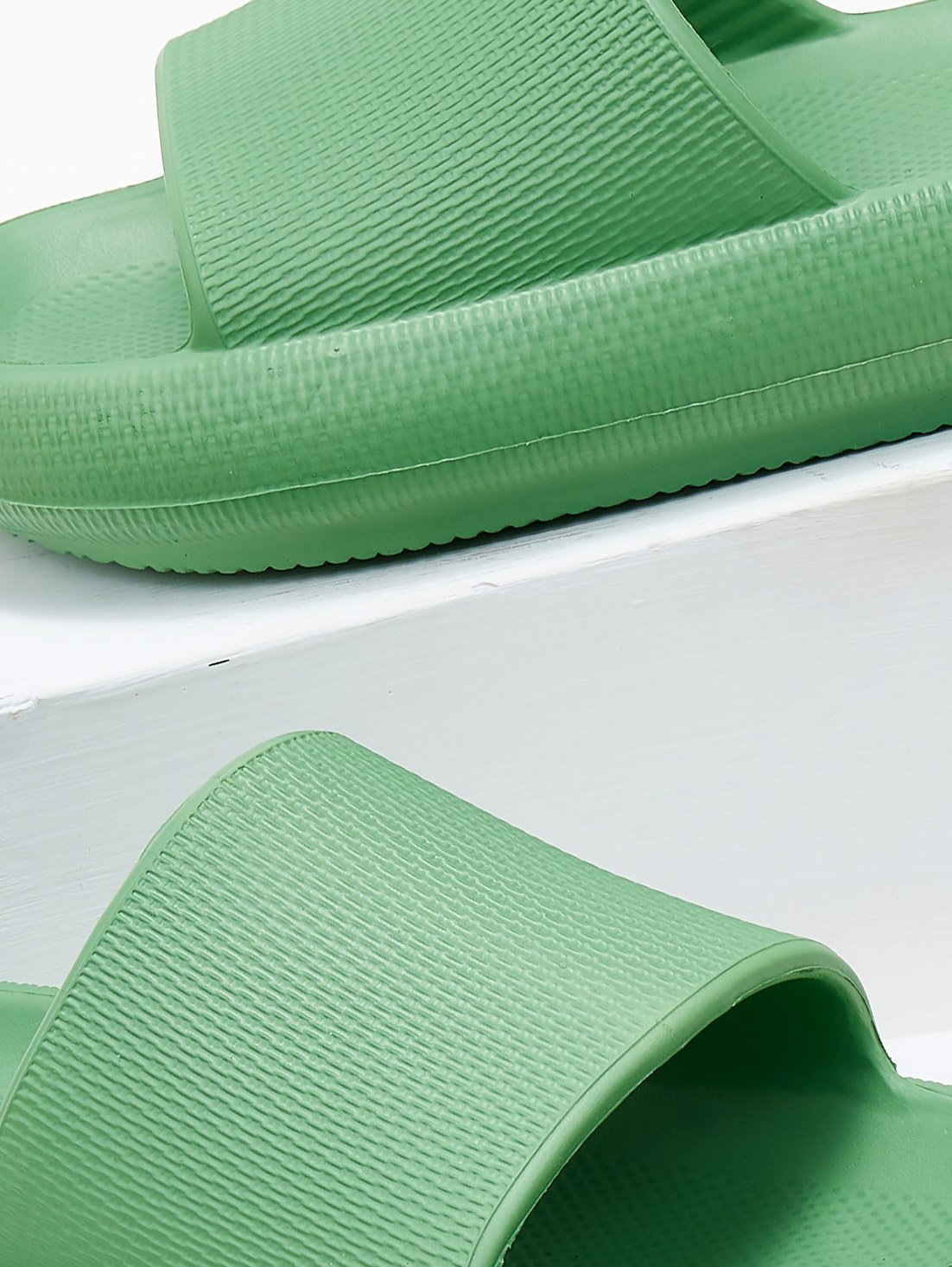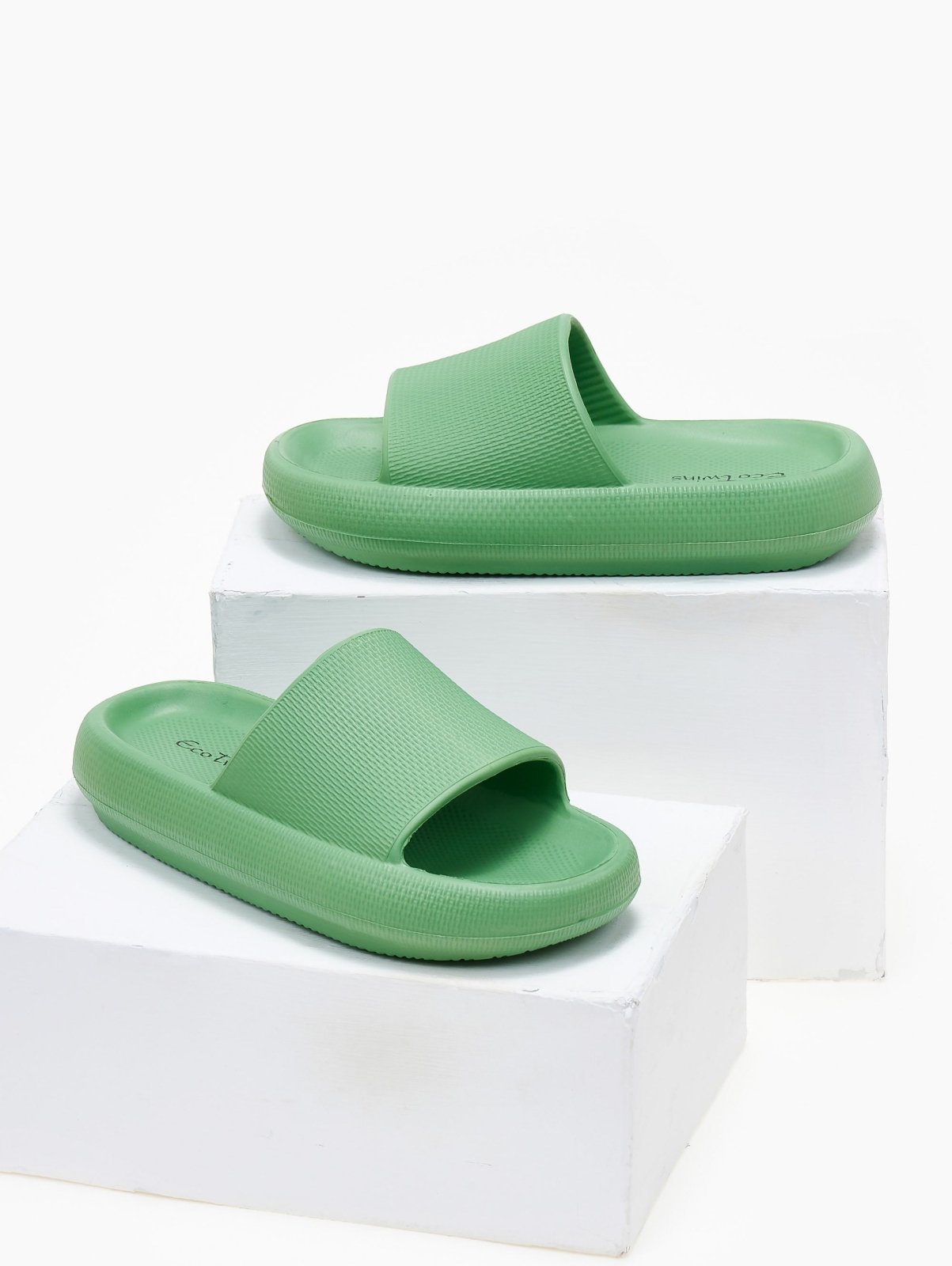 Slides με φαρδιά φάσα. Έχουν ελαφριά σόλα με ανατομικό σχήμα στον πάτο.