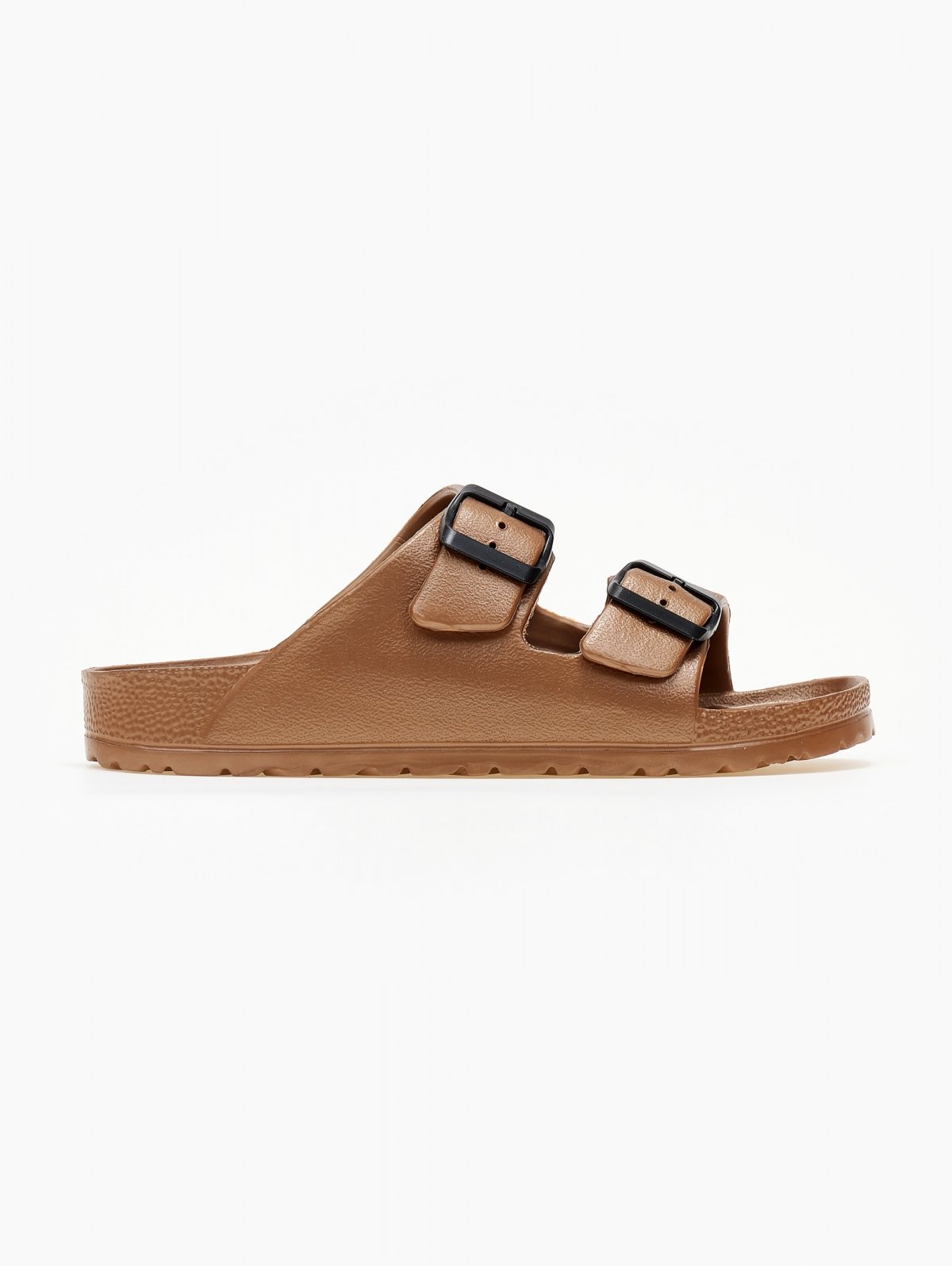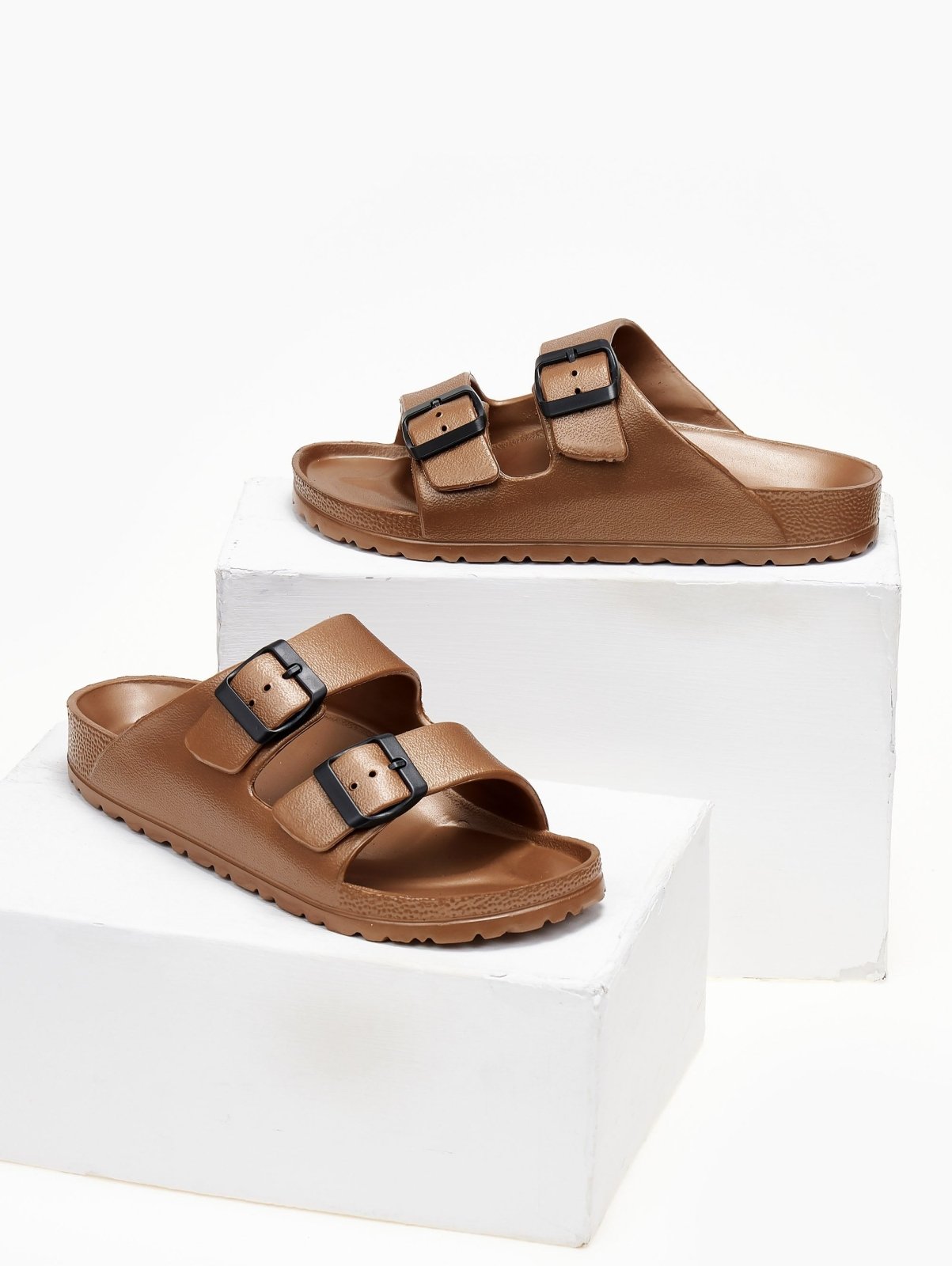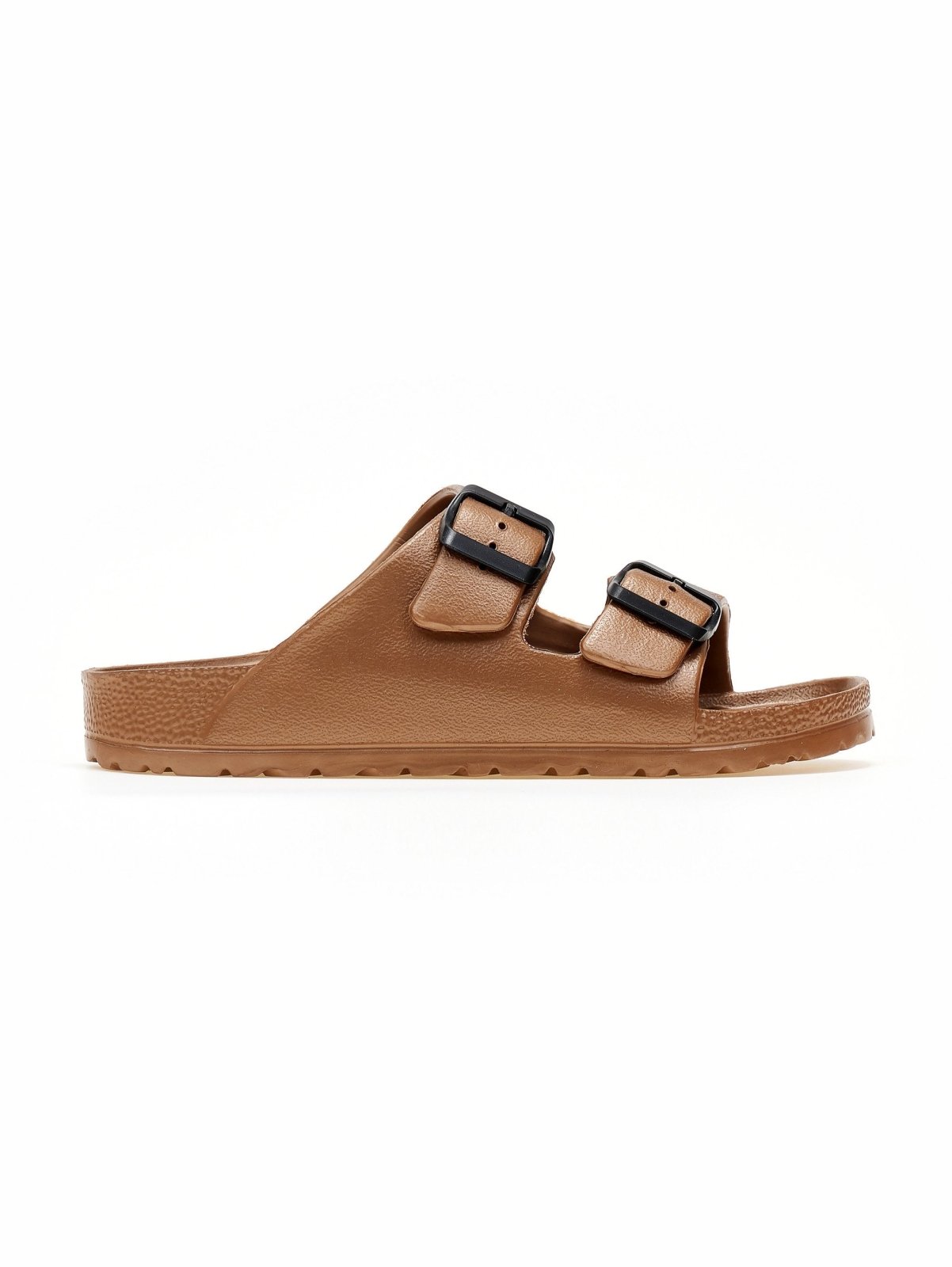 The ATENEO Anatomical Footbed Slides in Antique Copper combine style with comfort through thoughtful design. These slides feature a dual-strap construction with secure buckle closure, paired with a contoured anatomical footbed that supports natural foot alignment. The warm antique copper finish adds a sophisticated touch to any casual wardrobe, making these slides versatile for everyday wear.