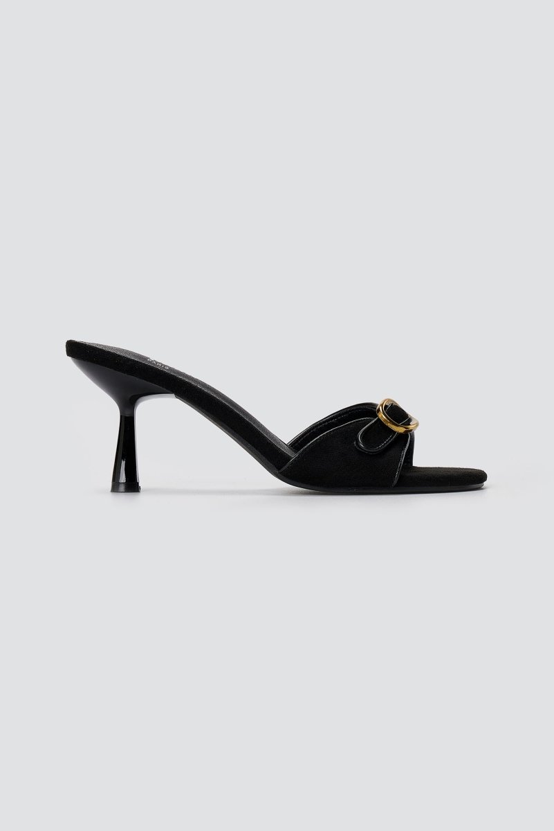 Slim Heel Mules Buckle Strap - Black Suede