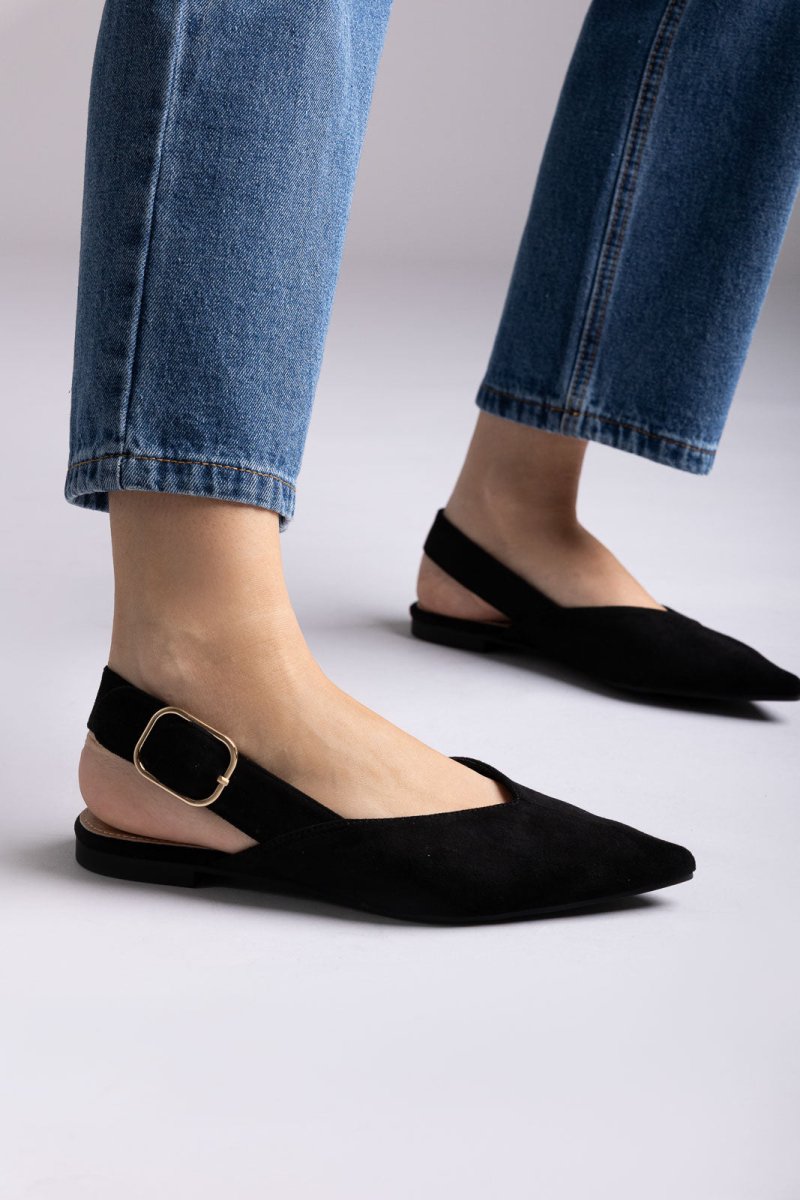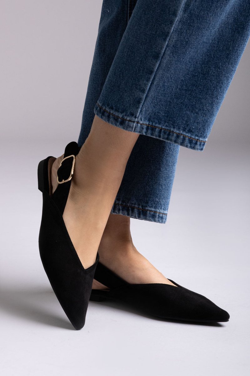 Slingback Ballet Flats - Black Suede