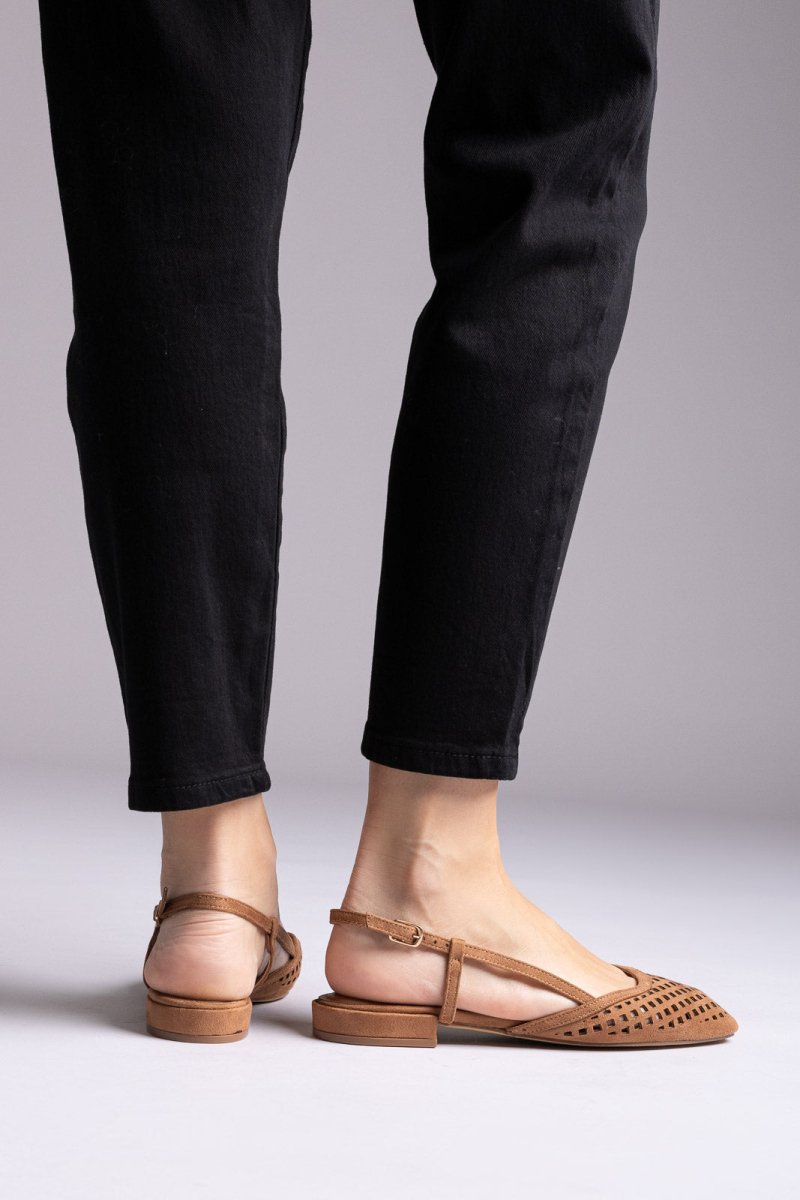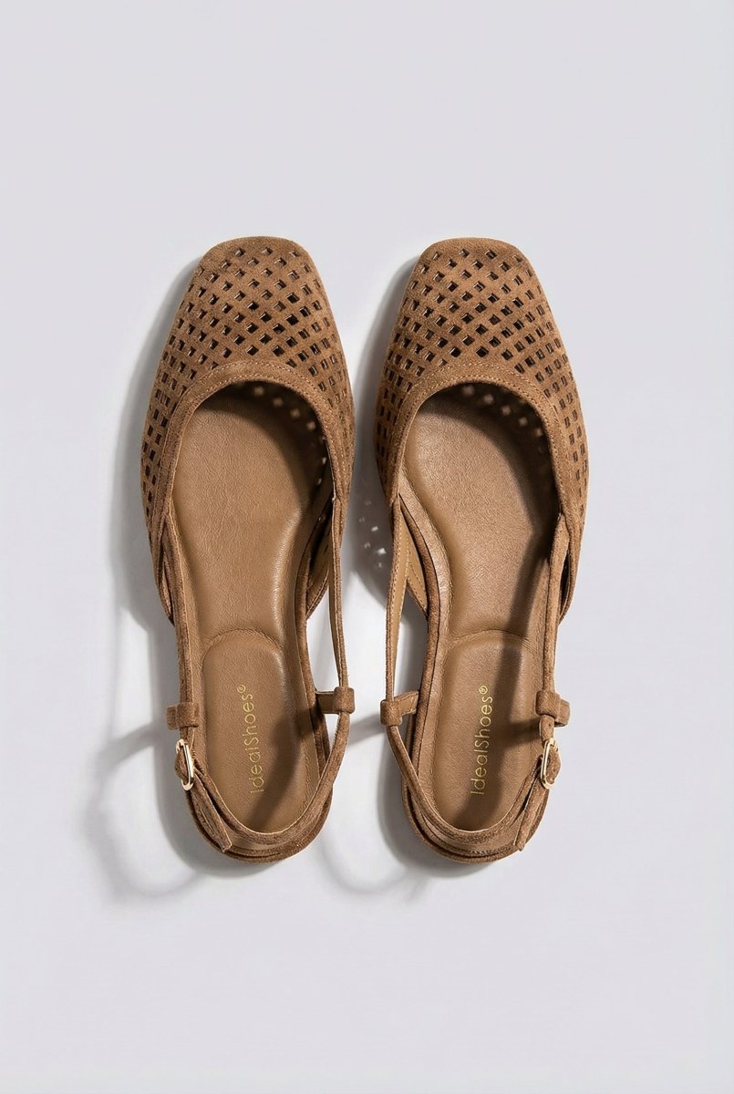 Suede slingback ballet flats with a perforated design and side buckle fastening. Lightweight comfort and a refined silhouette—crafted for modern women, everyday.