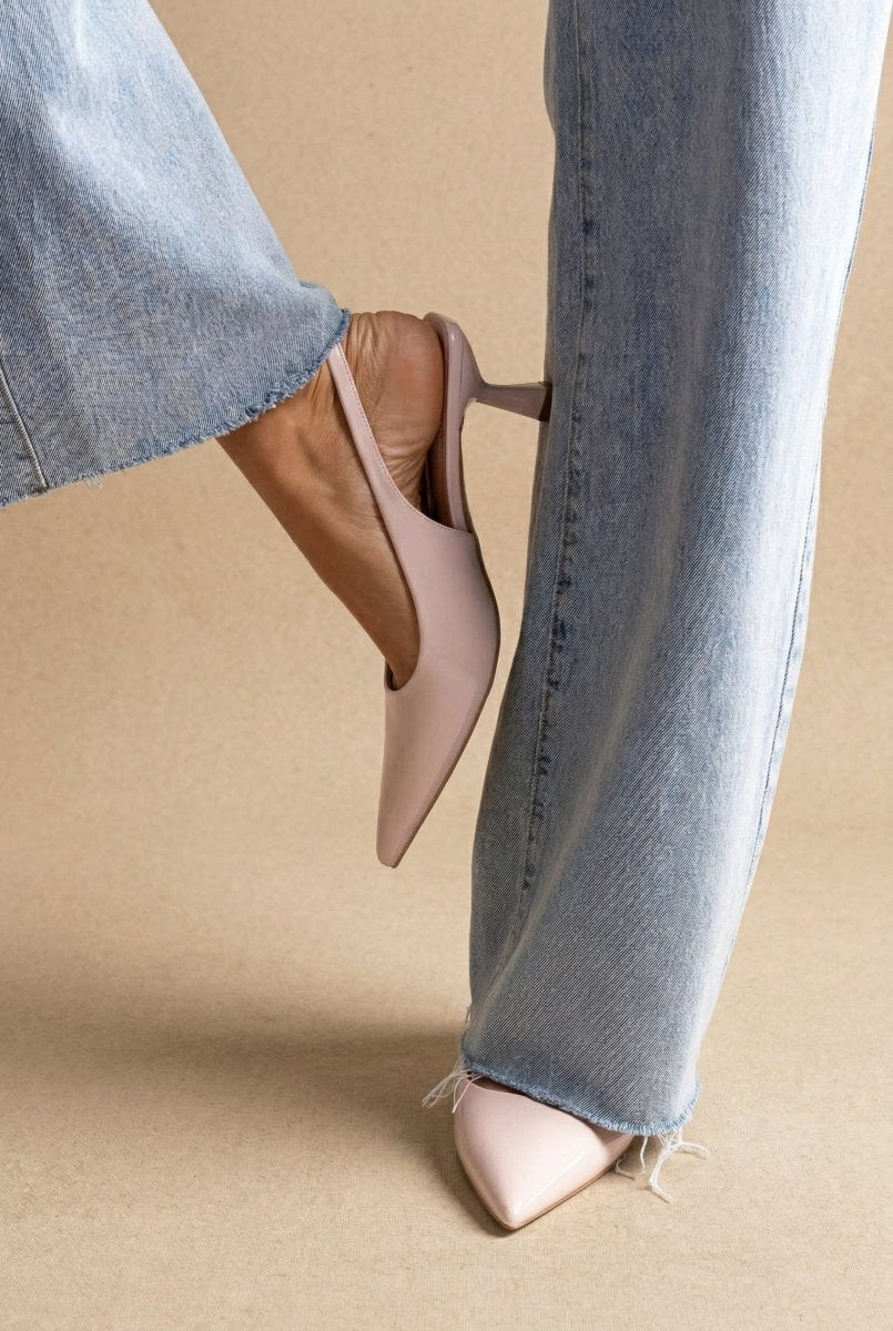 Ideal Shoes presents the Slingback Pumps in Light Pink Patent, a sophisticated choice for the modern woman seeking elegance and confidence. These glossy patent leather pumps feature a sleek silhouette with a slim stiletto heel that delivers refined lift and timeless appeal. The secure slingback design with side buckle fastening ensures comfort throughout the day, making these heels perfect for professional settings, special occasions, or elevated everyday wear.