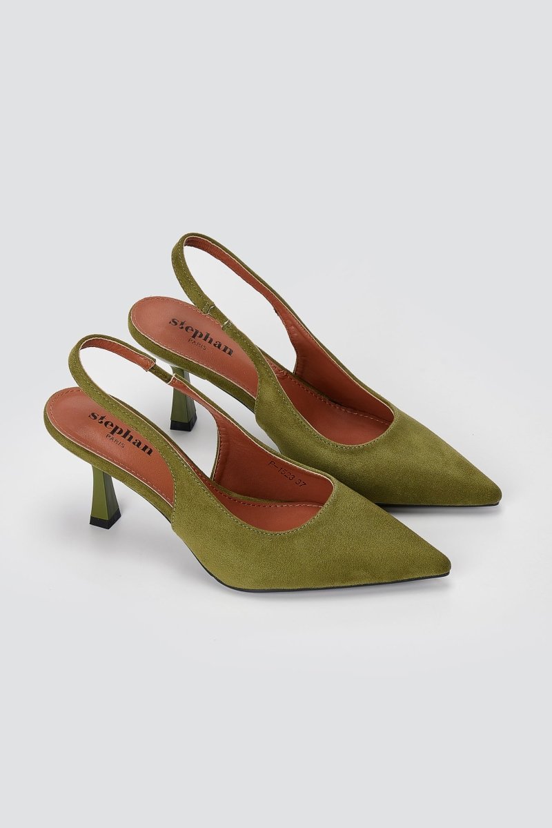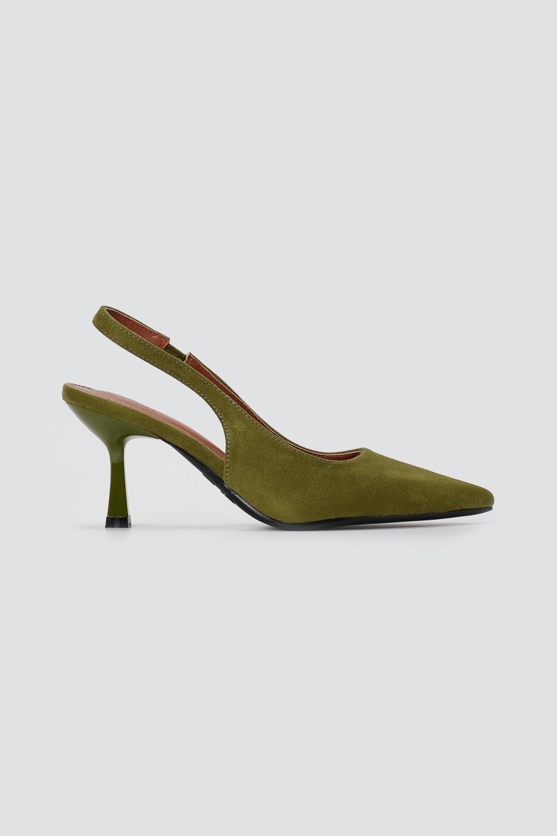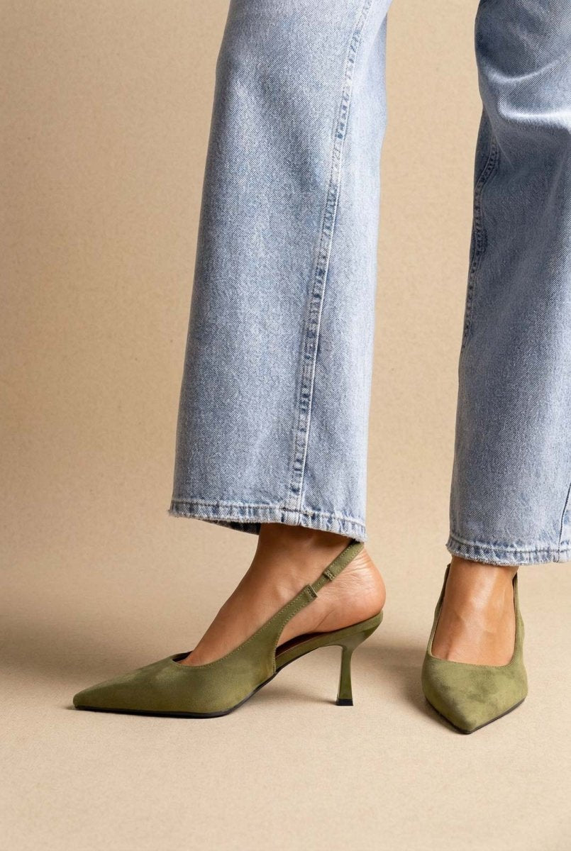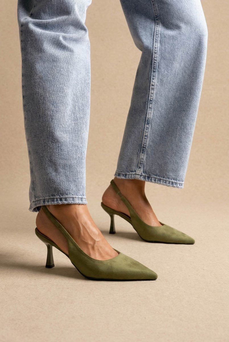 Slingback Pumps Slim Heel - Green Suede