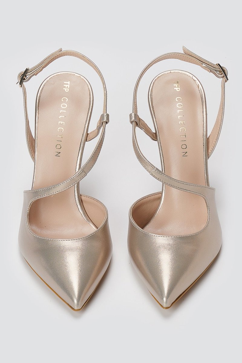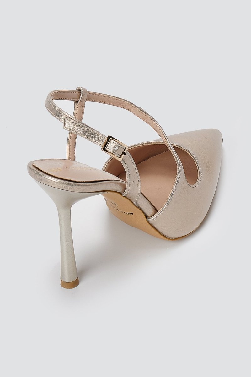 Pointed slingback pumps with a slim high stiletto heel and side buckle strap. Sleek silhouette, secure fit and refined lift. Crafted for modern women.